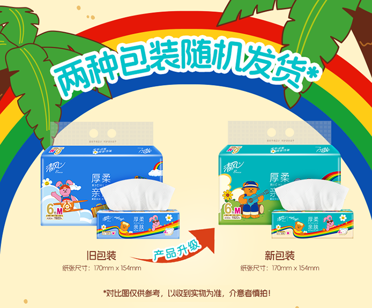 【官方自营】清风wiggle联名抽纸M码4层80抽6包厚柔亲肤纸巾