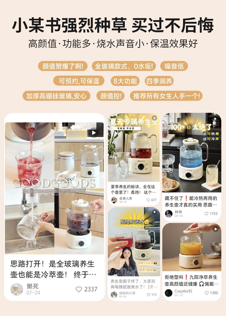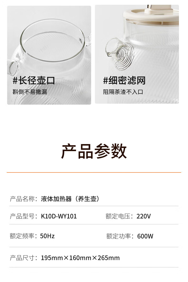 九阳煮茶器静萃&柔音煮茶壶1.0L升家用养生壶全自动泡茶壶蒸汽蒸茶器