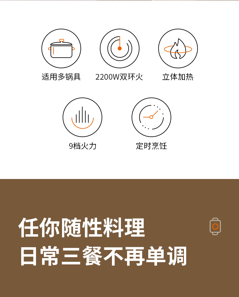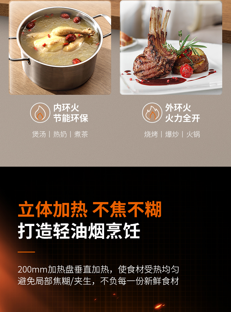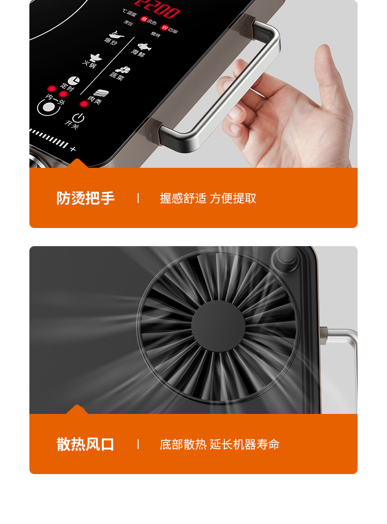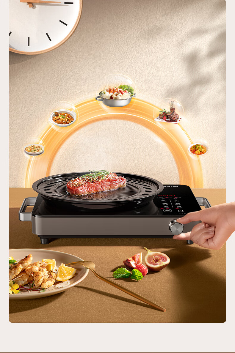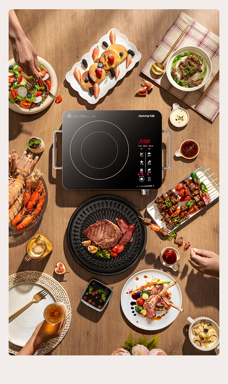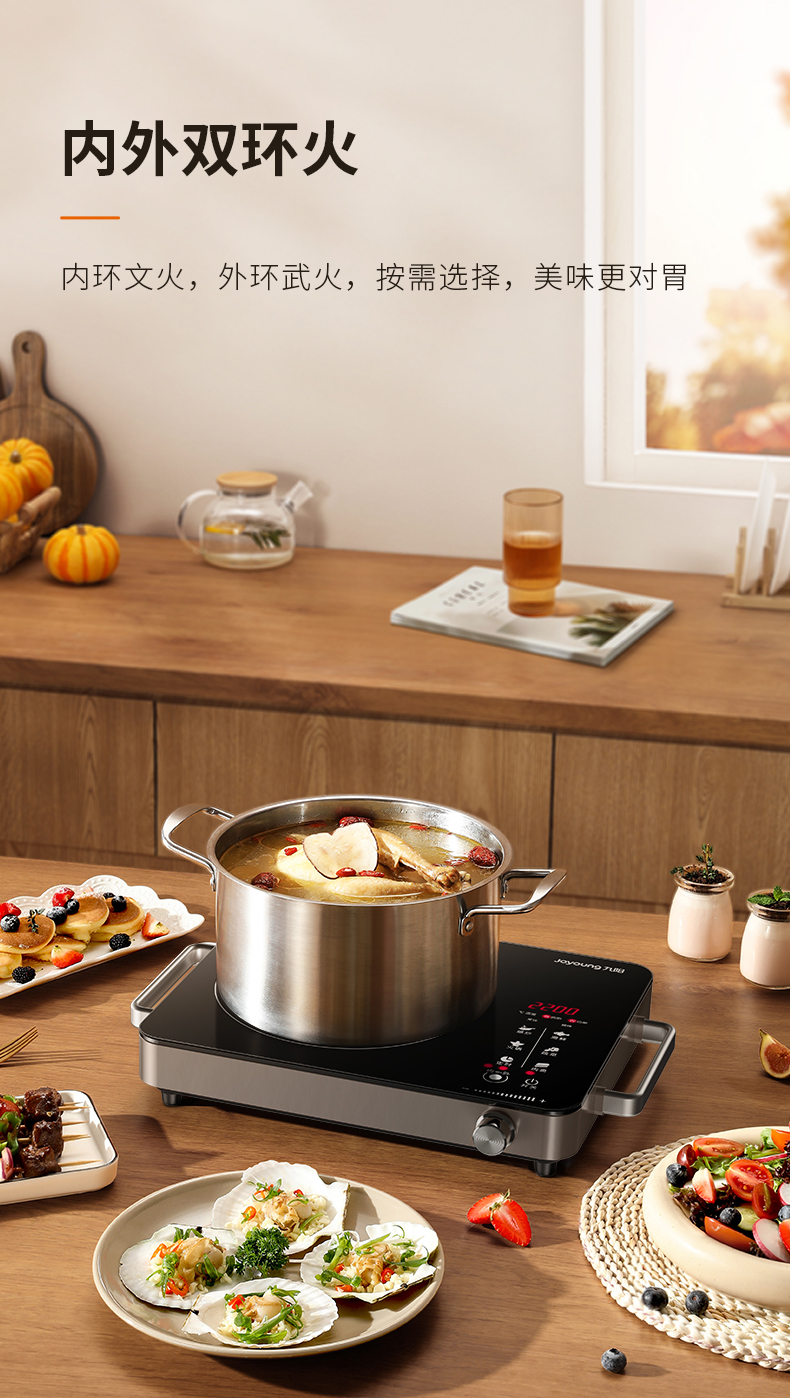 九阳电陶炉不挑锅2200W大火力家用小型光波炉台式内外双环电热炉H