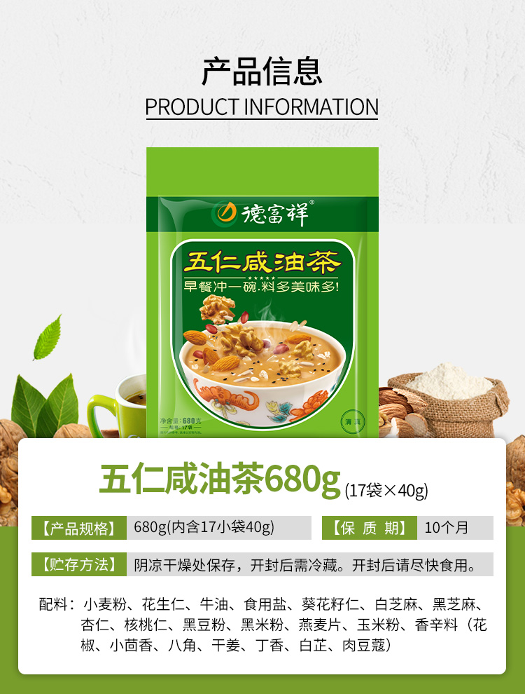 德富祥陕西老字号油茶面西安早餐五仁咸680g*1袋