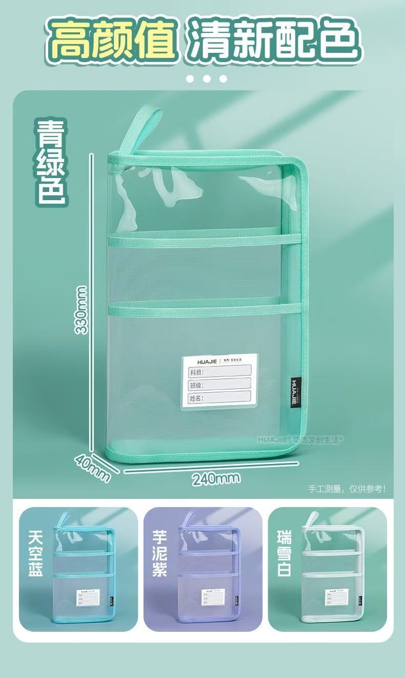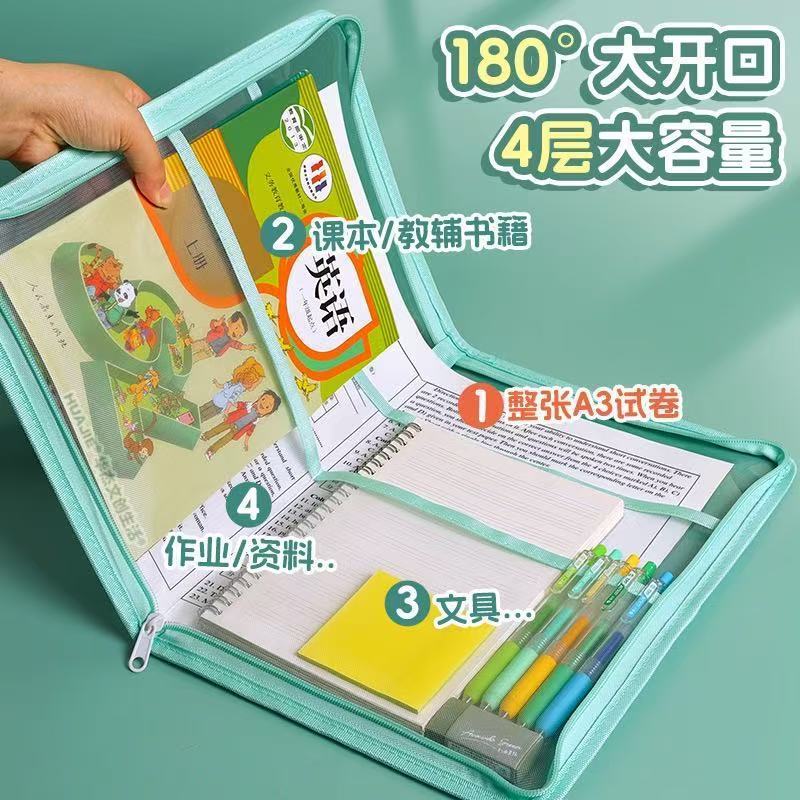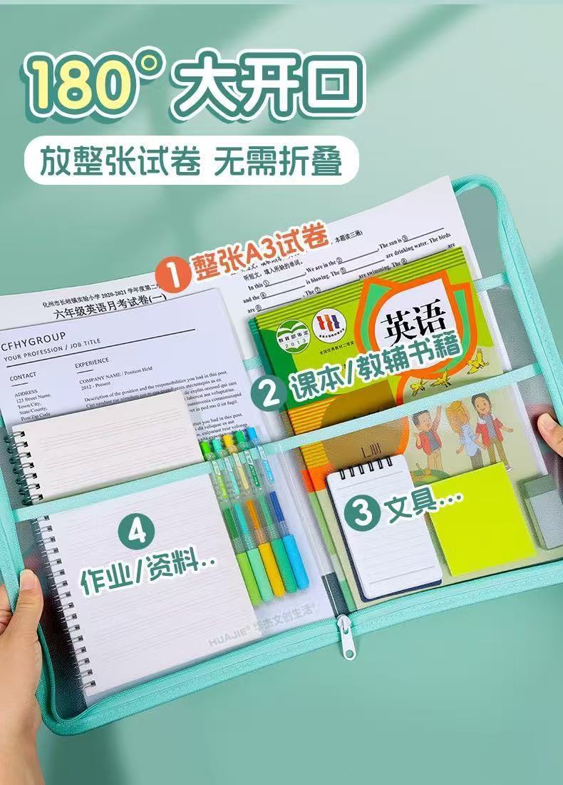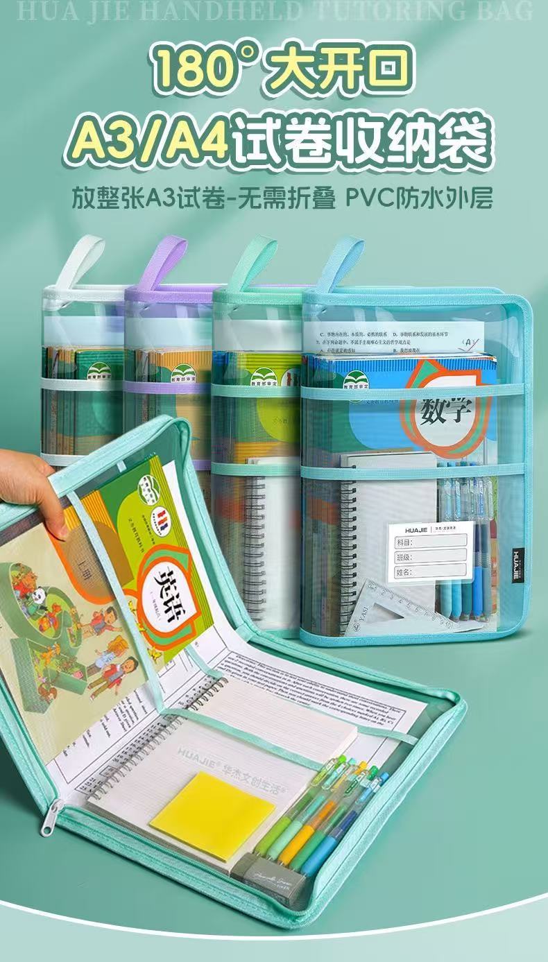 看看看,家人们,拿在手上,就是不一样,就像爸爸的公文包一样! 小手手一提,哪怕不是放在书包,去上个补习班,都可! 比起传统的学科袋,尤其是放书包,拿取更方便! 课本/作业/试卷都可以放去文件袋里 一个颜色对应一科