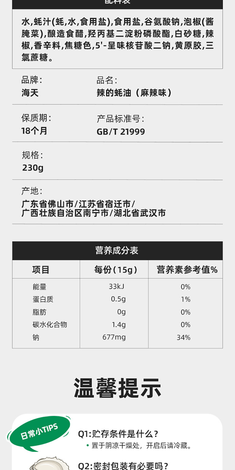 【2瓶】海天辣的蚝油麻辣口味230g*2 三椒搭配 鲜香十足