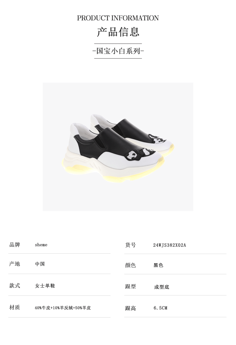 sheme国宝小白系列萌萌刺绣水晶熊猫点缀休闲时尚男女同款新中式老爹鞋可定制