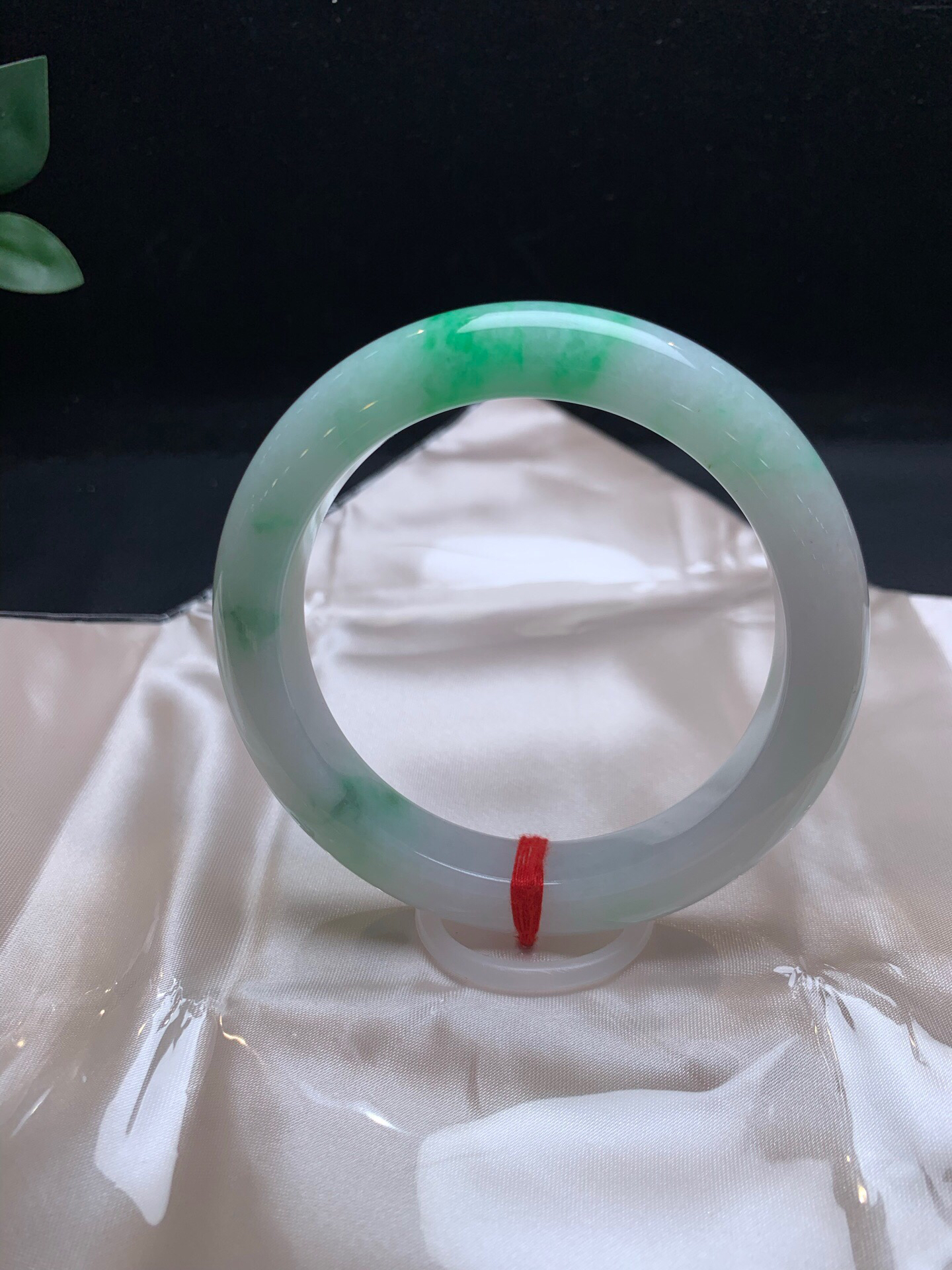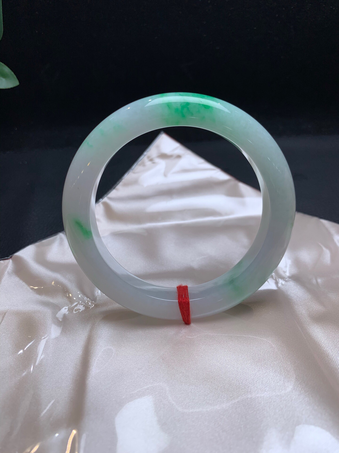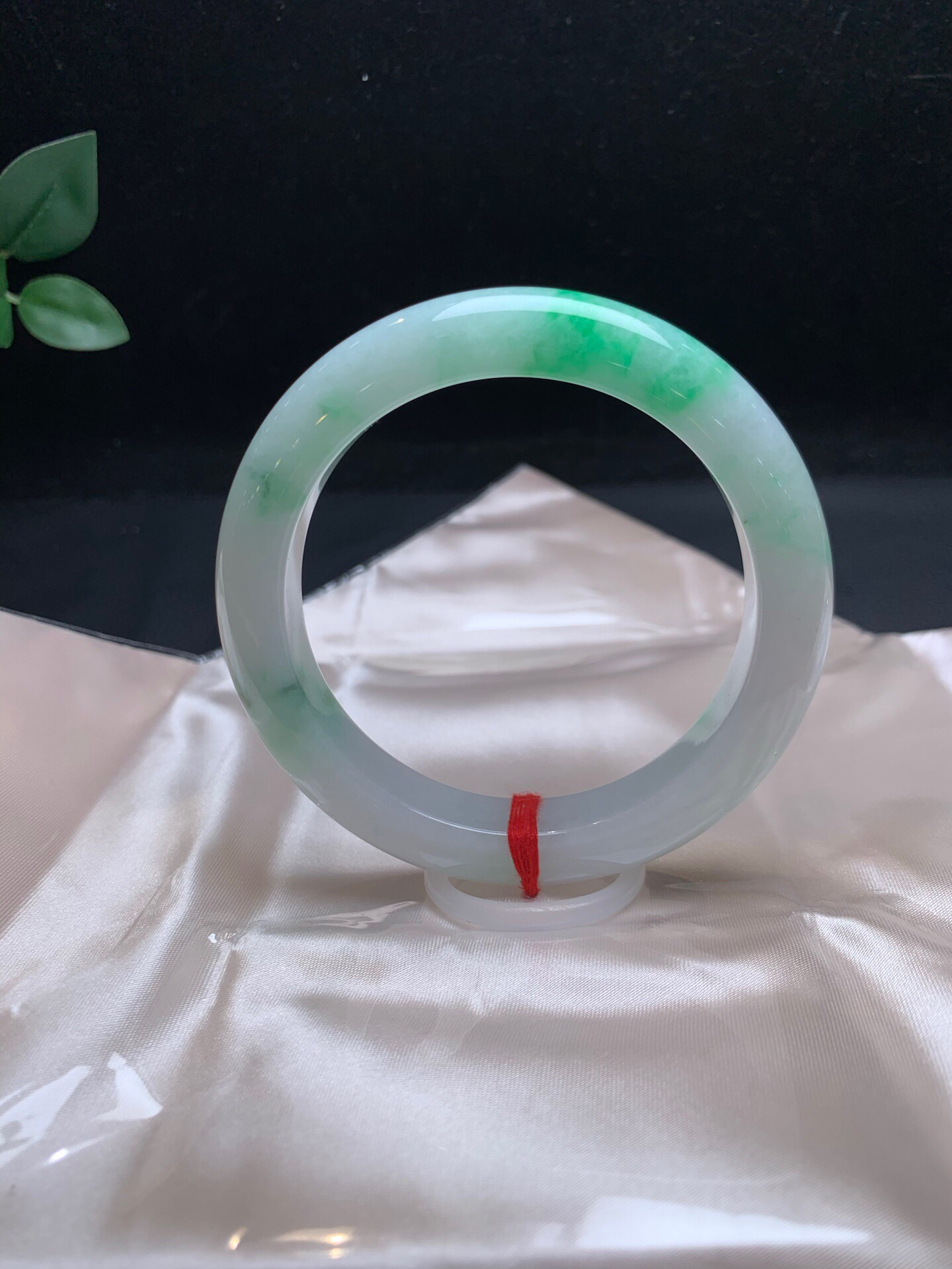 620571,60.8飘绿大圈口手镯,11.6-10.2mm,干净有种水,飘清新绿花,完美 ,超值价💰50000 #优石客珠宝#香玉荟萃