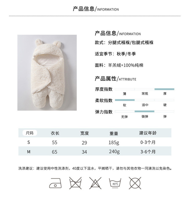 【母婴】婴儿睡袋新生儿分腿式襁褓睡袋保暖加绒抱被婴儿分腿睡袋抱被