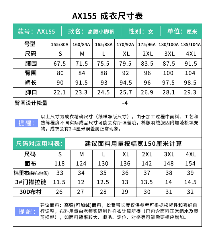 裁缝学苑AX155魔术裤弹力打底裤外穿高腰小脚百搭小黑裤纸样女装版型