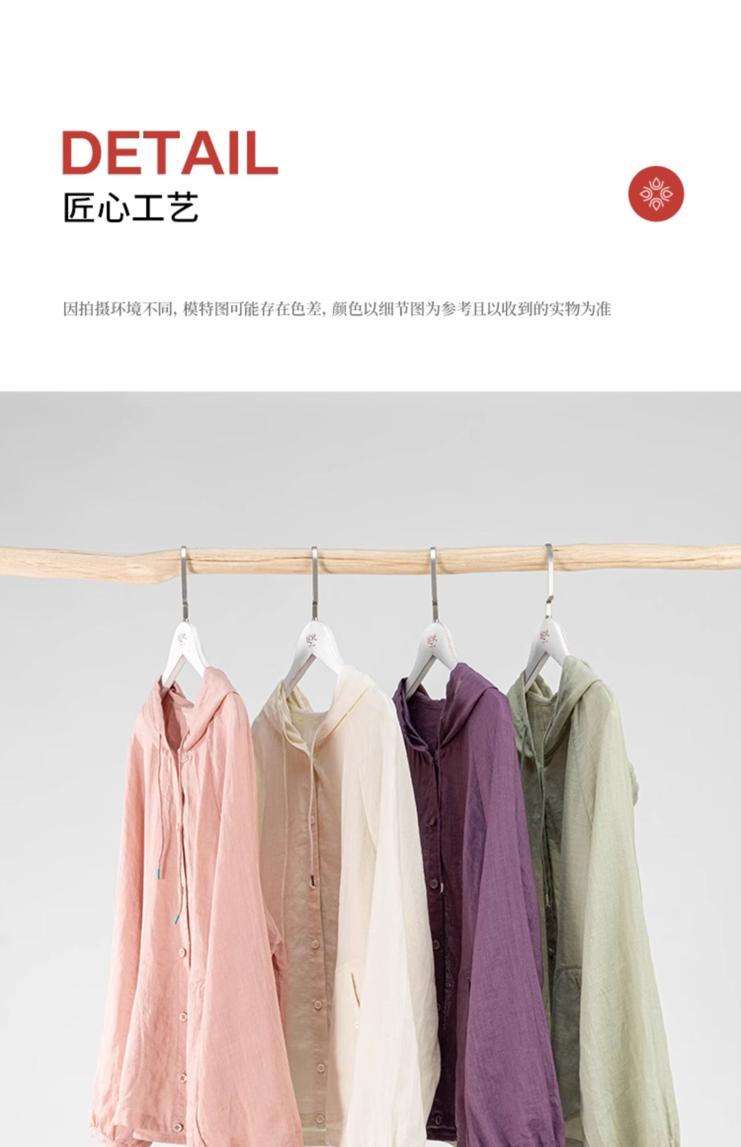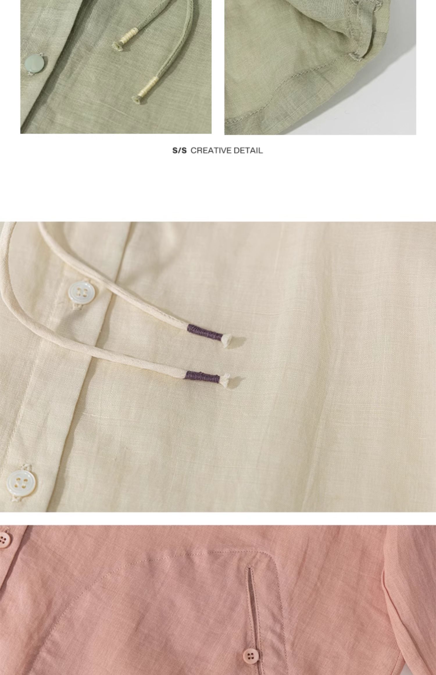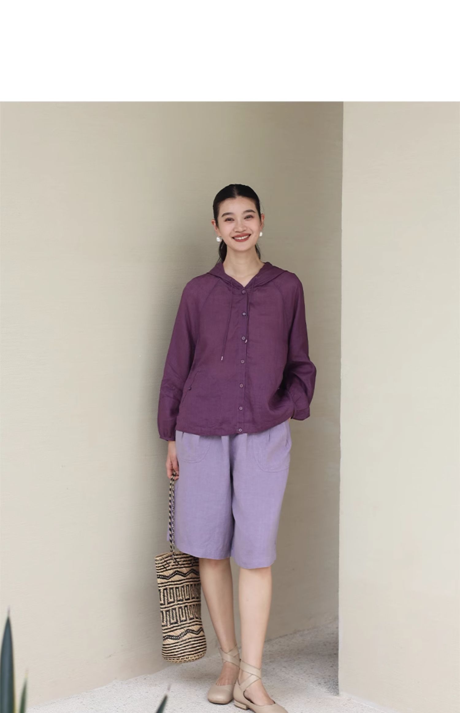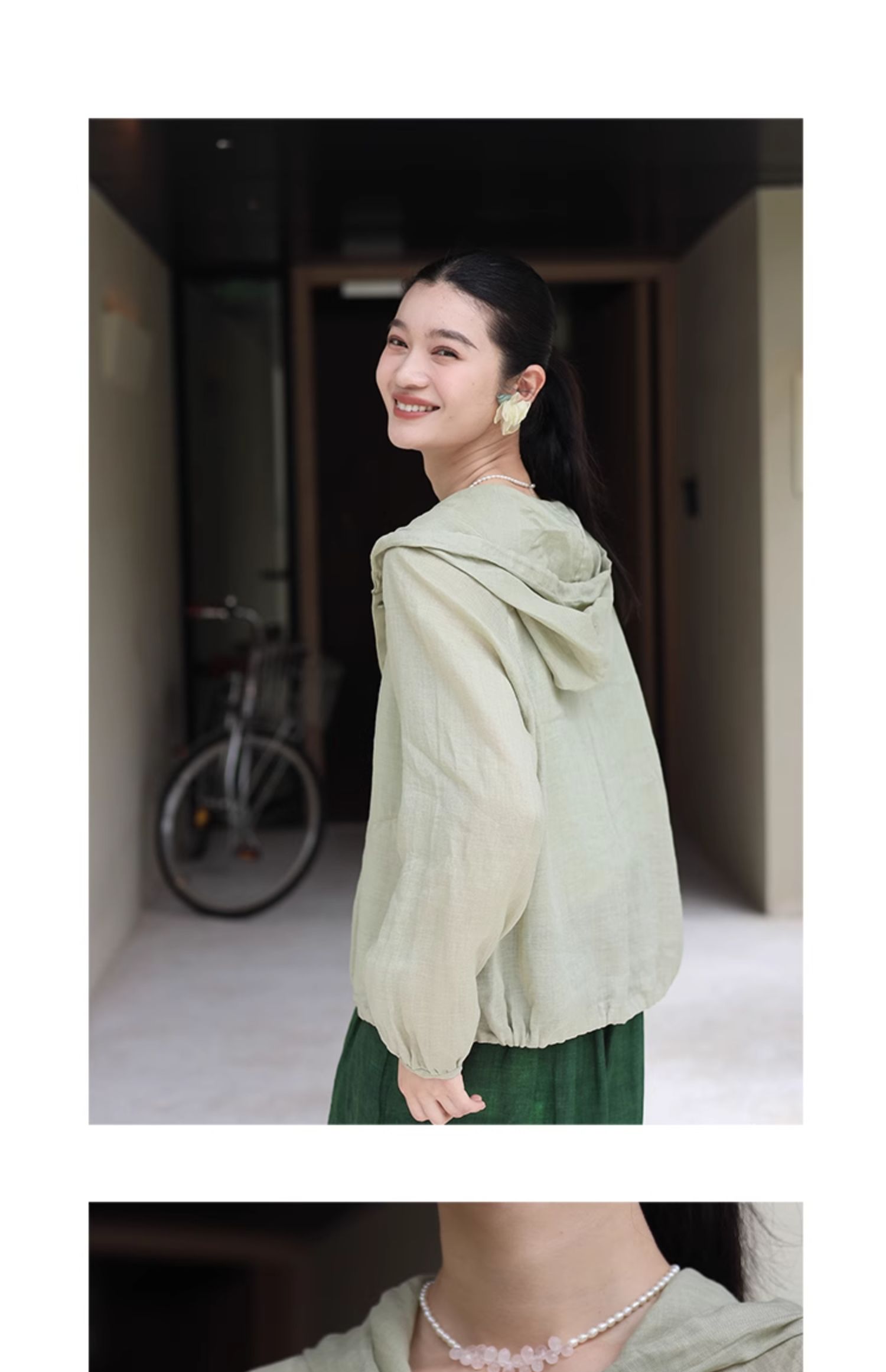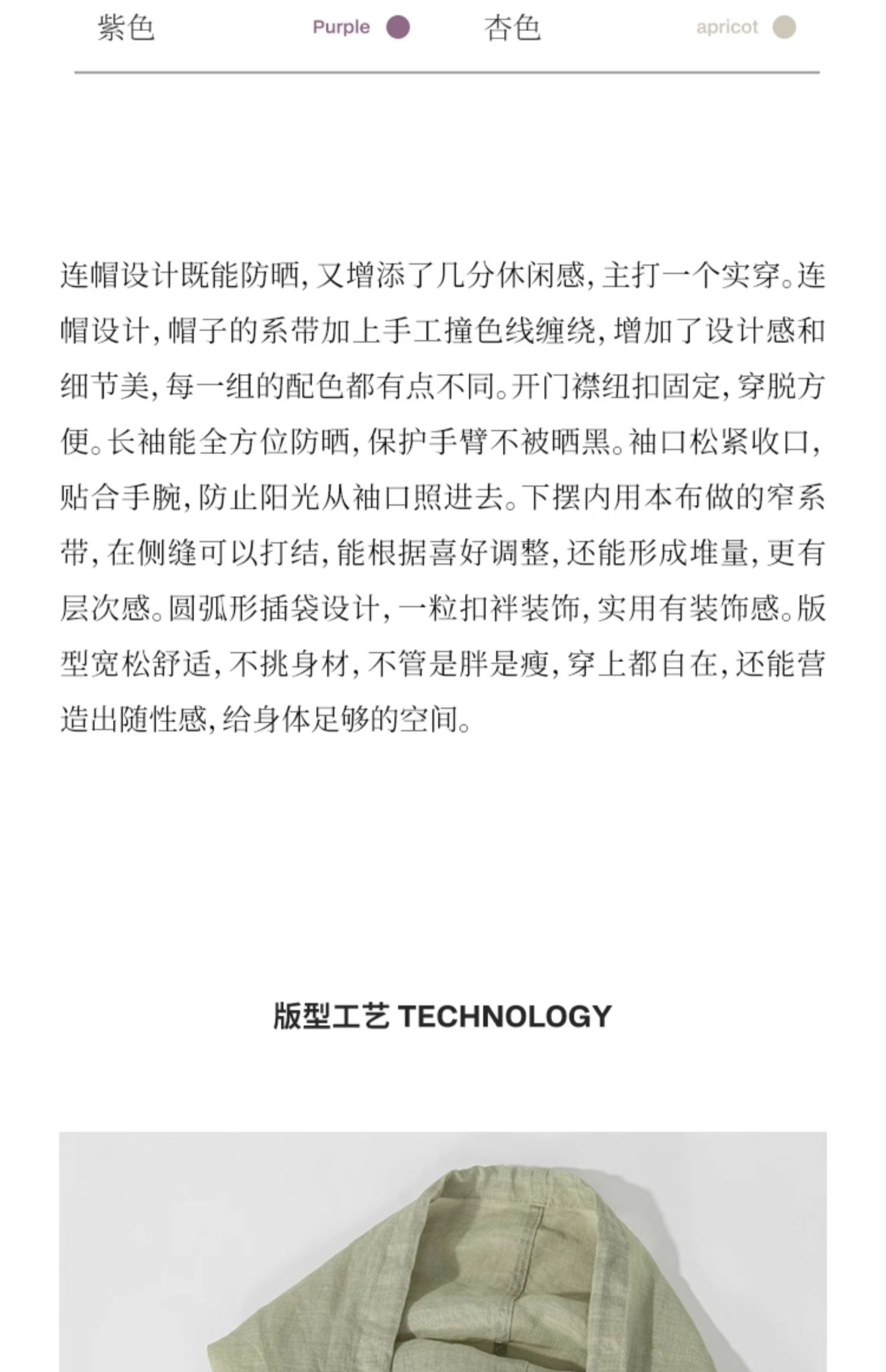 绽放164朵/竹林四侠防晒衫砂洗苎麻连帽开门襟下摆抽绳休闲上衣