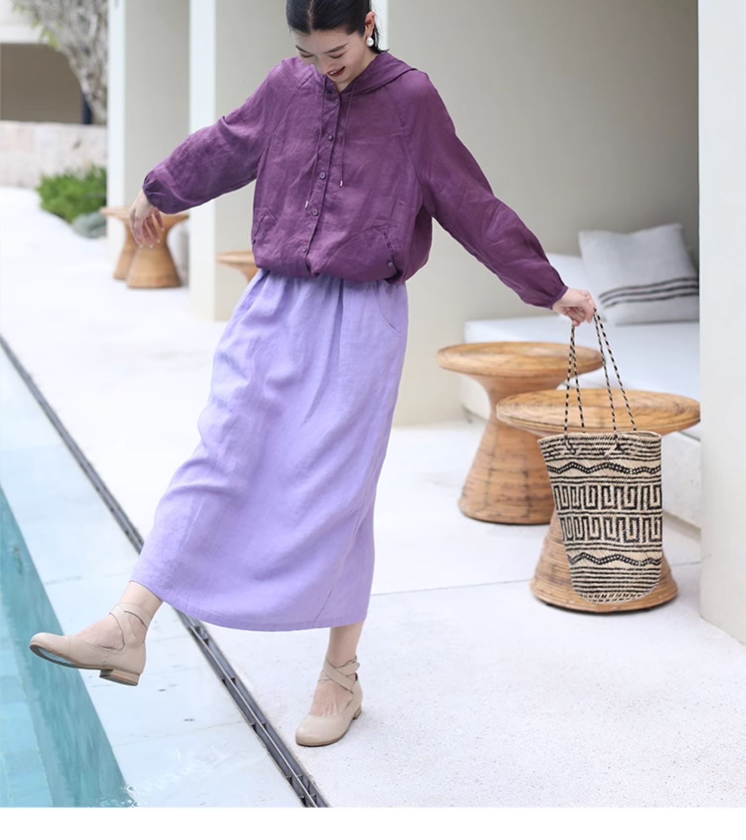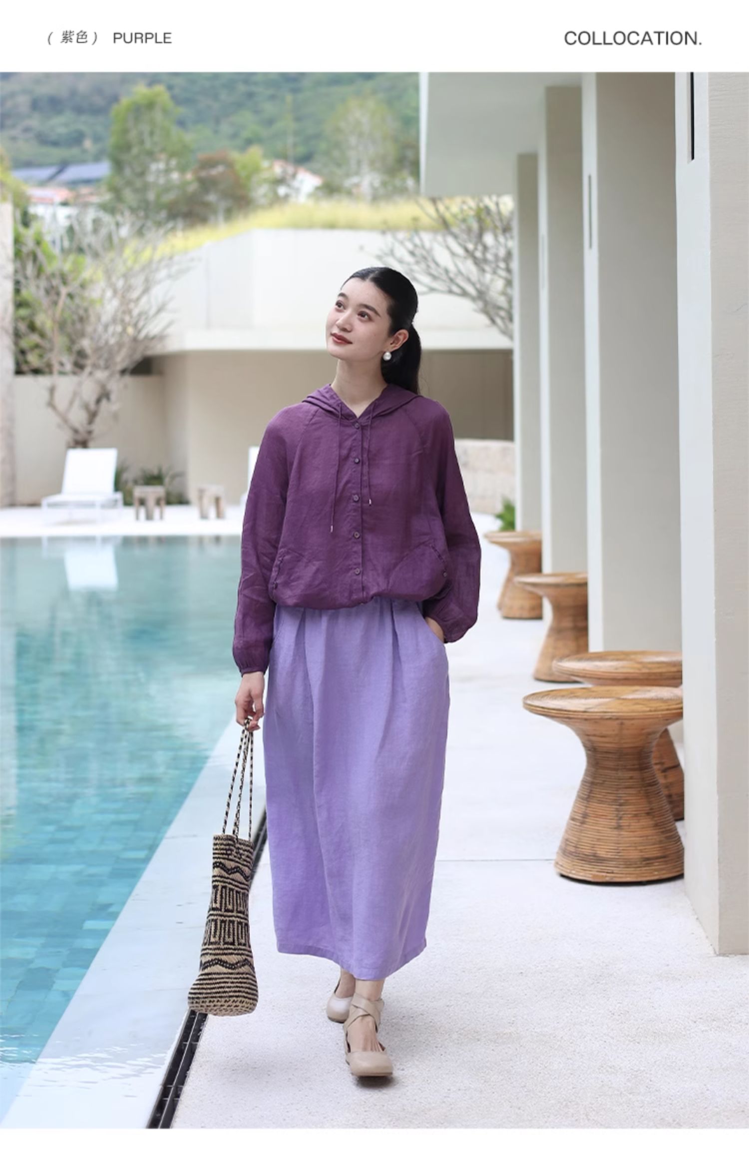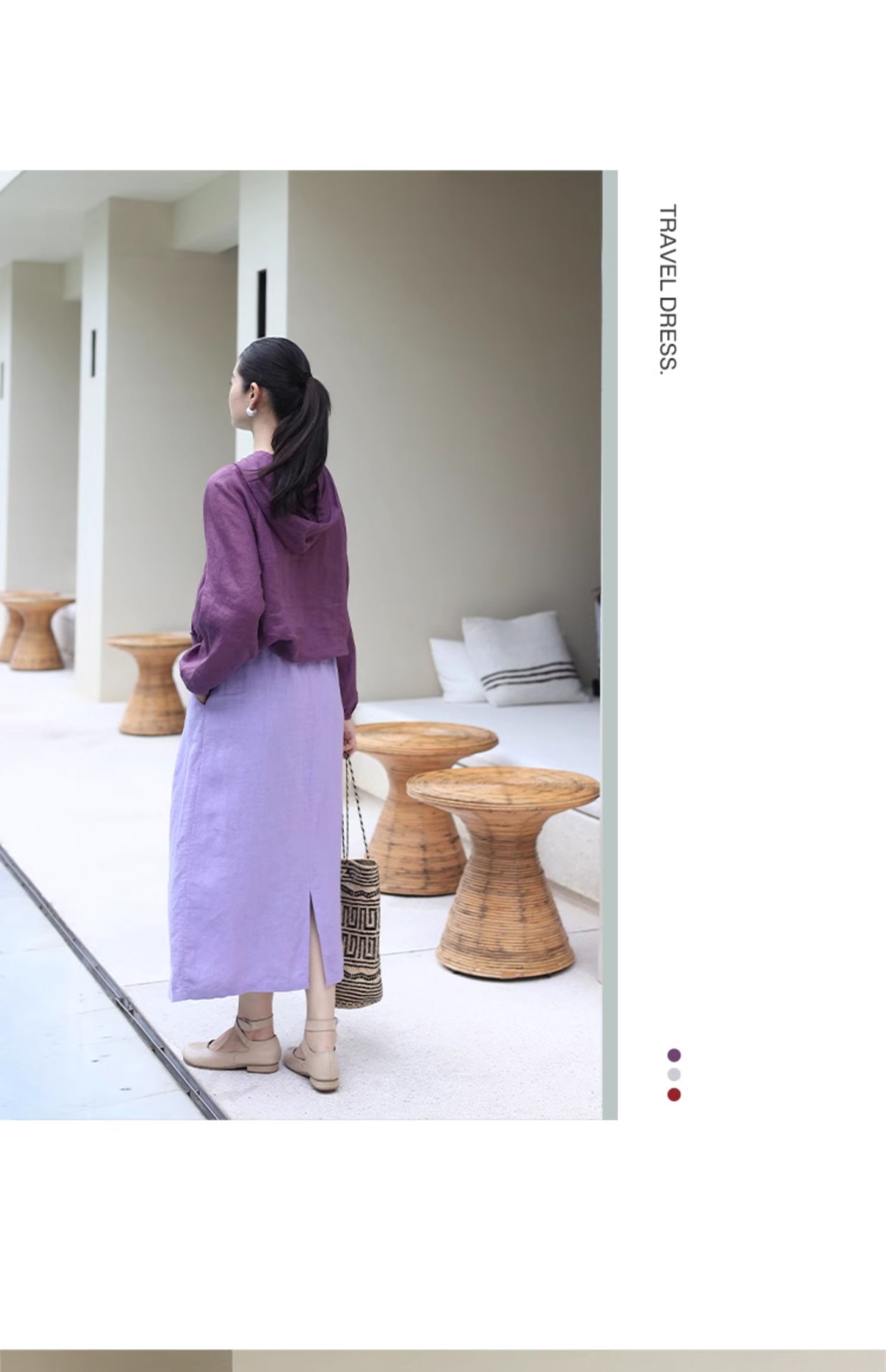 以天然亚麻为载体,融合热烈色彩与自在剪裁为身在城市、心怀远方的女性提供兼具美学与舒适的旅行着装