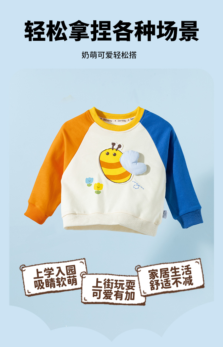 贝贝怡2025春秋新款男童套头休闲上衣卫衣ZB1ES024