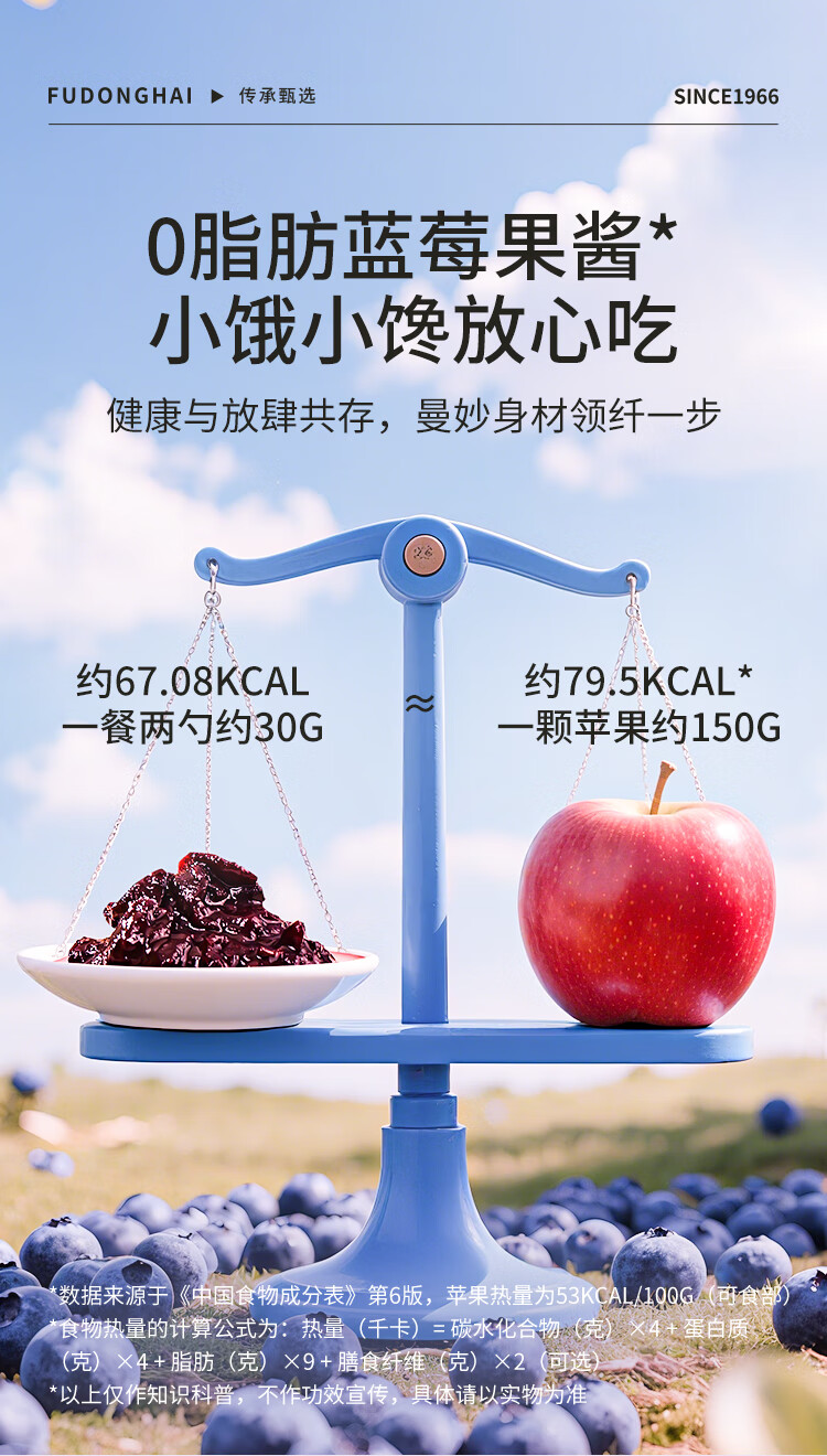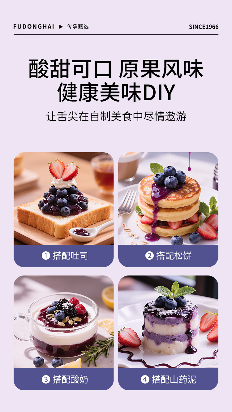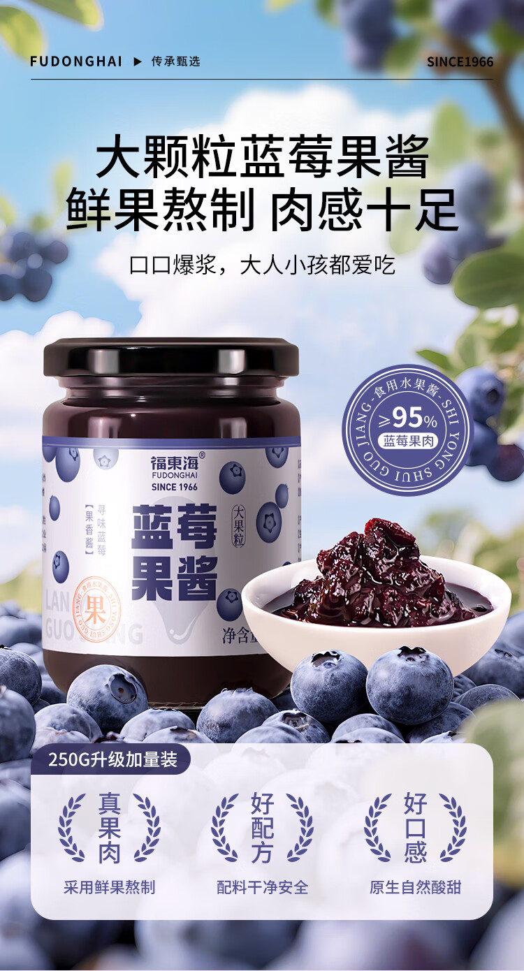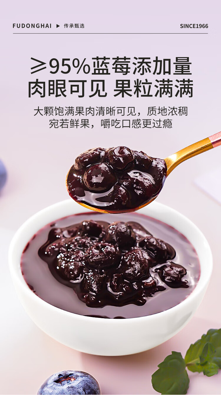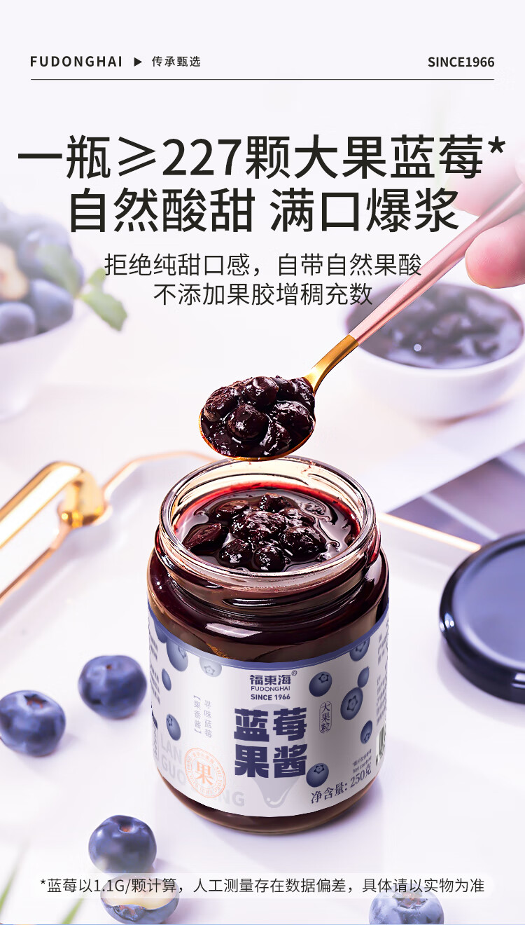 福东海 蓝莓果酱250克 鲜花酱蜜酱果酱 糖浆甜品白凉粉冲饮烘焙原料 喝茶伴侣