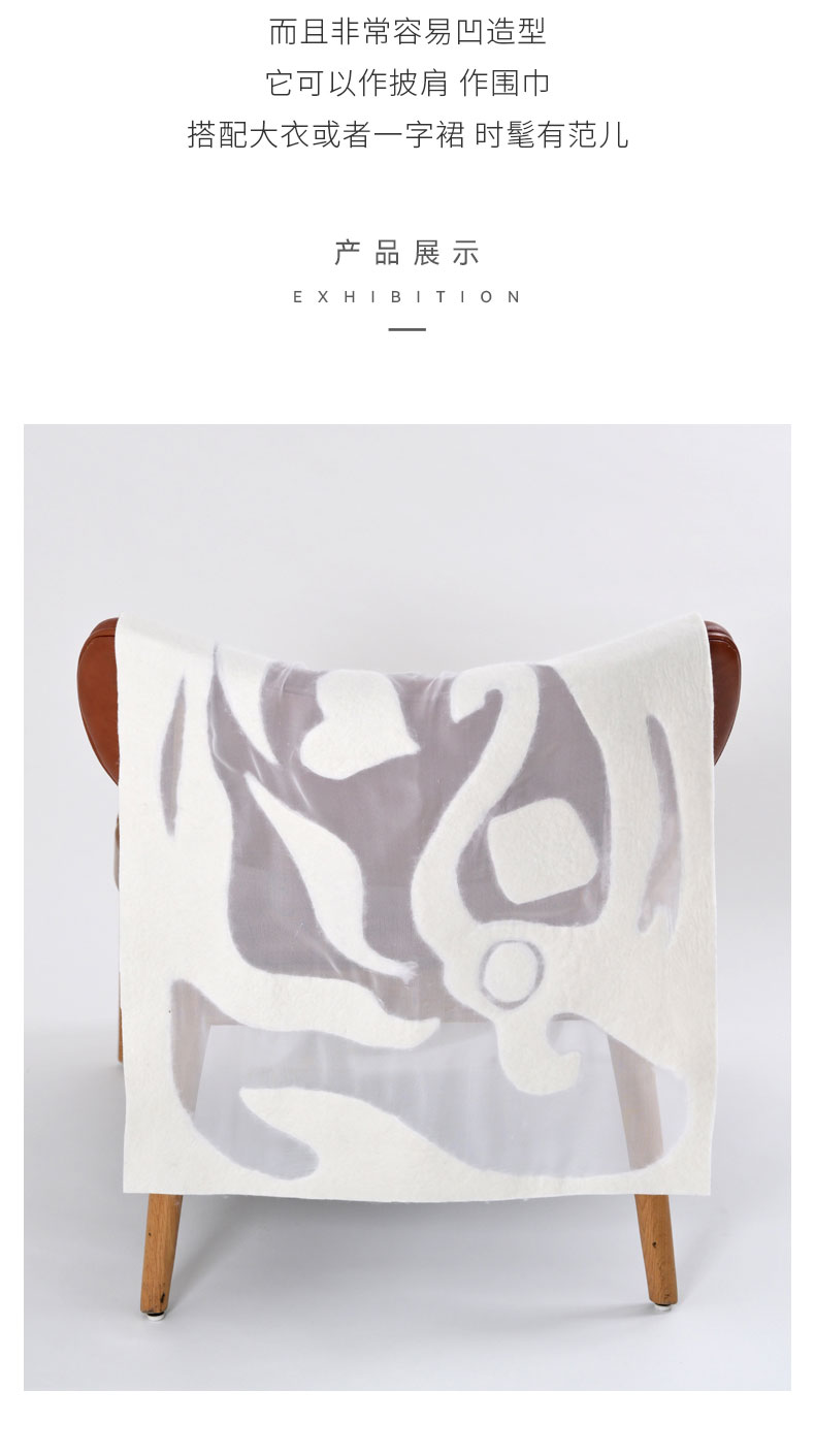 凤凰剪花真丝羊绒相拼手工毡披肩 SJF94P065N