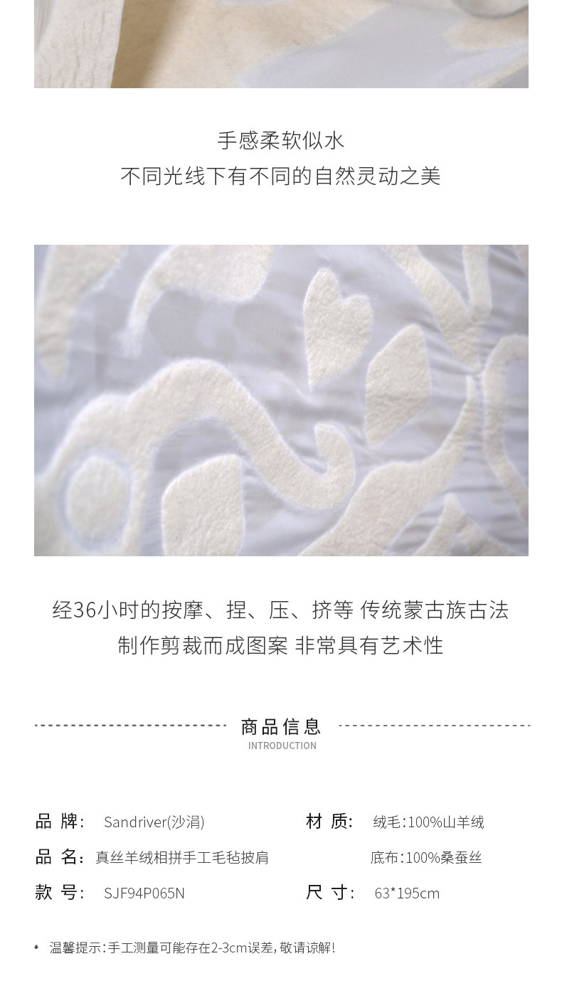 历年在巴黎时装周亮相,享誉世界的艺术羊绒品牌[Sandriver 沙涓]由羊绒布道者郭秀玲女士创立。阿拉善自有牧场纯种羔羊绒,日本国宝设计师小筱顺子,上海自有基地精工细作。承载羊绒情怀,坚持匠人品质。