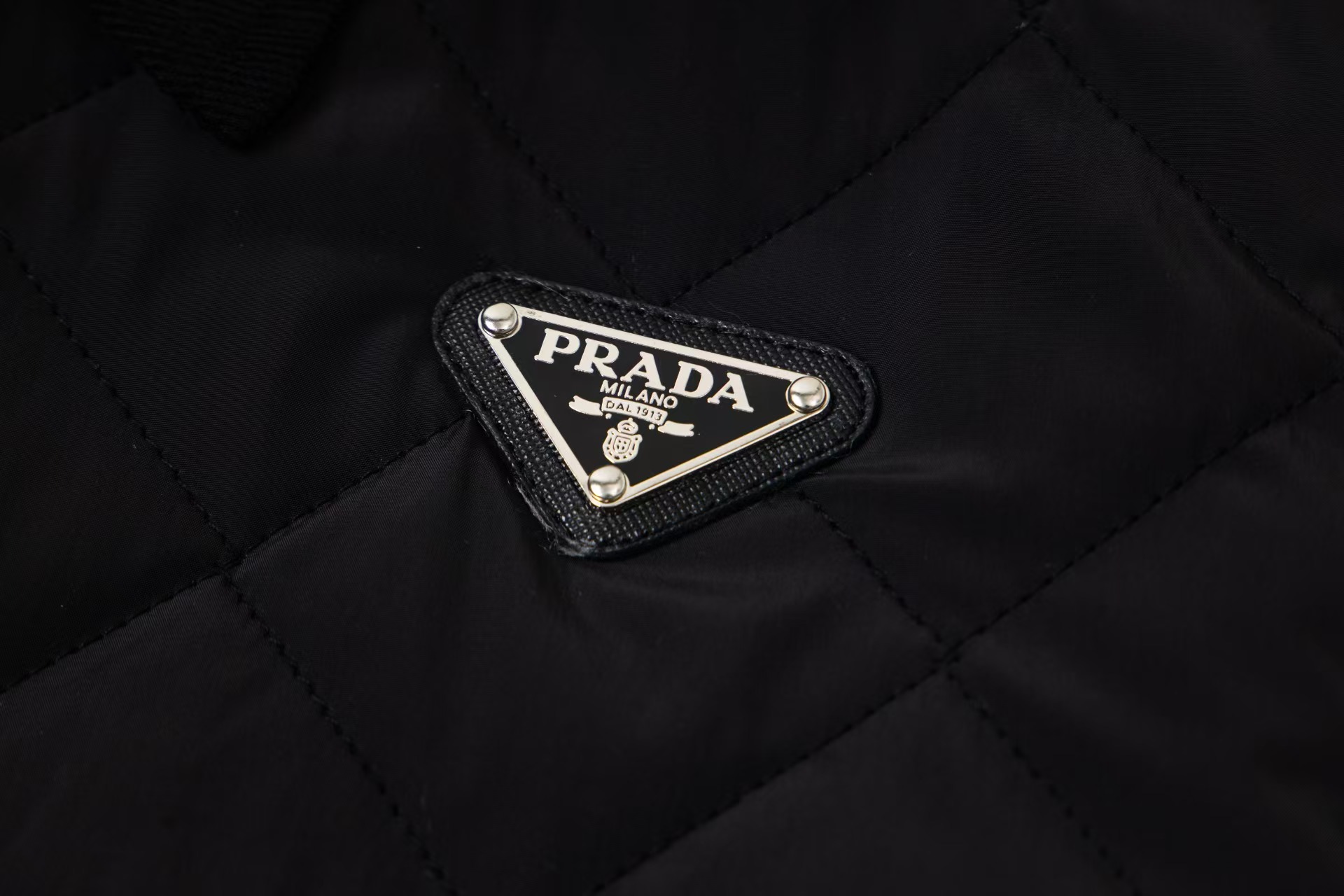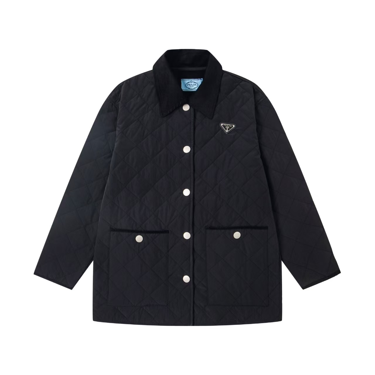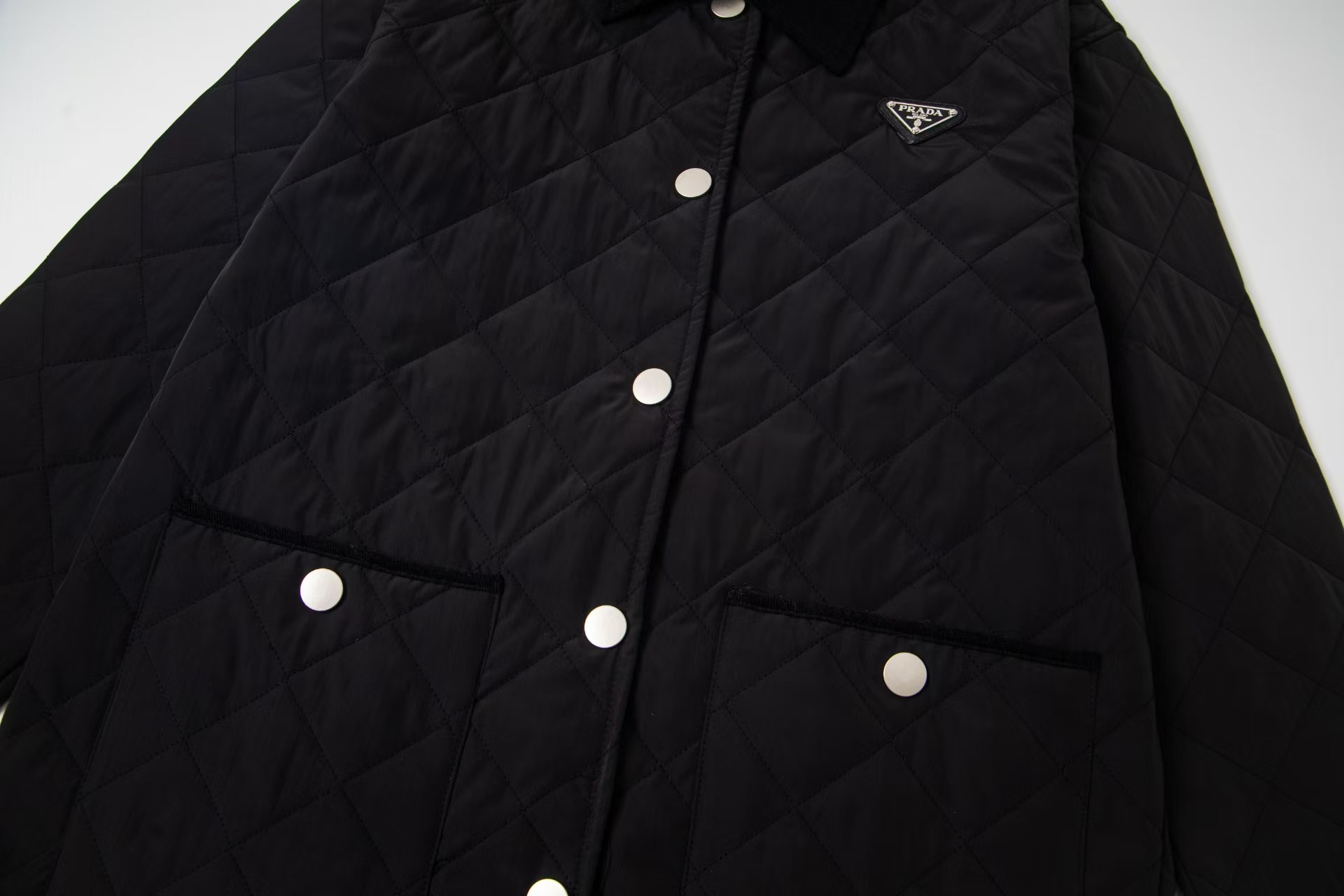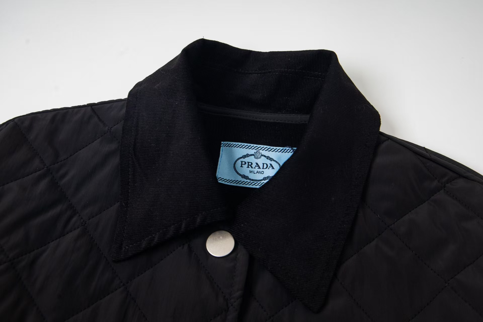 PRADA普拉达新款翻领灯芯绒菱格轻薄小棉服情侣款外套上衣