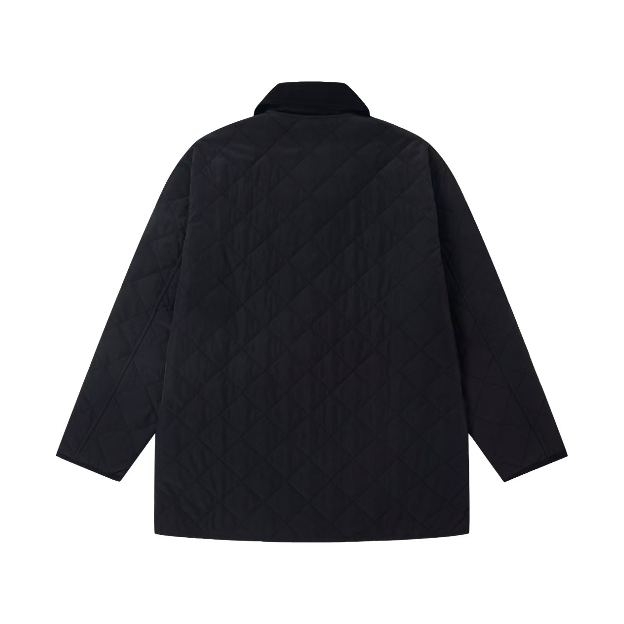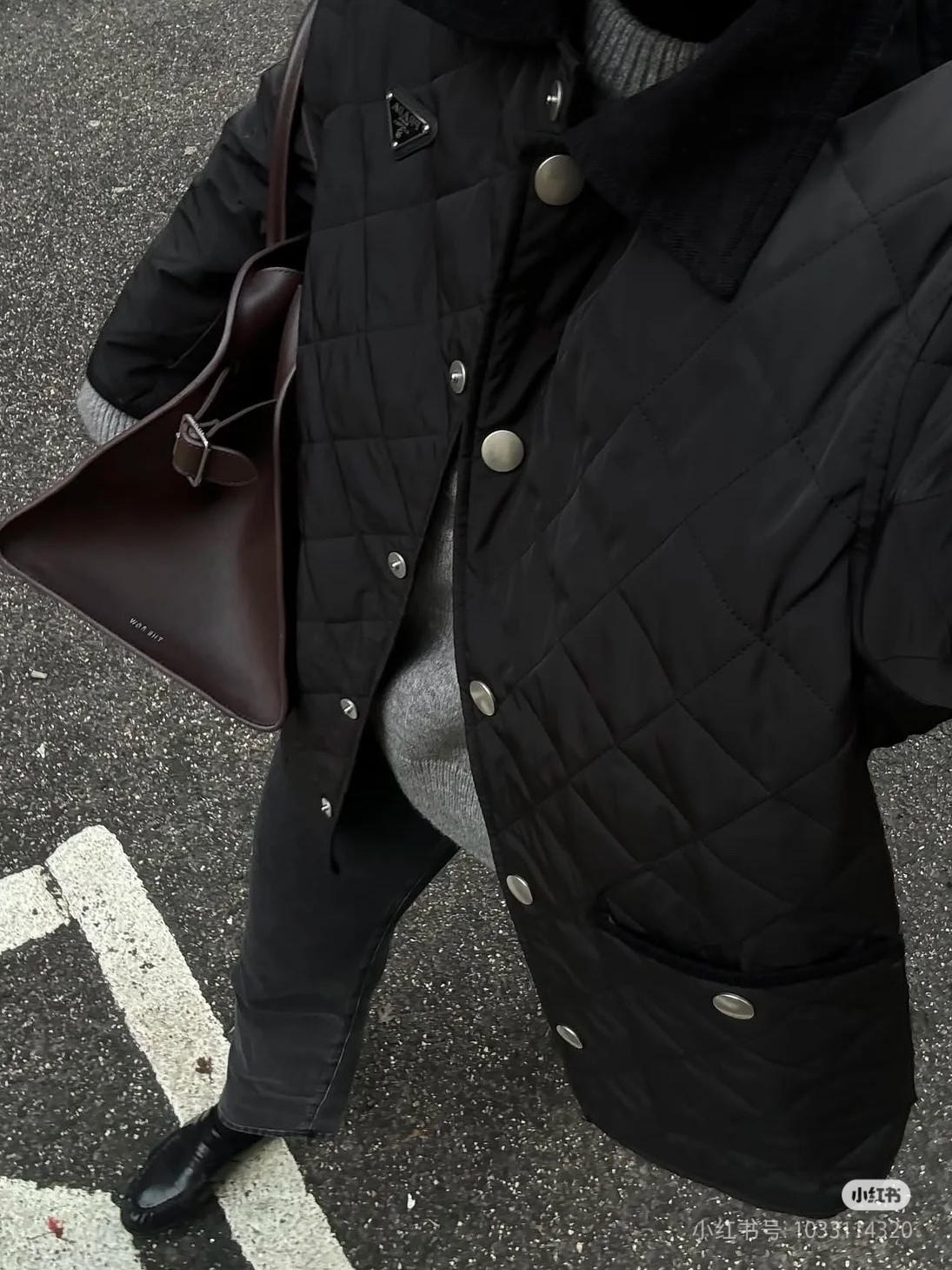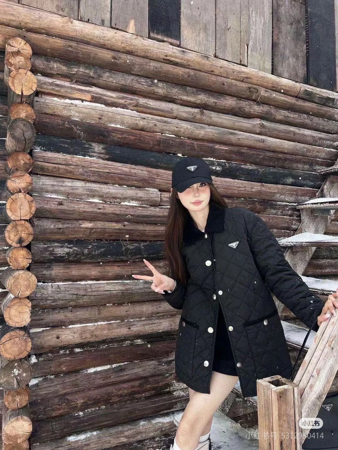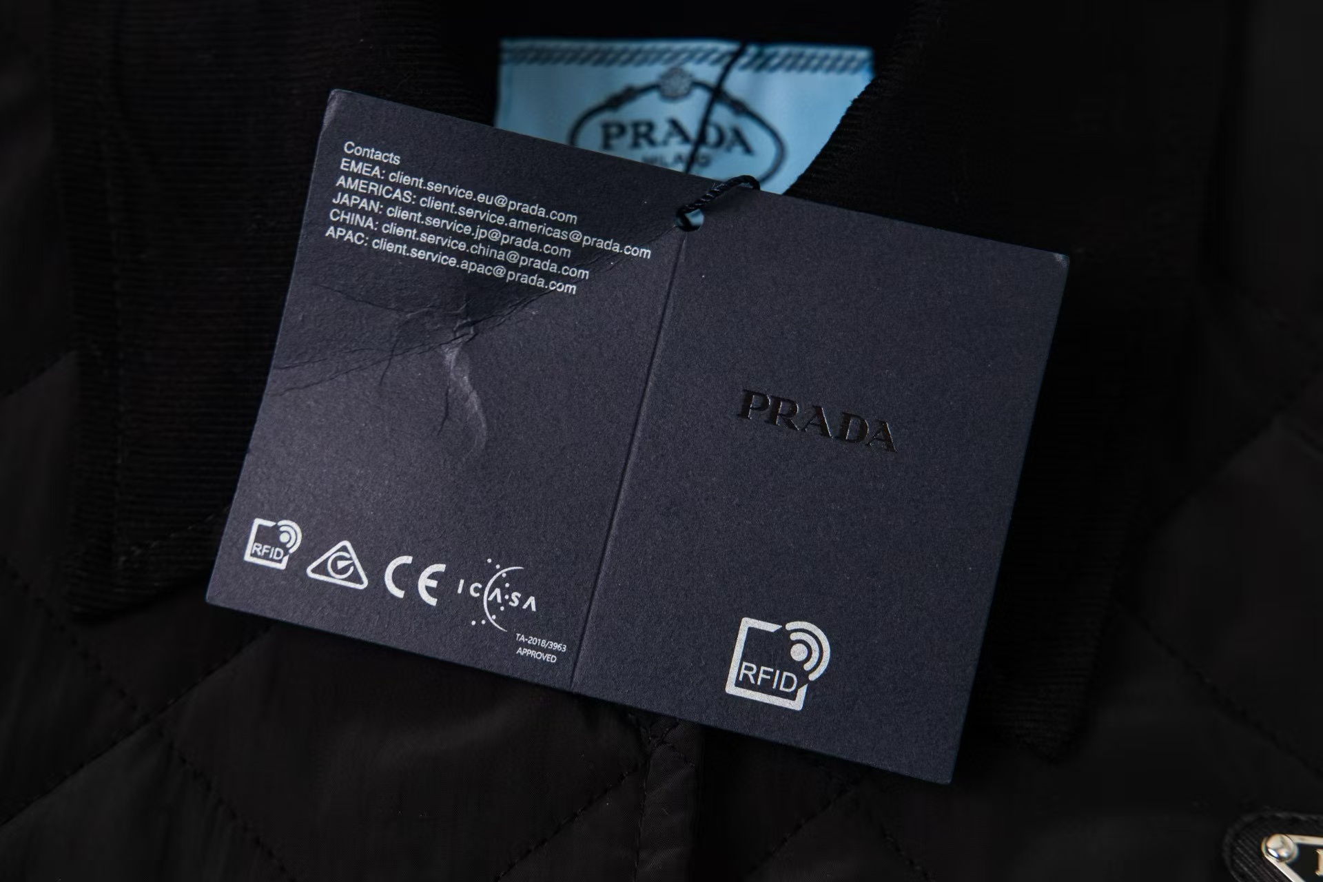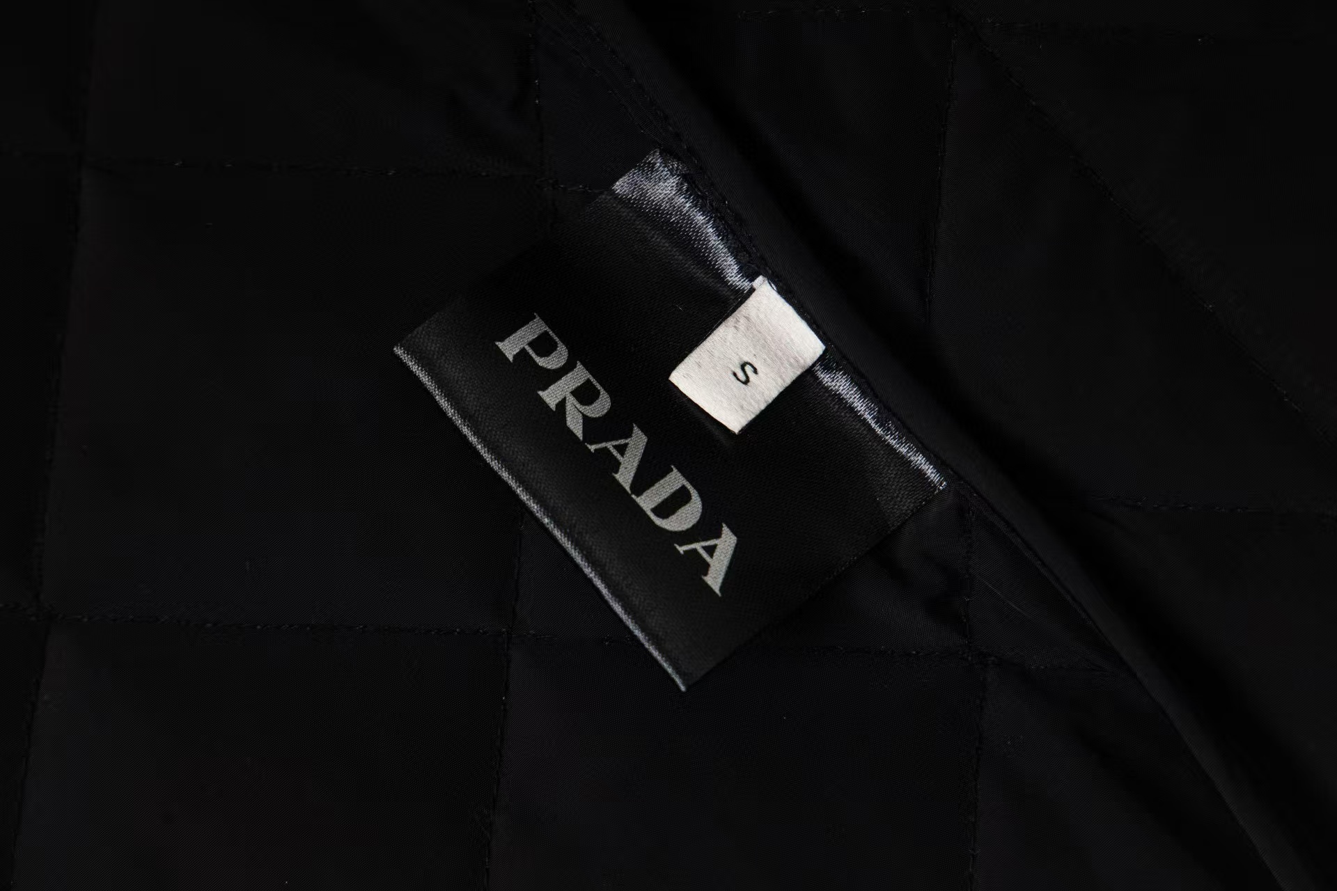 PRADA普拉达新款翻领灯芯绒菱格轻薄小棉服情侣款外套上衣
