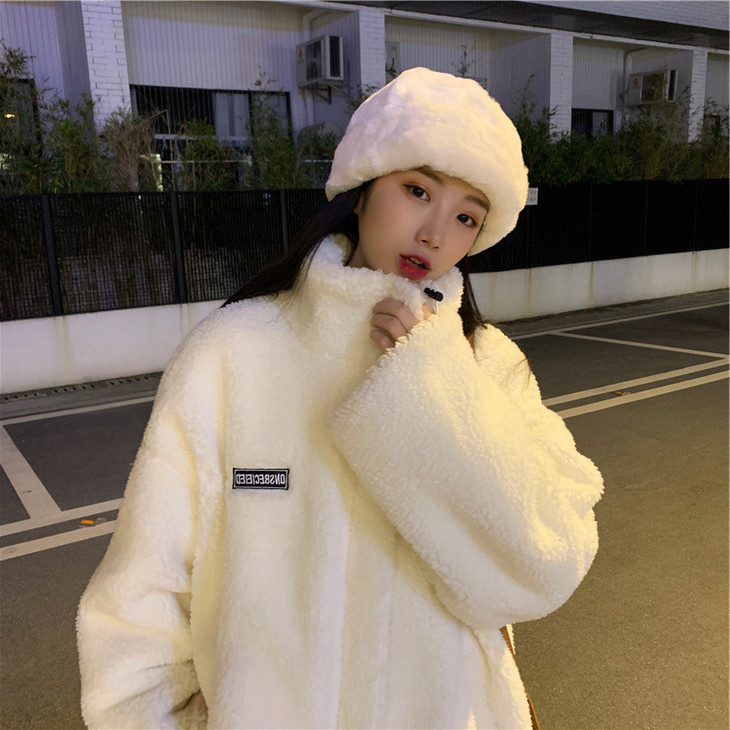 【服饰鞋包】立领羊羔毛加厚字母棉衣棉服外套女秋冬季宽松韩版小个子卫衣