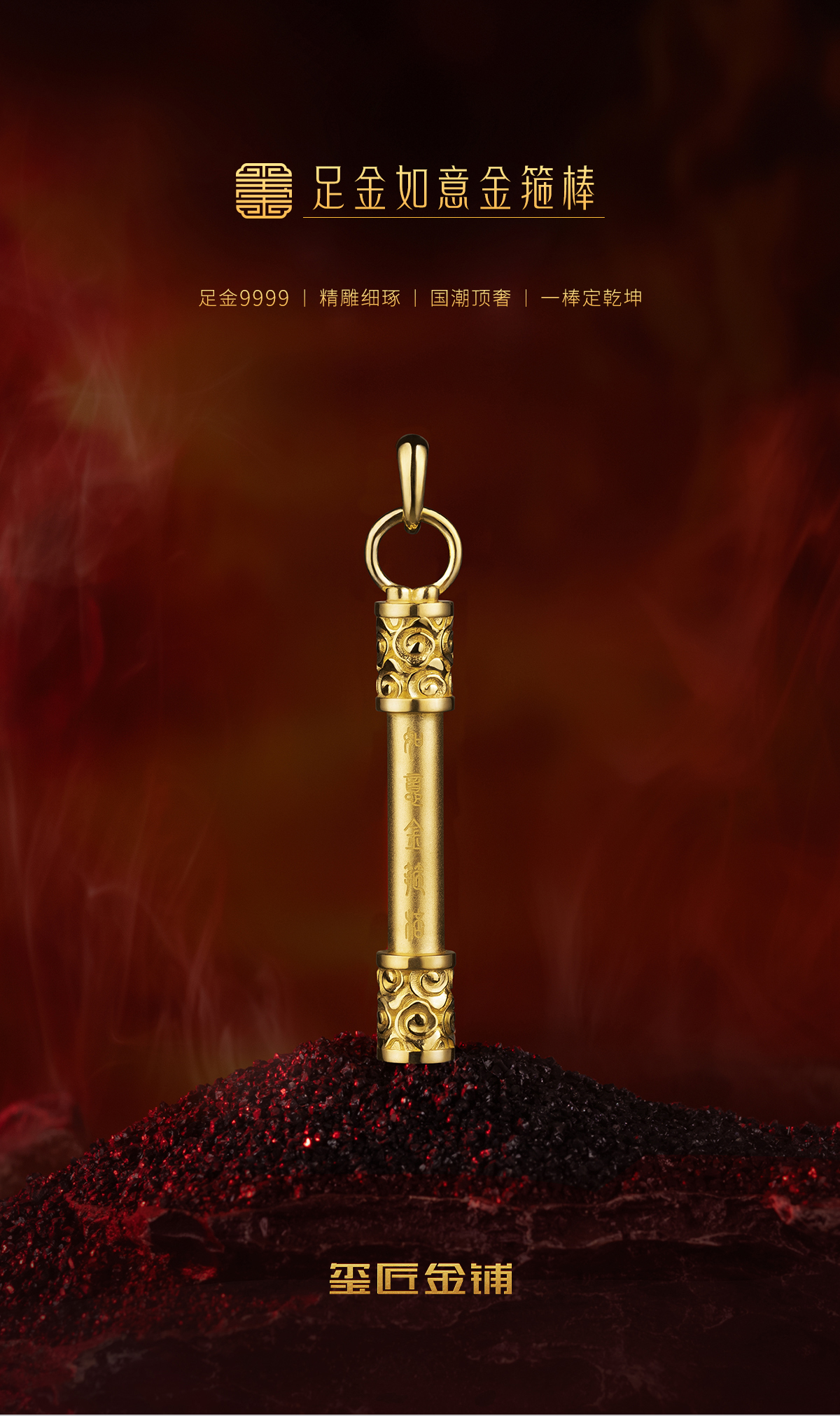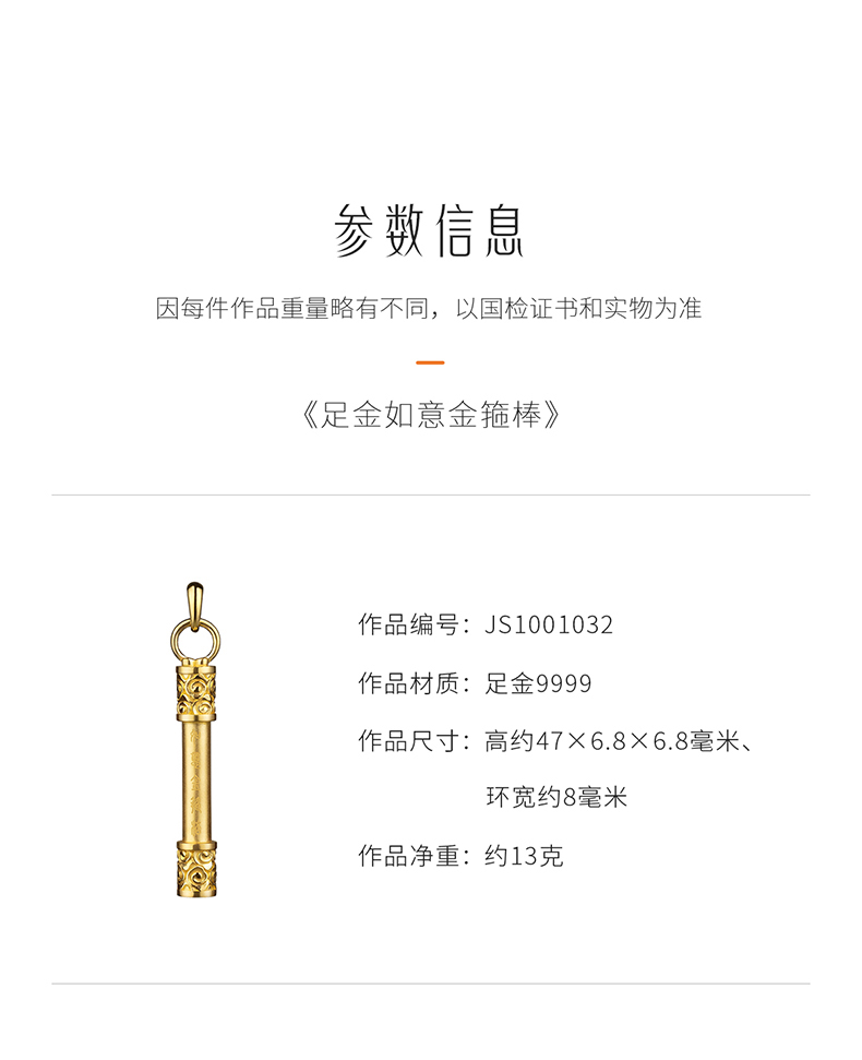 玺匠金铺《足金如意金箍棒》足金9999黄金吊坠 吉祥饰品挂件
