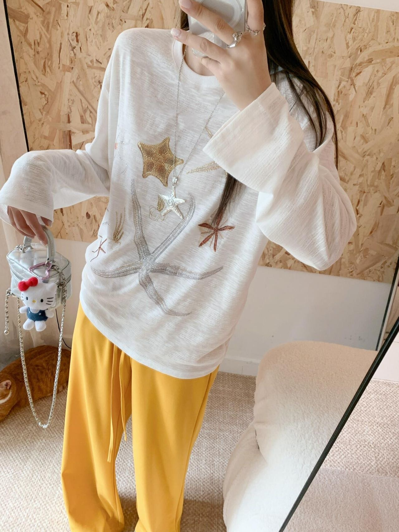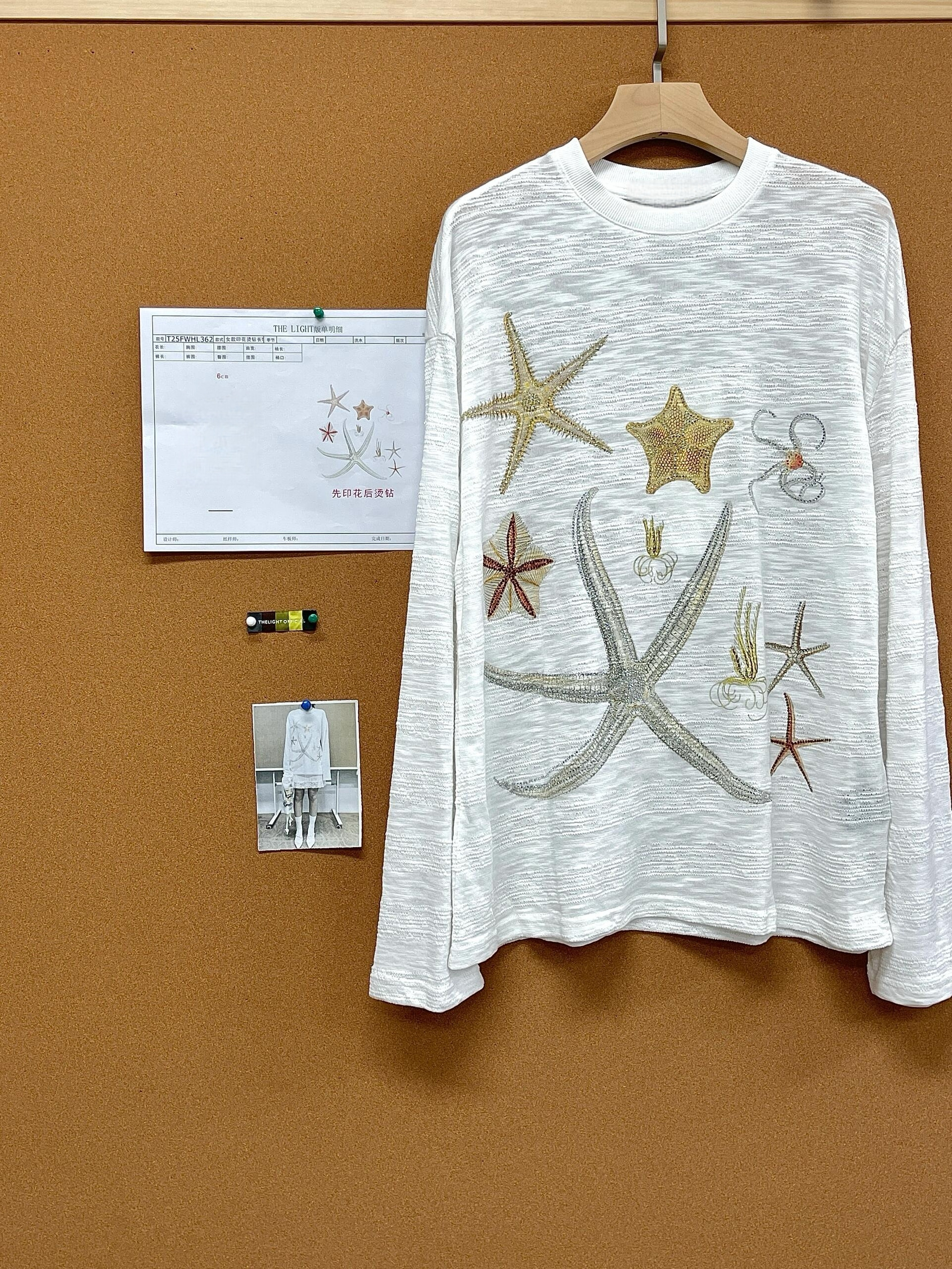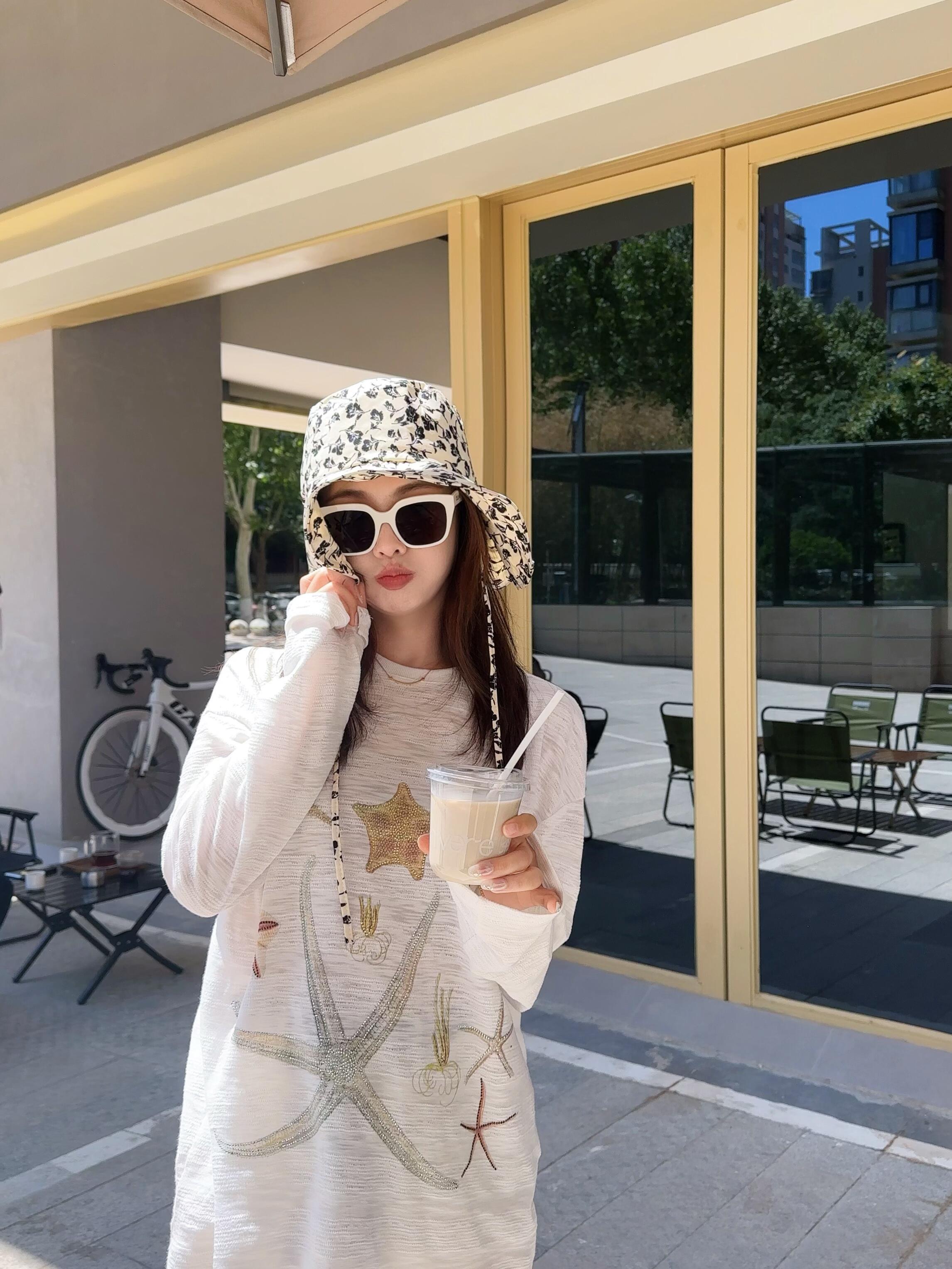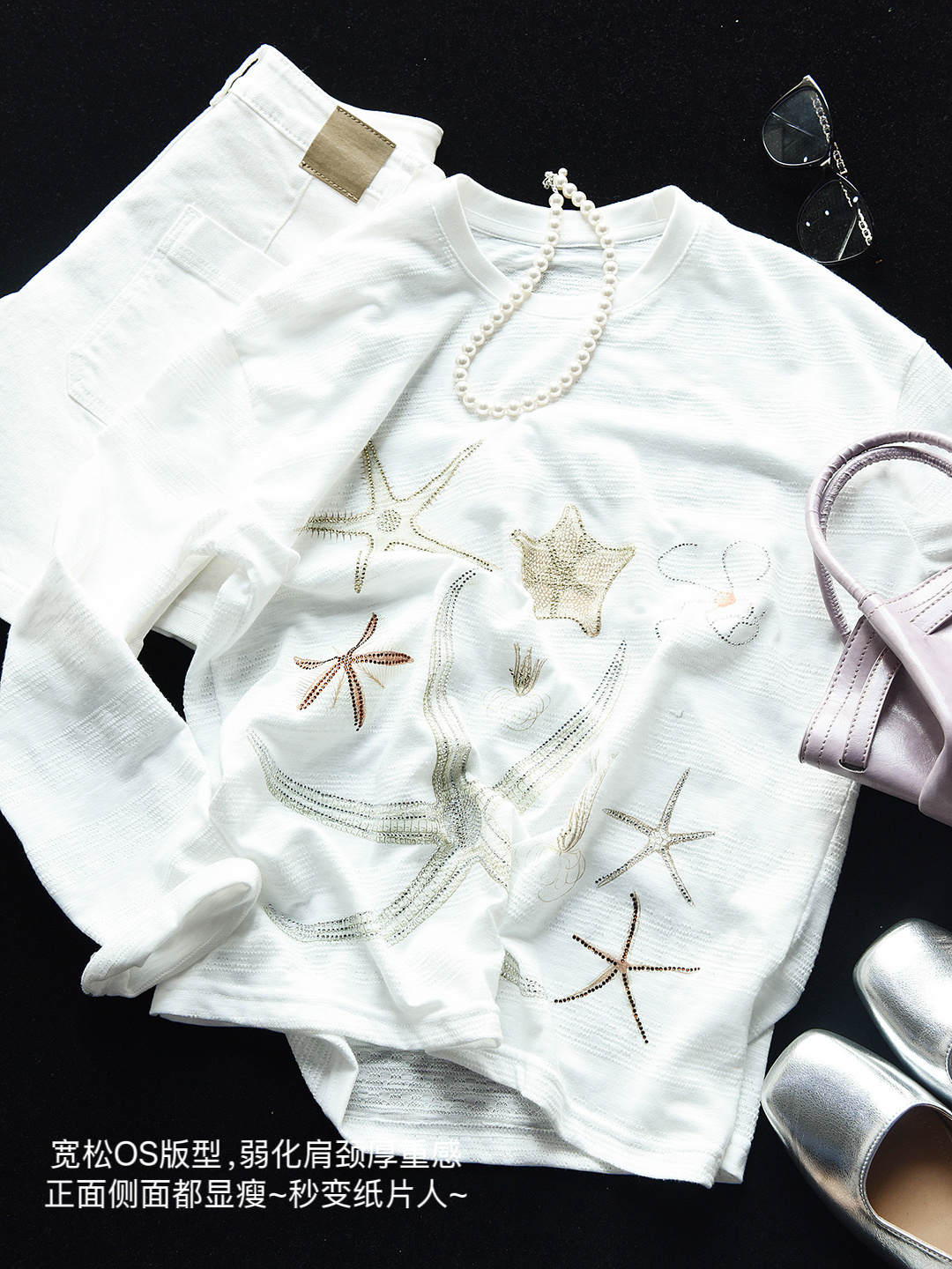 两道工序先印刷后烫钻,高温幻彩烫钻每颗钻折射率,阳光下波光粼粼,海边穿它超有氛围感~自带波塞冬滤镜~