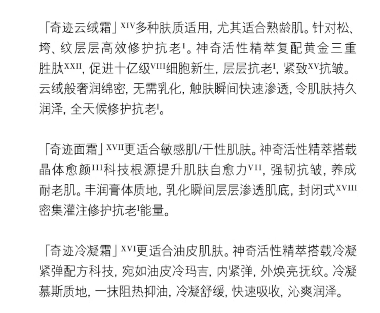 品名:海蓝之谜紧致焕颜精华晚霜 规格:30ml 原产国:美国 备案文号:国妆网备进字(沪)2024003717 - 海蓝之谜奇迹晚霜 | 熬夜脸救星 “虽然贵,但很配” 一款专为夜间而设计的黑科技晚霜。 🌃它能模拟人体深眠模式下的肌肤状态,根源开启夜间亢老的细胞新生开关。 🌃睡不好 睡不够 脸就会累 丑 跨 而这款晚霜能在最宝贵的夜间 实现一夜8重亢老力, 逐一攻破因为没睡好,熬夜而导致的诸多肌肤问题,实现肌肤的亮 紧 提, 让肌肤不假睡!睡饱又睡好! 令肌肤一夜回春,宛若新生,每天都是发光肌! 🌃单一成分不能解决复杂的问题, 而奇迹晚霜:全新亢老因子MRA-3全面驱动细胞新生速率,再以#神奇活性精萃 促进肌肤新生力,为亢老提供主要动能,保驾护航,再复配#抗氧橙光精萃 实现夜间加速赶走自由基,清理白天遗留下来的压力和炎症。 🌃奇迹晚霜在夜间可帮助肌肤更快回血,使细胞增多,速率变快,足足翻倍的加大了新生马力,促进胶原蛋白裂变级 爆裂式生长,令肌肤胶原满满,每天都是日抛脸! 🌃肌肤老化,十老九干,而它拥有奢润的绒感膜质地,超绝的肤感,润而不油,宛若丝滑的天鹅绒一般,一抹由霜转膜,如同第二层肌肤,细腻滋养每一寸肌肤。 像拥有奇迹魔法一样,一夜还你透亮肌~ 产品功效:深度修护,高效亢老,紧致亢皱。 适用肤质:所有肤质通用 使用方法:无需乳化,每日睡前,洁面精华后,取适量于指尖轻揉,随后轻轻按压于面部,直至吸收即可。 生产批号:C84 包装方式:盒装 储存方式:避免阳光照射,置于阴凉干燥处。 售后标准:支持七天无理由退换(未拆封且配件齐全,不影响二次销售);质量问题,我司承担退换运费;非质量问题,客户承担退换运费。 |