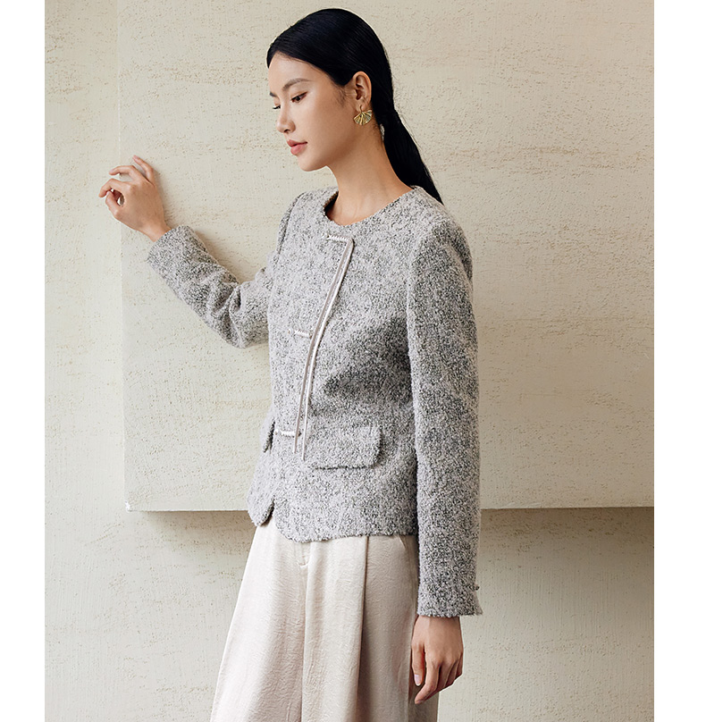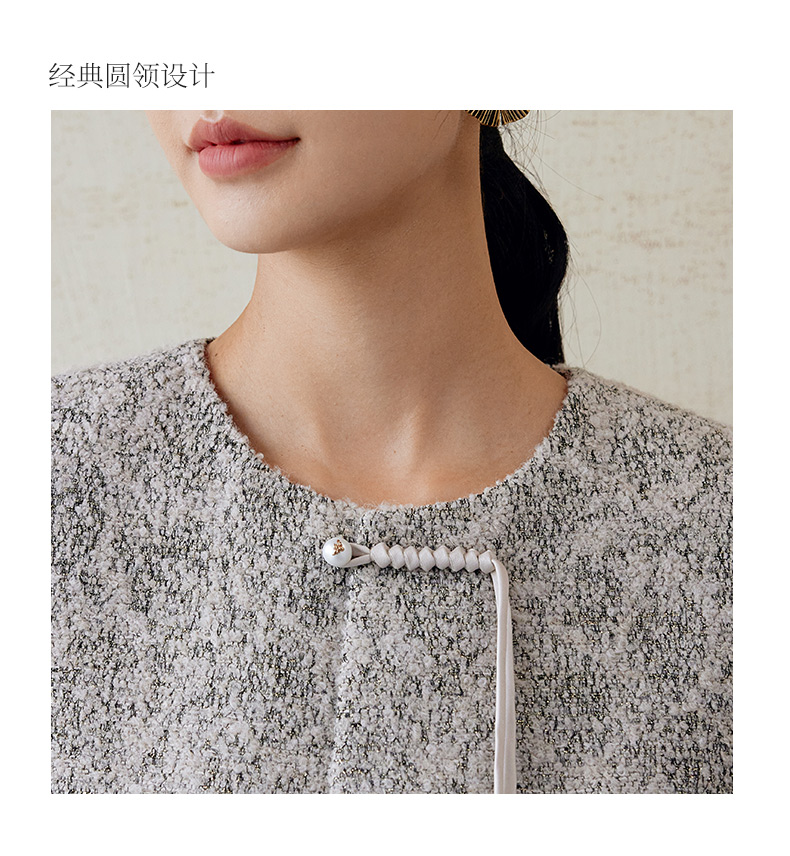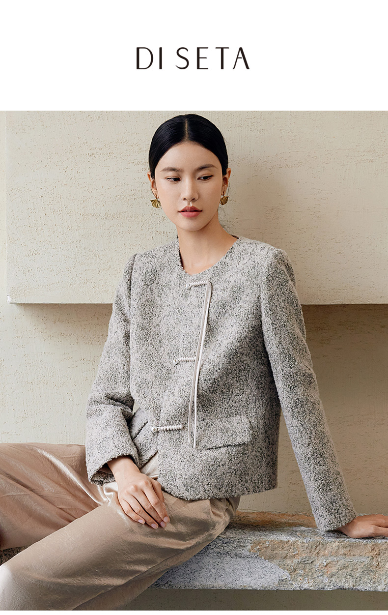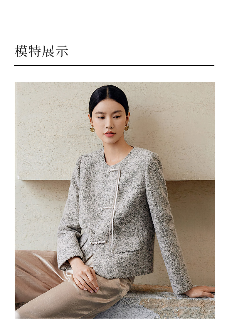 玳莎新中式毛呢外套女秋季新款优雅气质拉毛设计感圆领大衣 EC37306