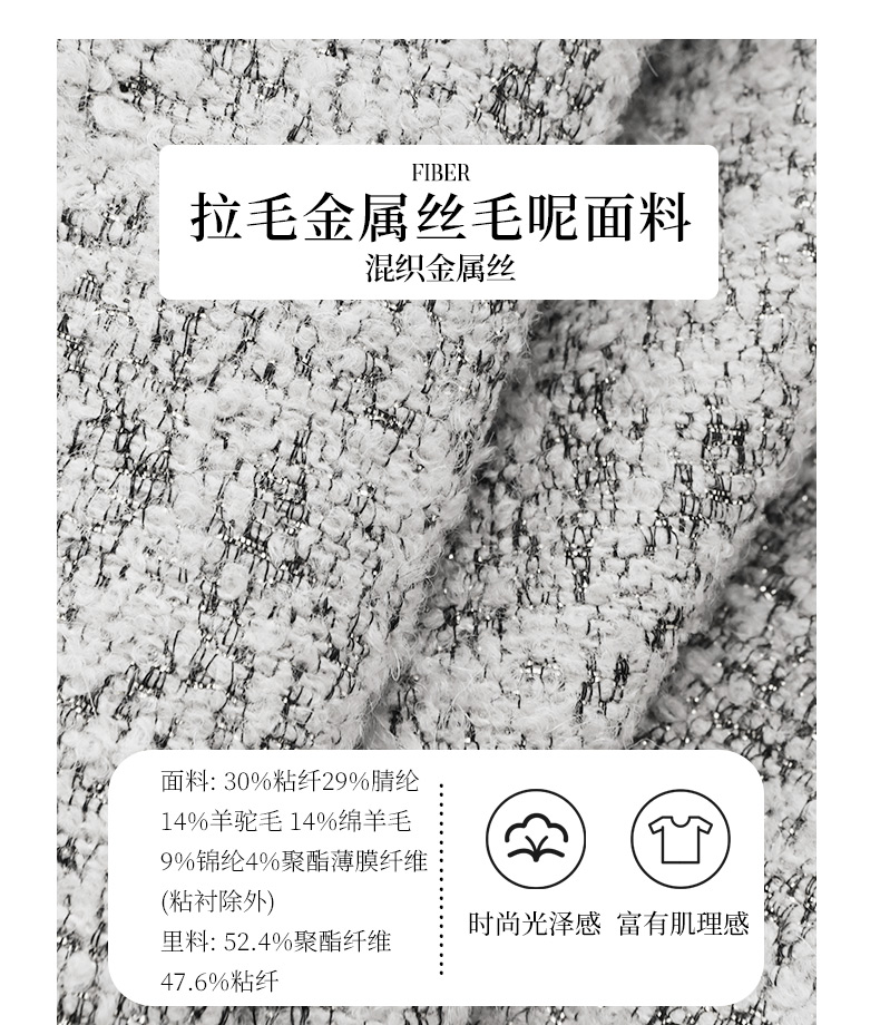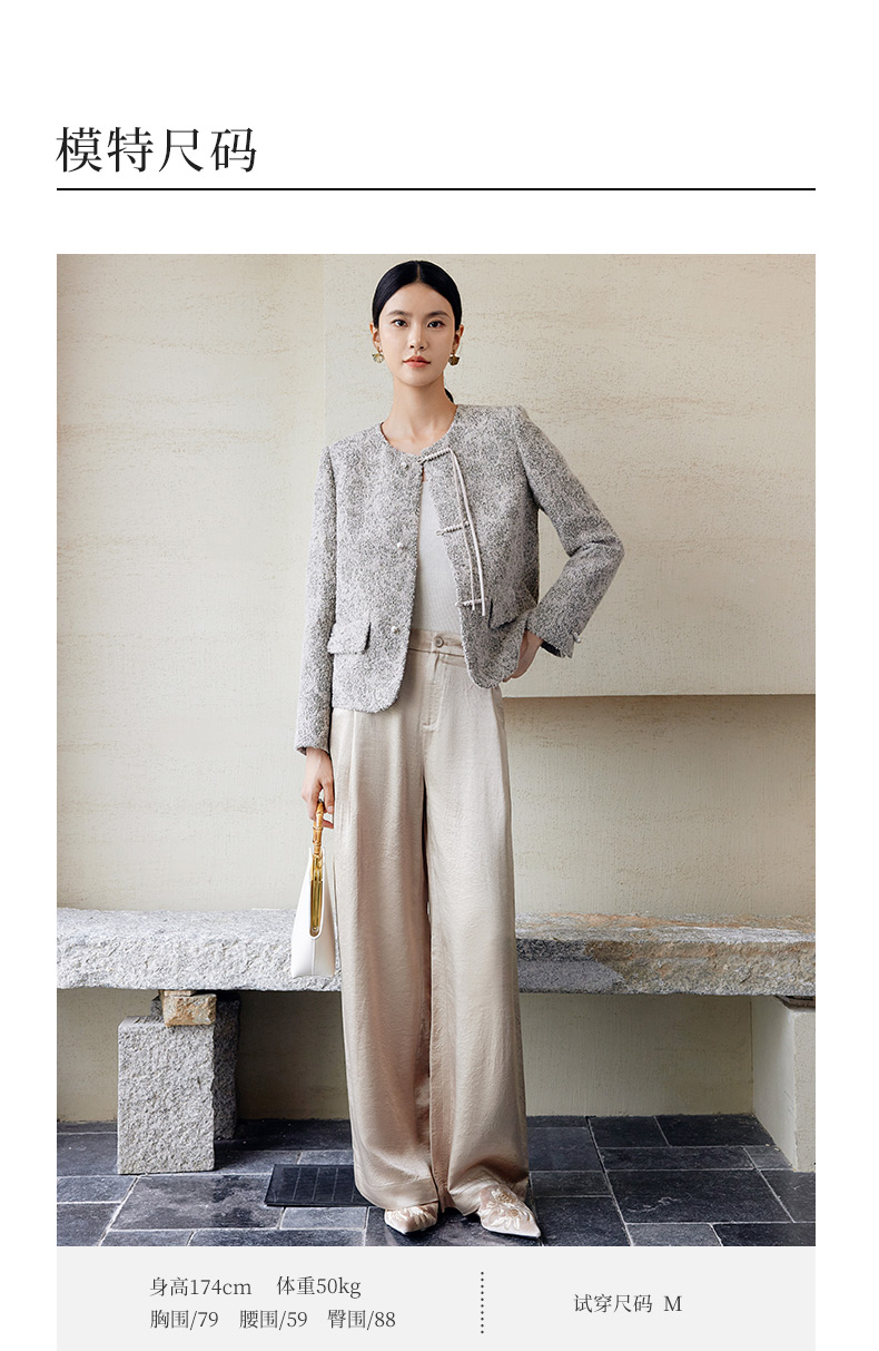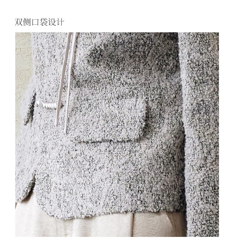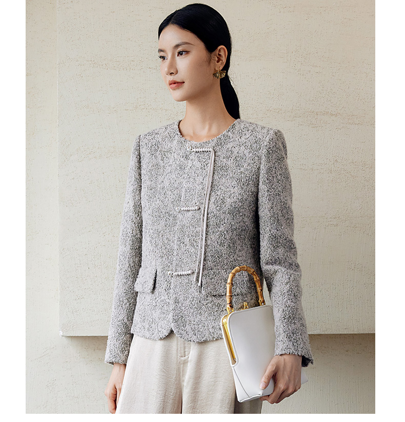 玳莎新中式毛呢外套女秋季新款优雅气质拉毛设计感圆领大衣 EC37306