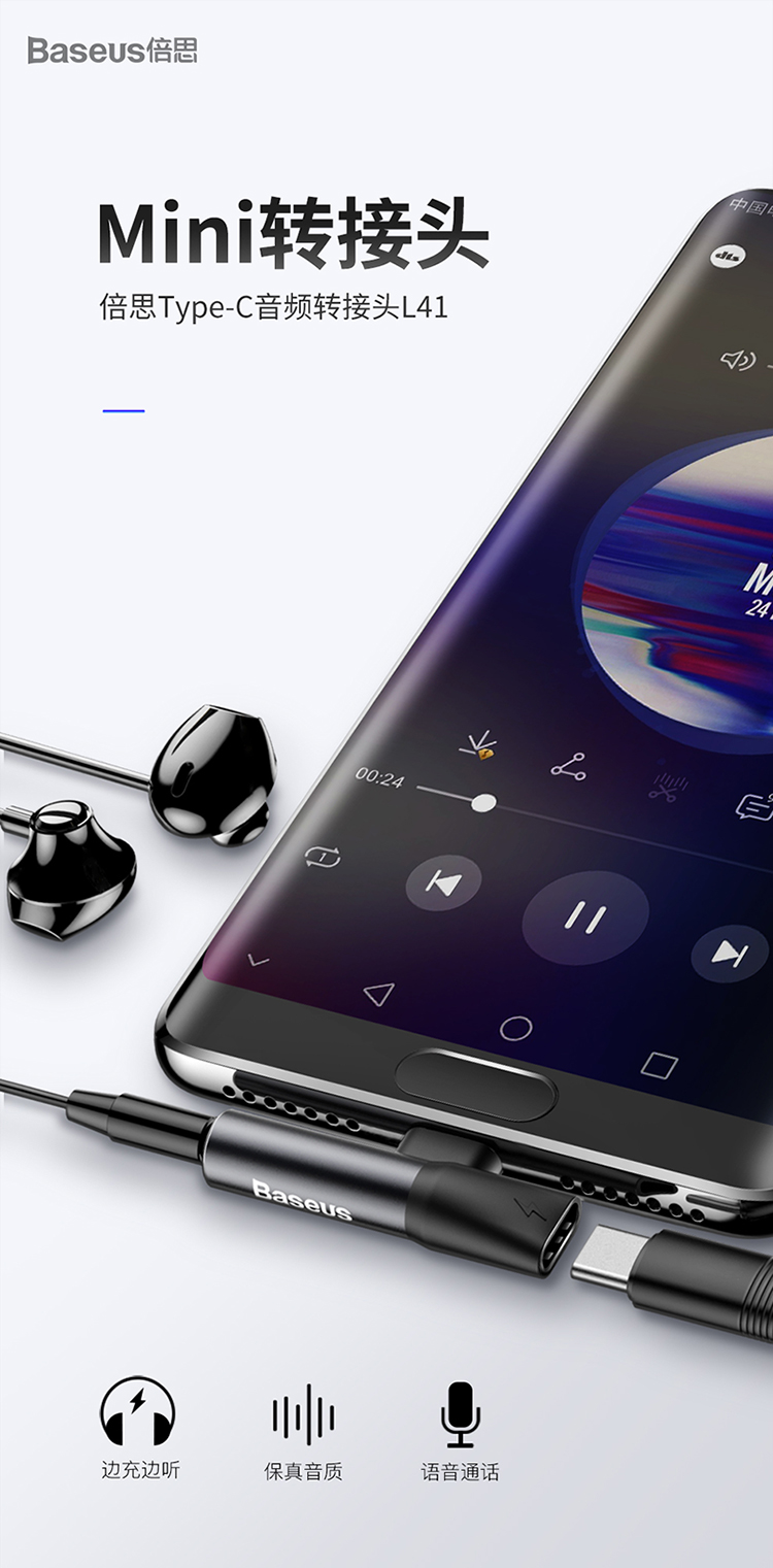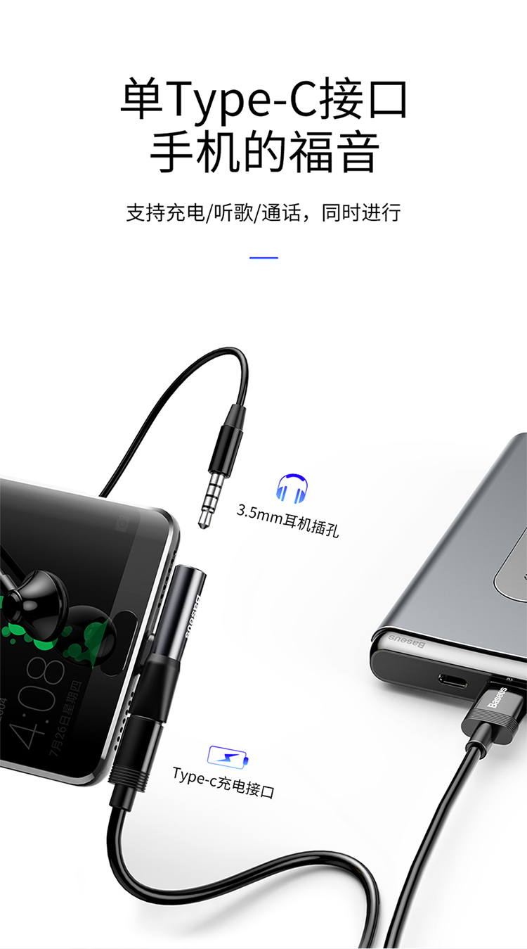 倍思 L41 Type-C(输入)for Type-C母座+3.5母座转接头(不带线)