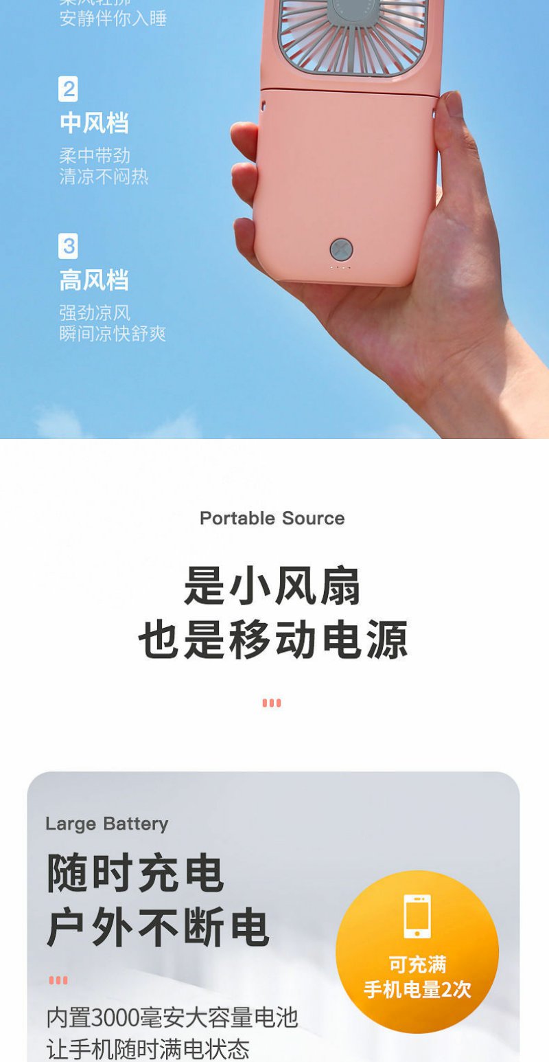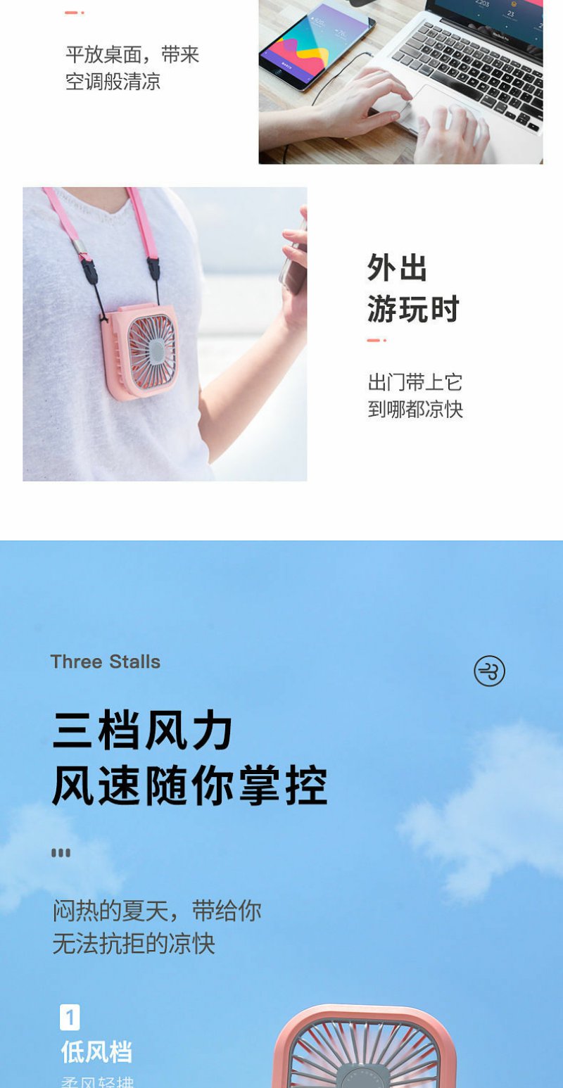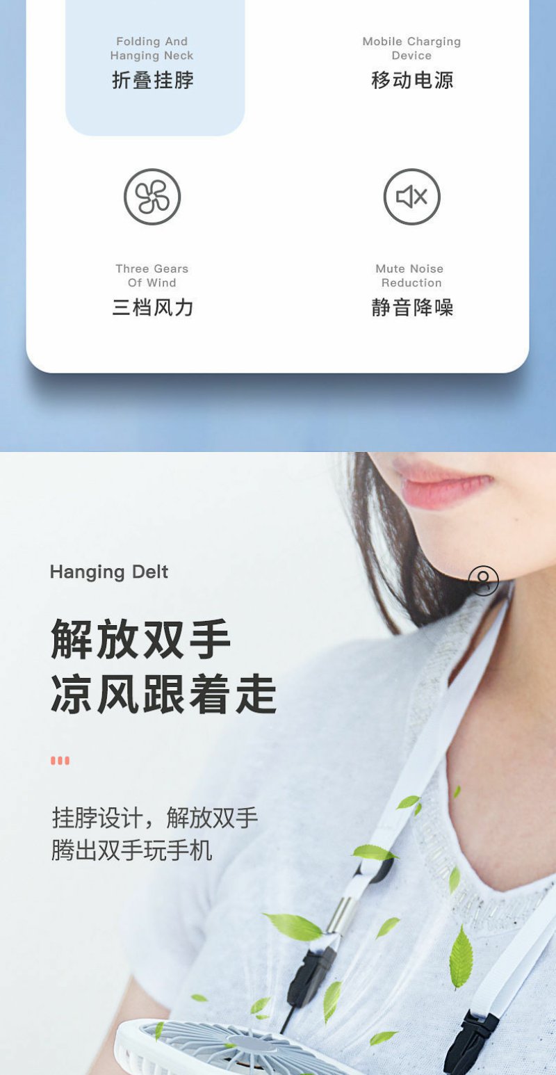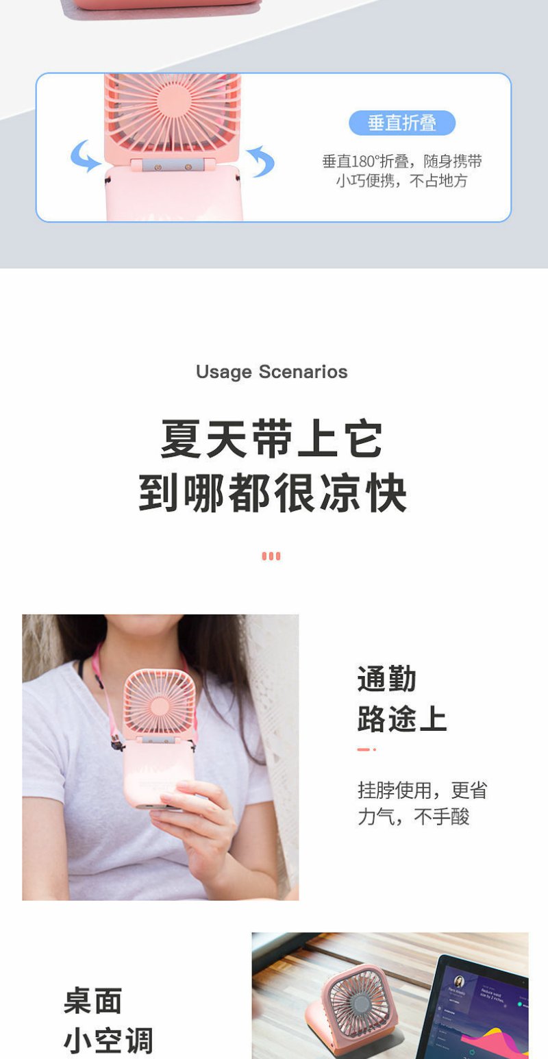 usb挂脖小风扇迷你充电小型学生超静音手持小电风扇制冷大风力