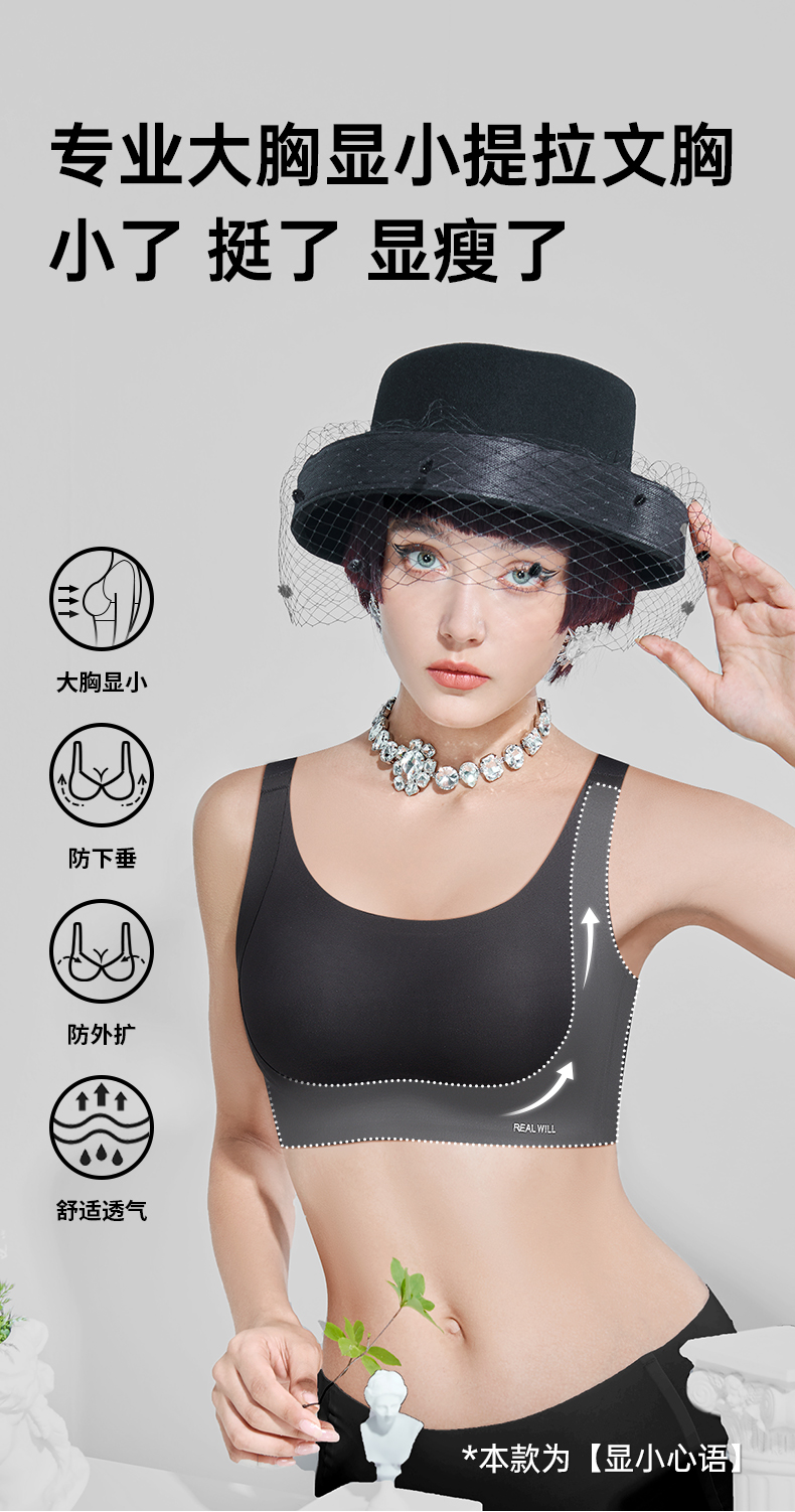 D1-🔥【B-E杯】【大胸显小 兔耳杯垫】润微无果冻软胶条内衣 显小心语