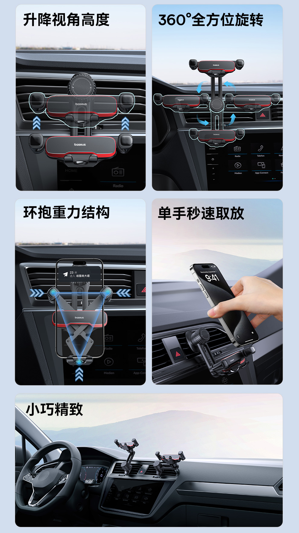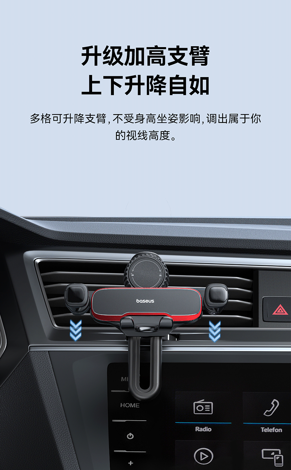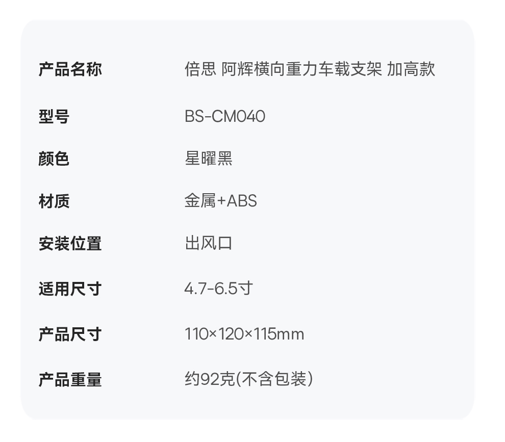 倍思 阿辉 横向重力车载支架 加高版