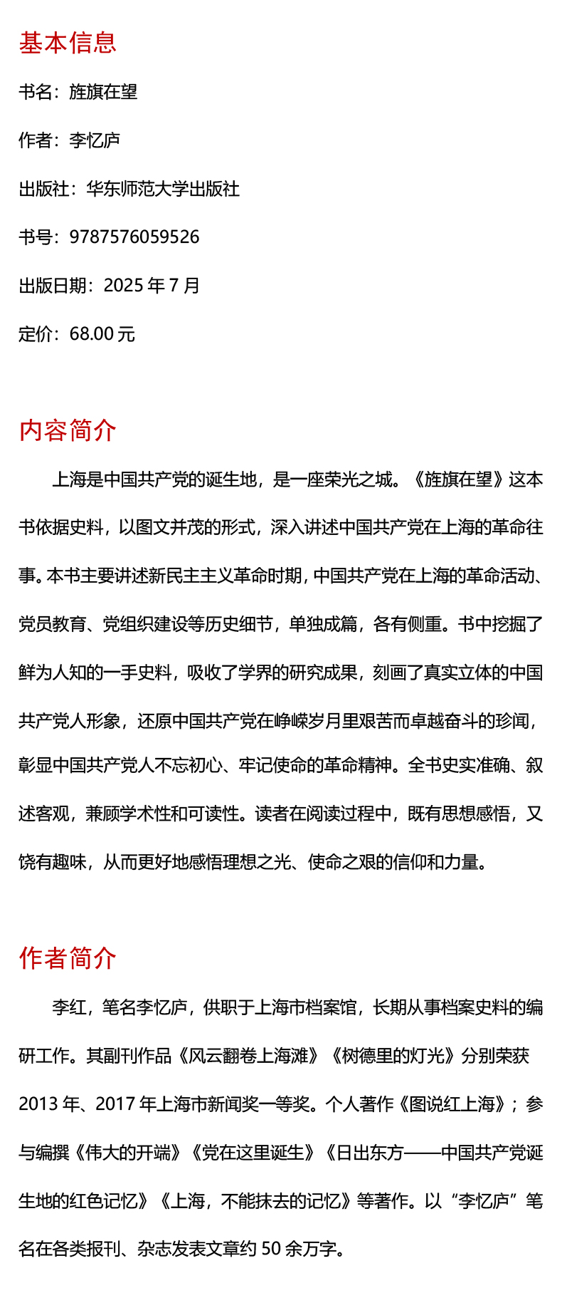 旌旗在望 浦江红色记忆 李忆庐 上海革命往事 民主主义革命时期