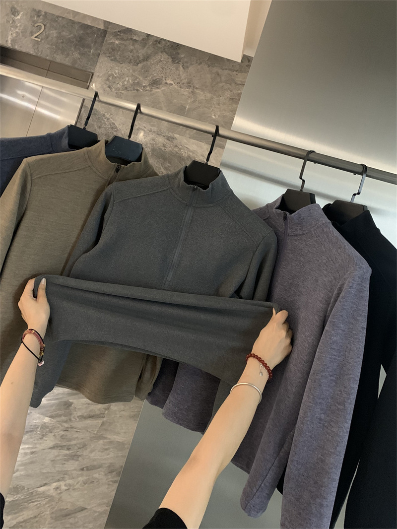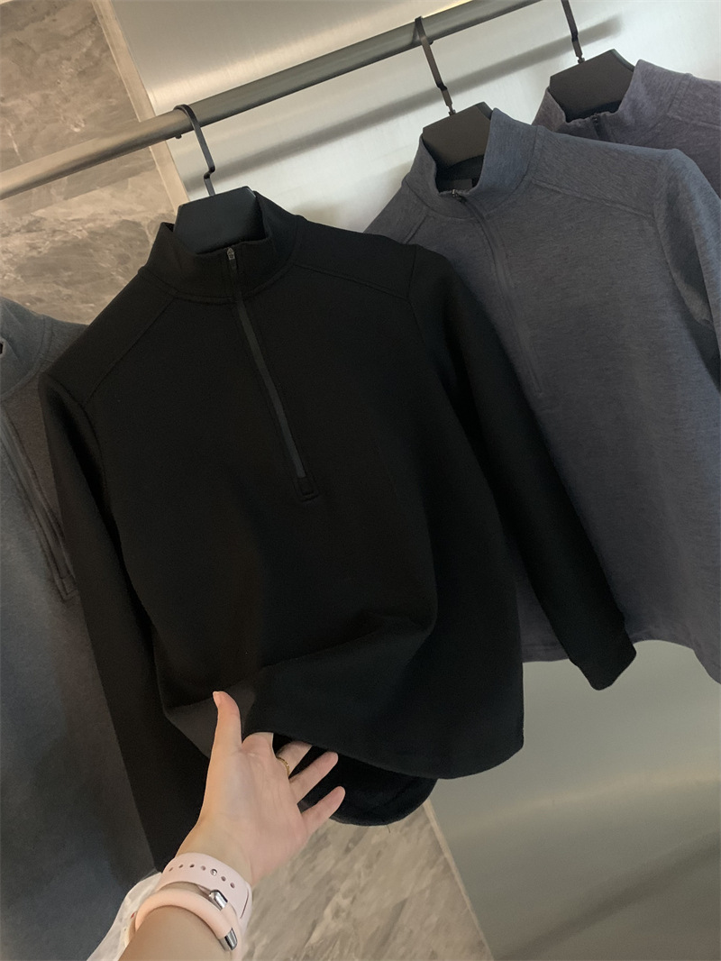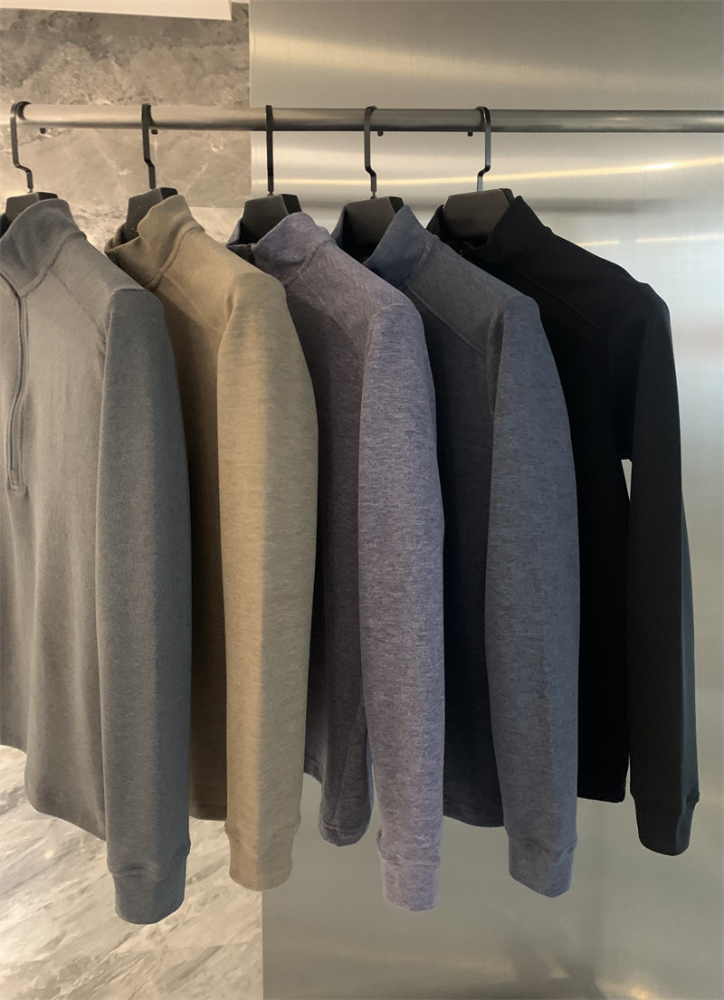 设计师线!2025水洗舒适纳米绒秋冬新款男长袖T半拉链打底衫卫衣!