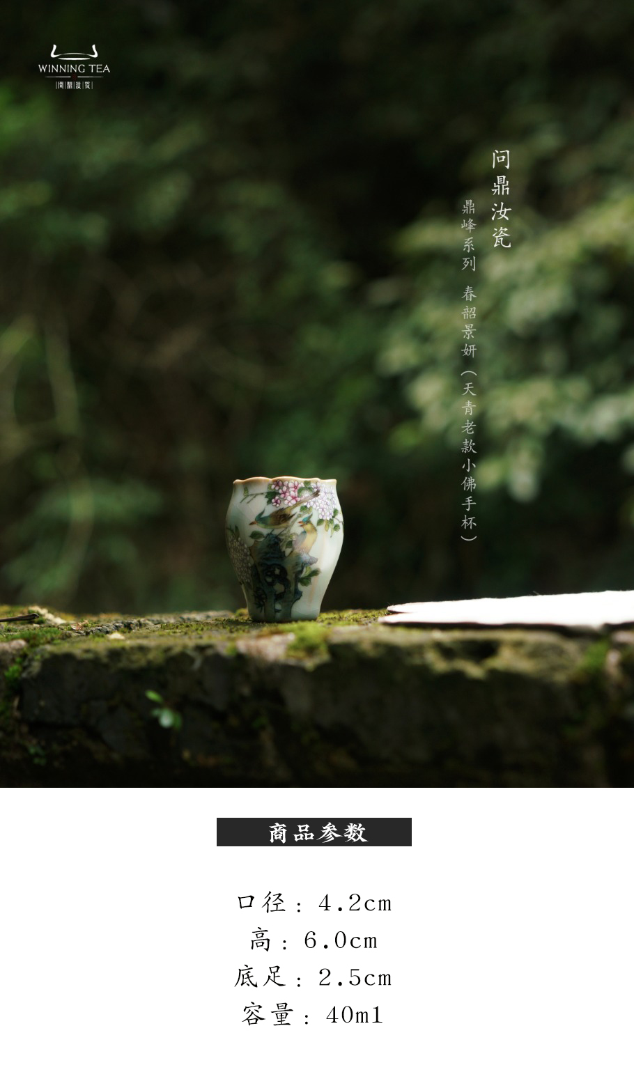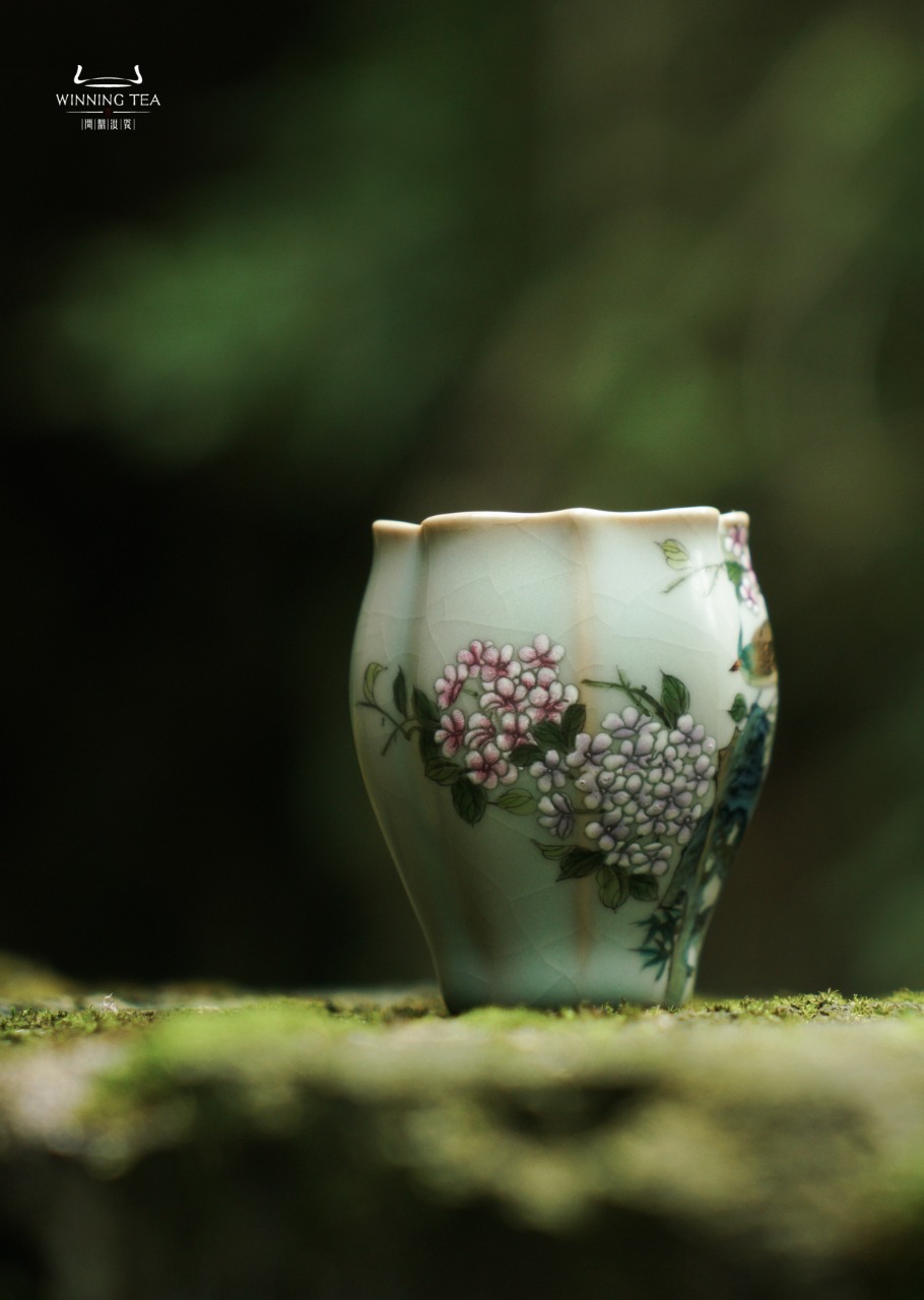 问鼎汝瓷鼎峰系列天青老款小佛手杯(春韶景妍)(缺货)