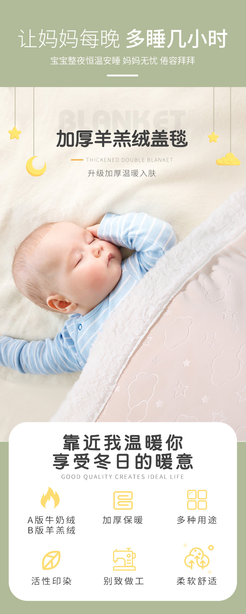 【一毯多用 宝宝整夜恒温安睡】婴儿盖毯初生宝宝儿童洗澡浴巾 牛奶绒空调被卡通羊羔绒 盖毯包被