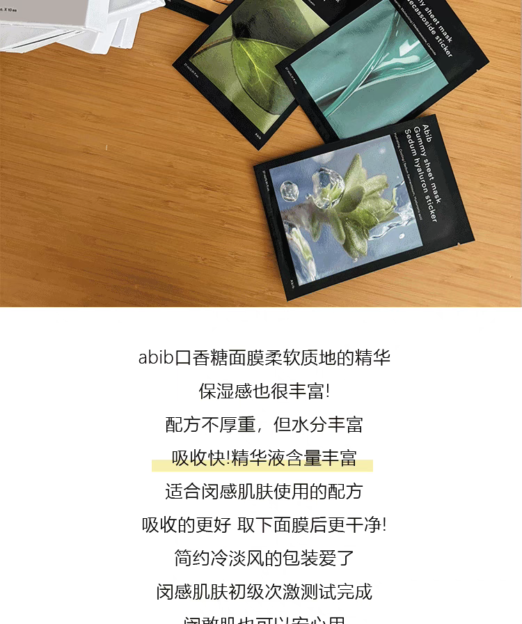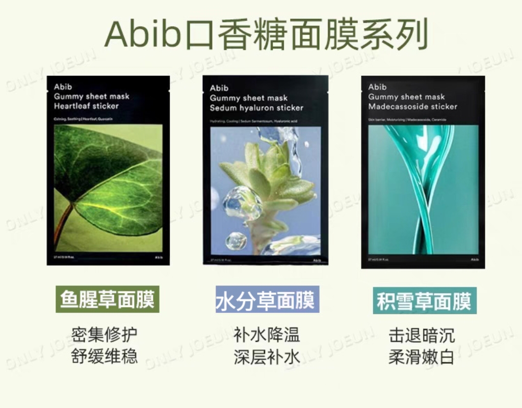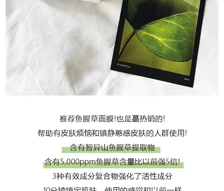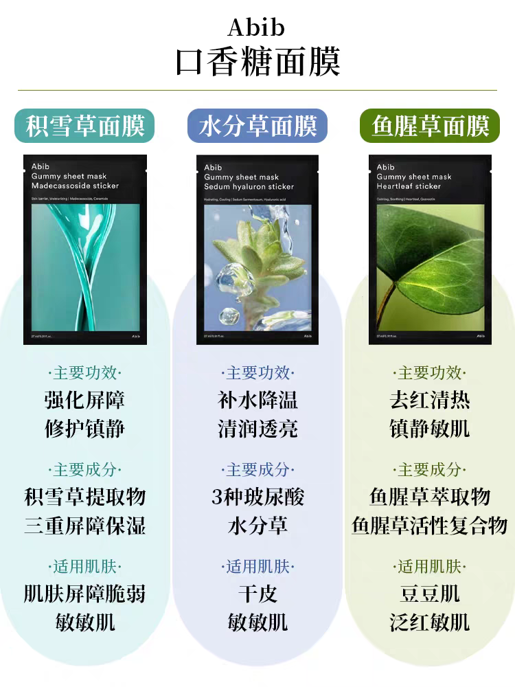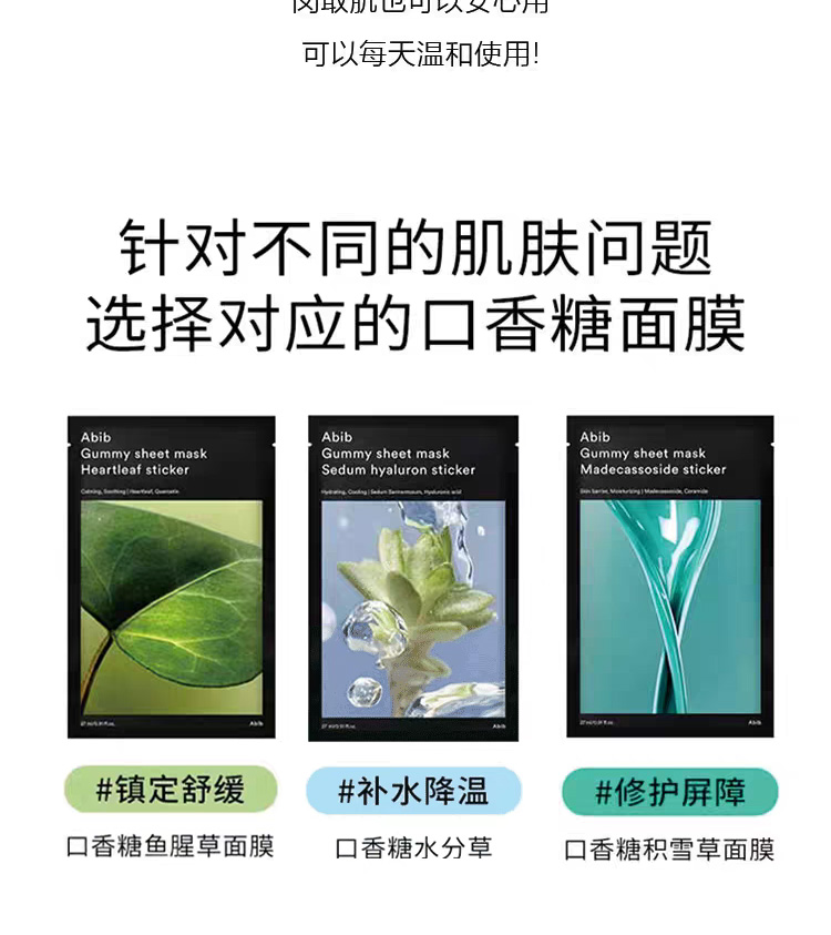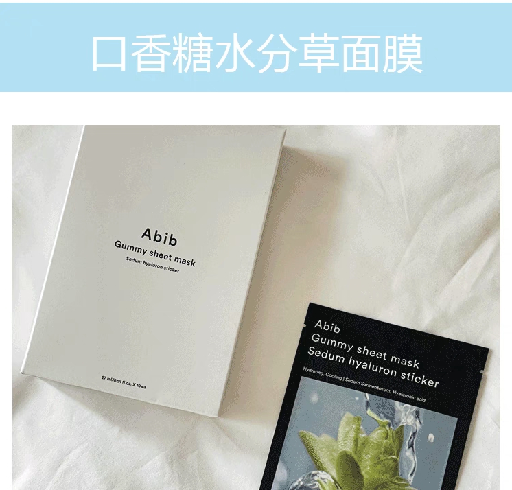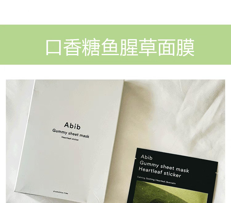 【一般贸易】阿彼芙口香糖面膜鱼腥草舒缓积雪草修护水分草补水提亮面膜27ml