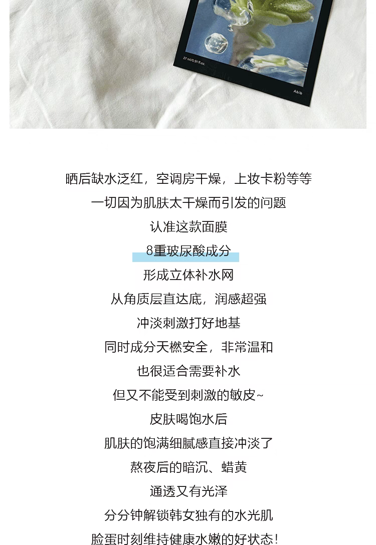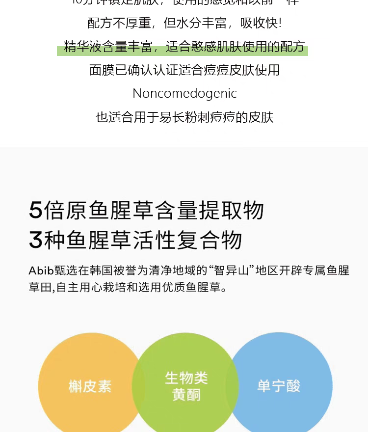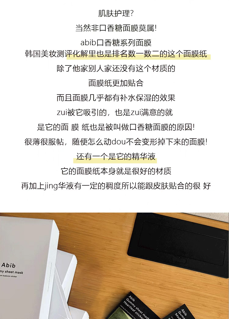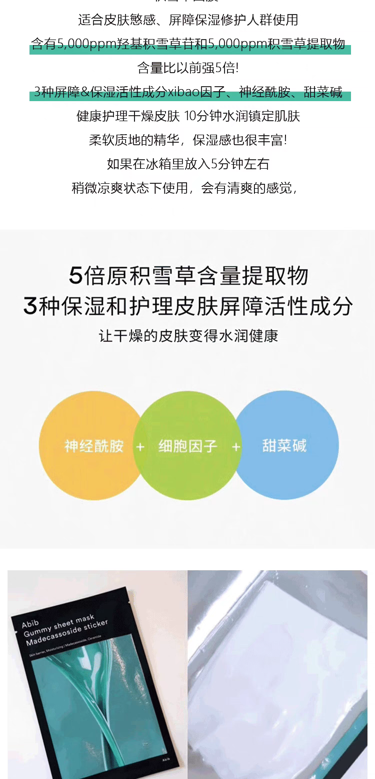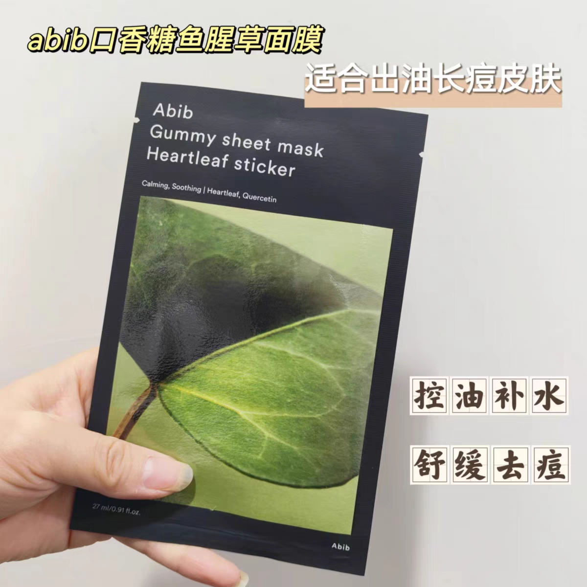 【一般贸易】阿彼芙口香糖面膜鱼腥草舒缓积雪草修护水分草补水提亮面膜27ml