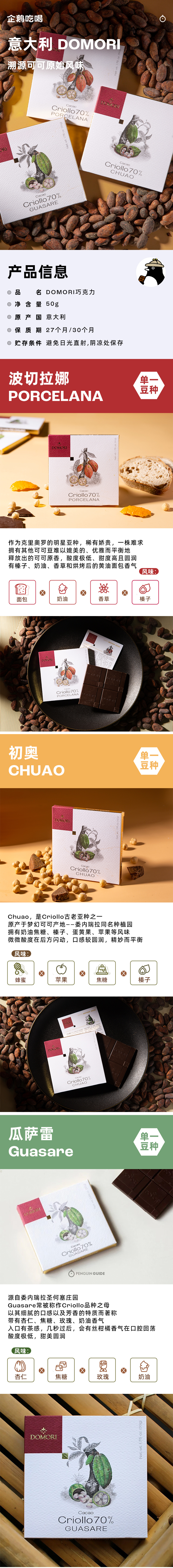 企鹅市集|意大利进口Domori单源黑巧克力50g 多产地70%黑巧克力 珍稀可可品种 香浓细腻