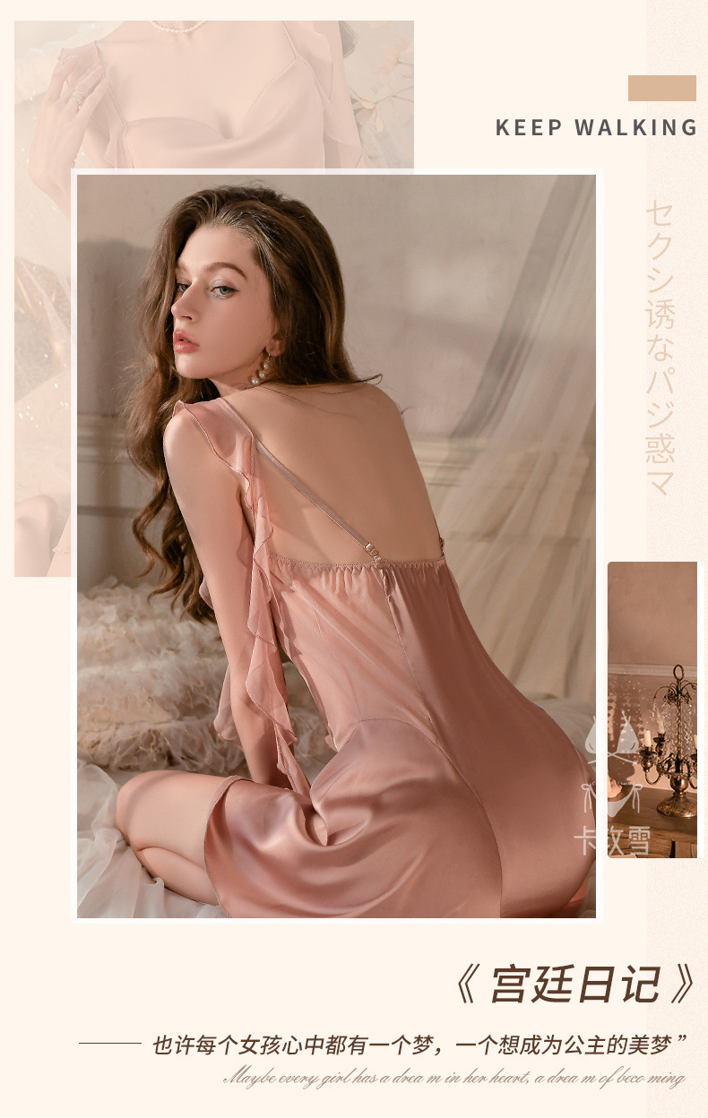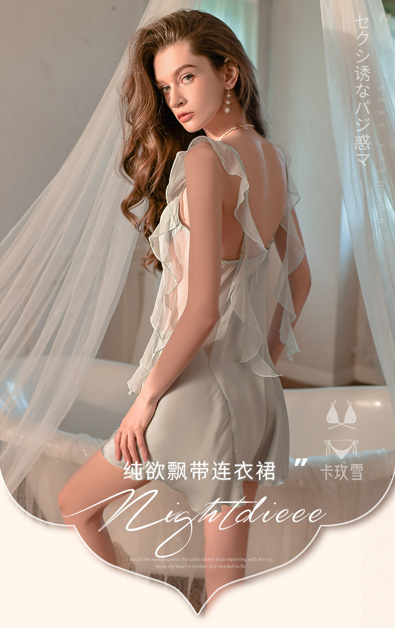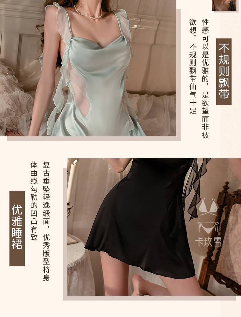 【甜美优雅!纯欲性感飘带连衣裙】高级感无袖冰丝女士吊带小心机透视露腰家居服