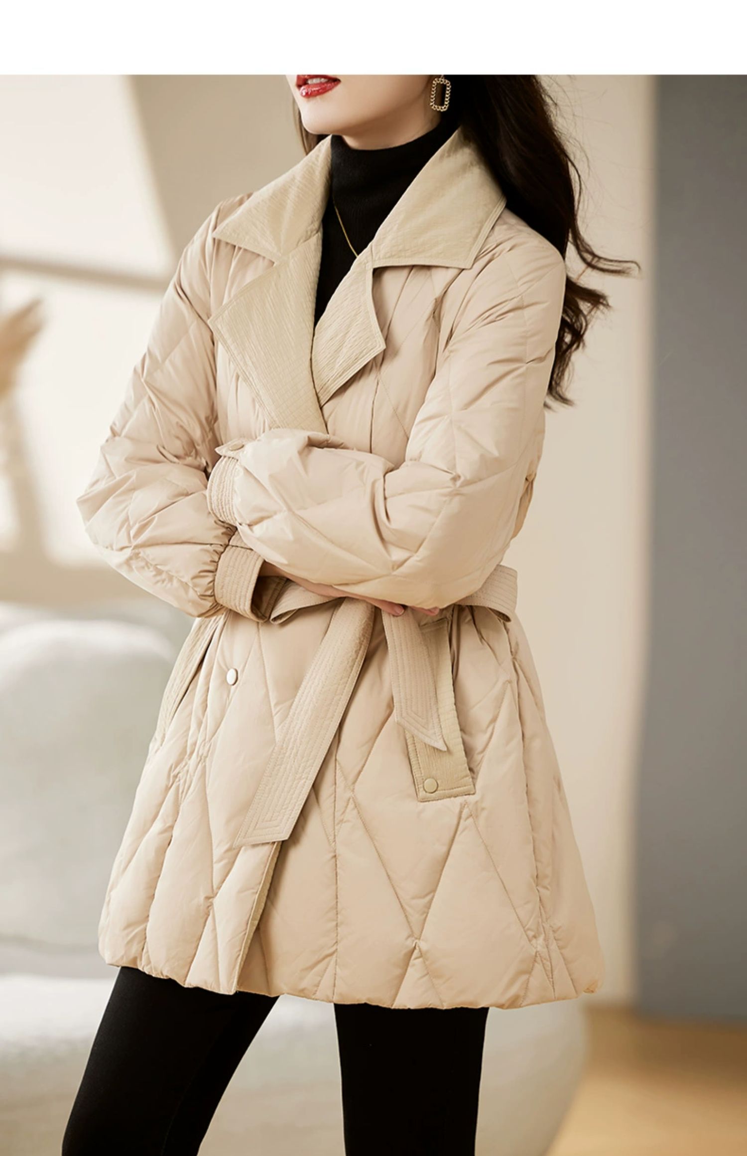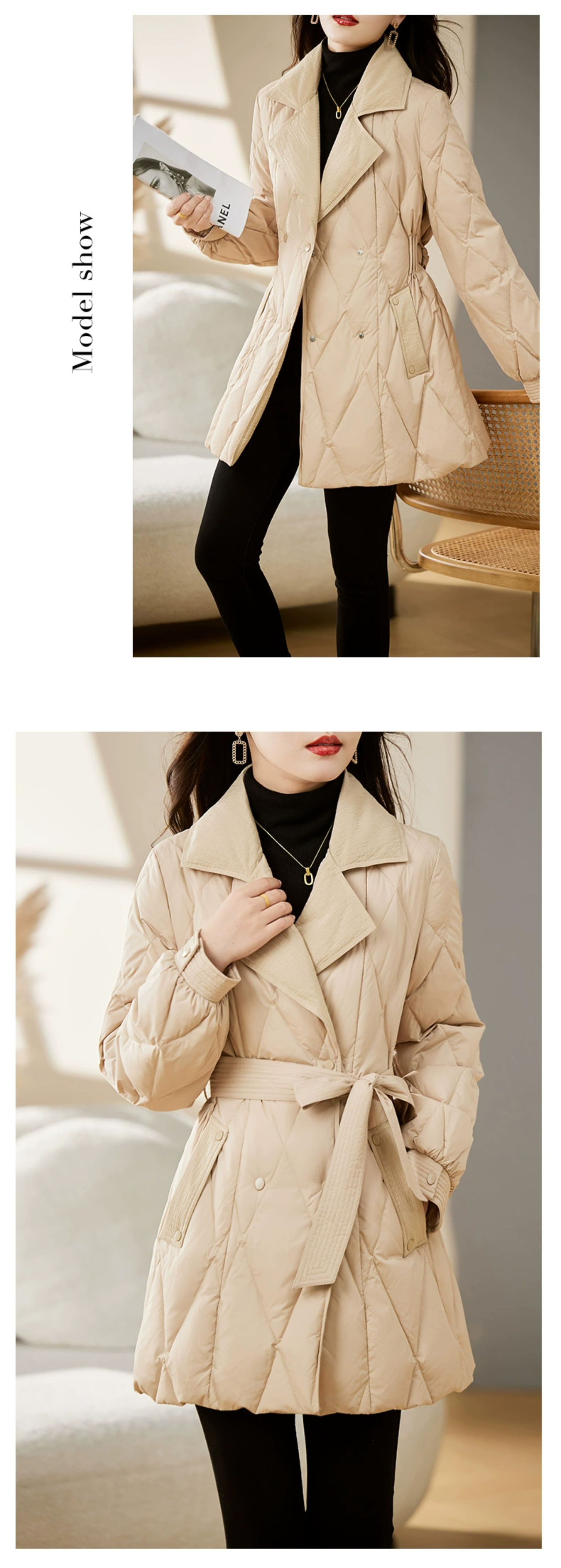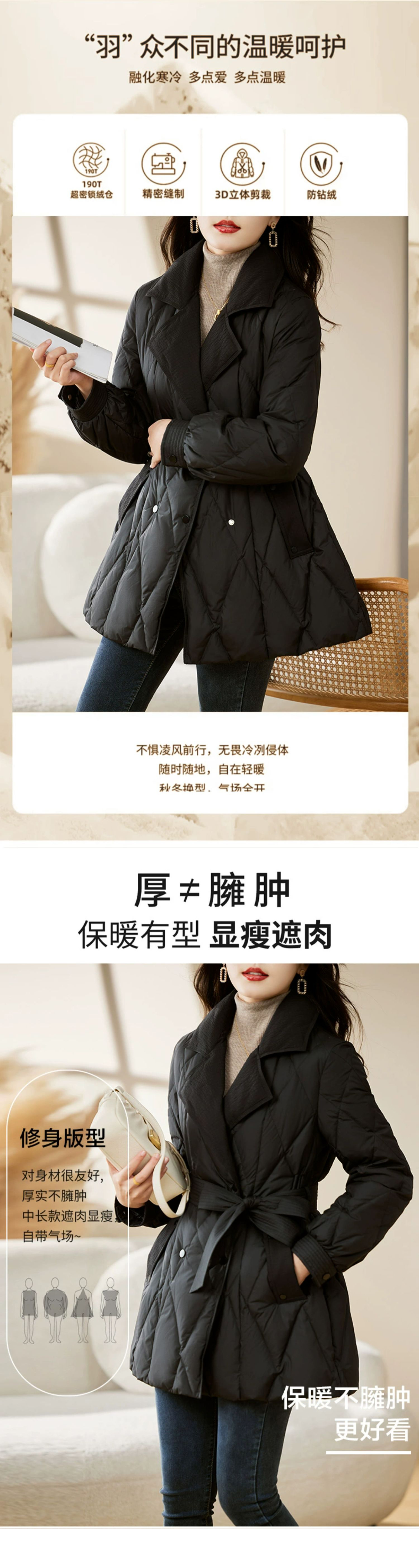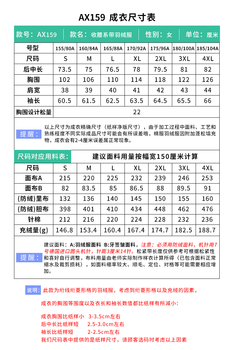 裁缝学苑AX159 中长款收腰系带西装领羽绒服纸样女装显瘦打版裁剪样板