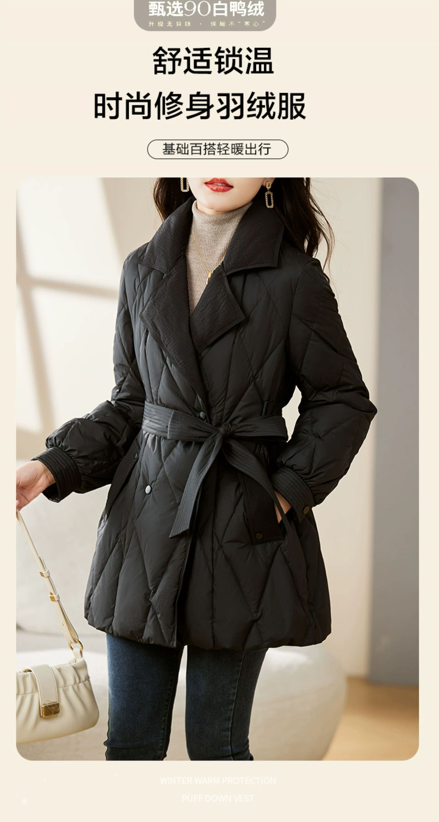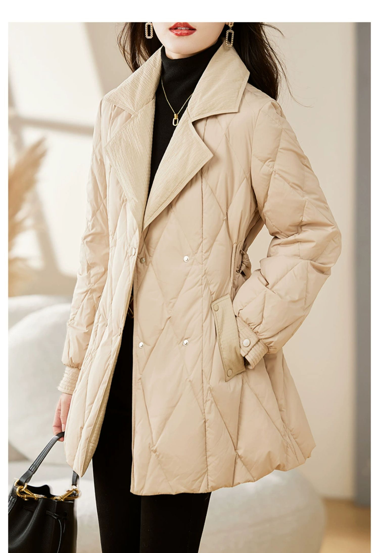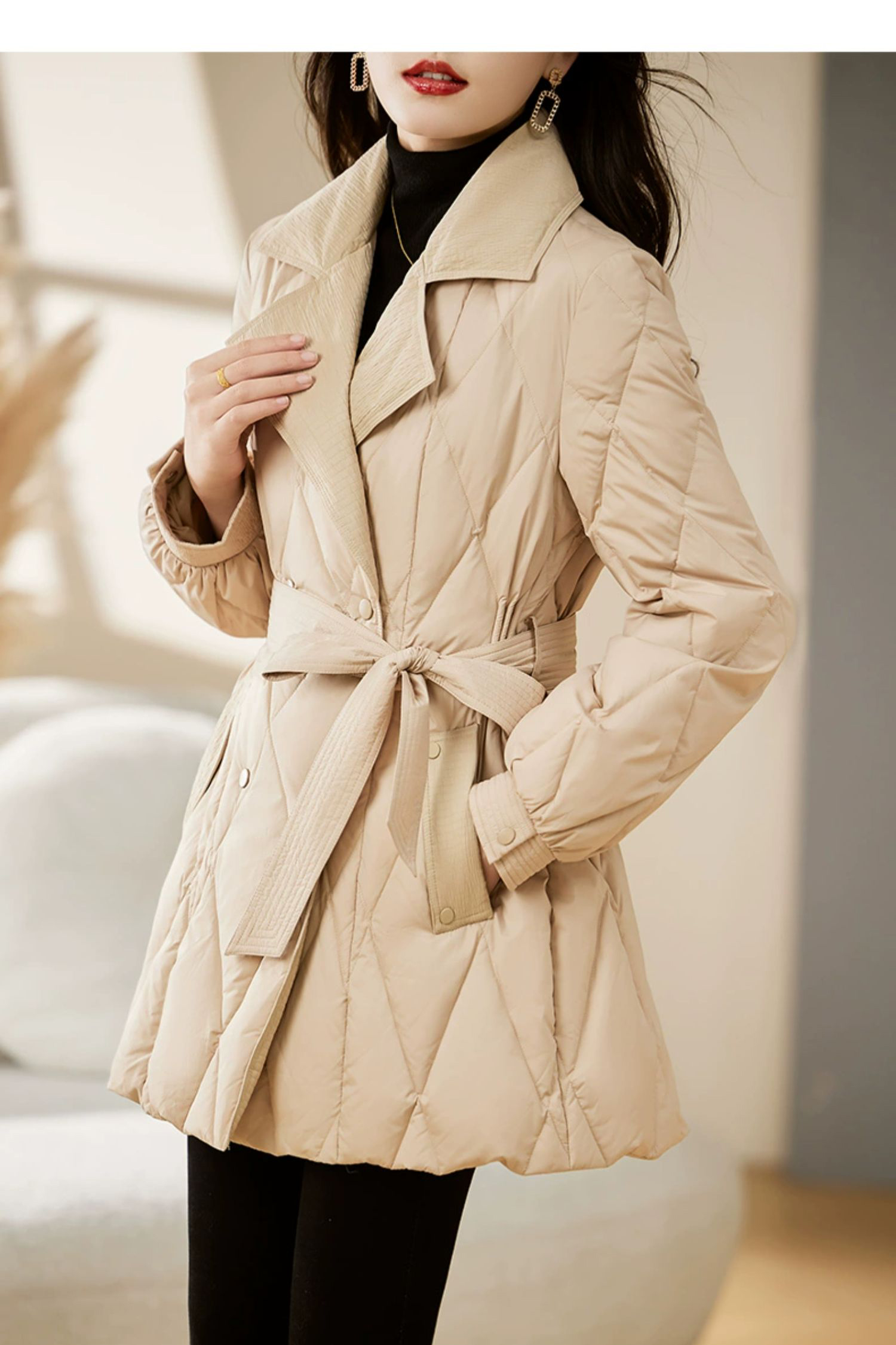 裁缝学苑AX159 中长款收腰系带西装领羽绒服纸样女装显瘦打版裁剪样板