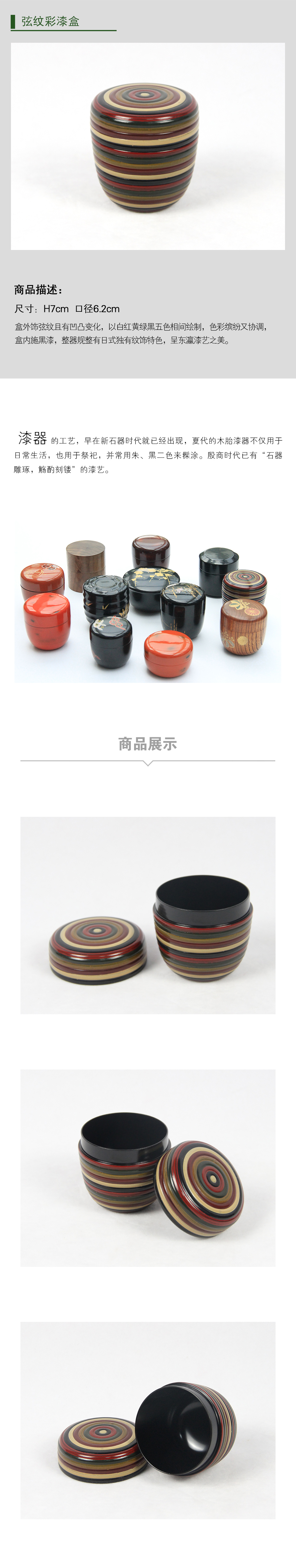 日本弦纹六色彩漆盒
