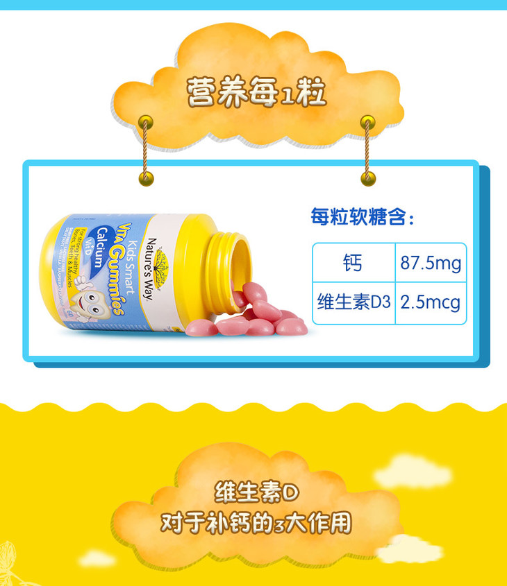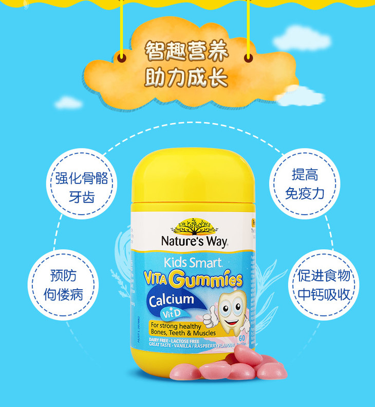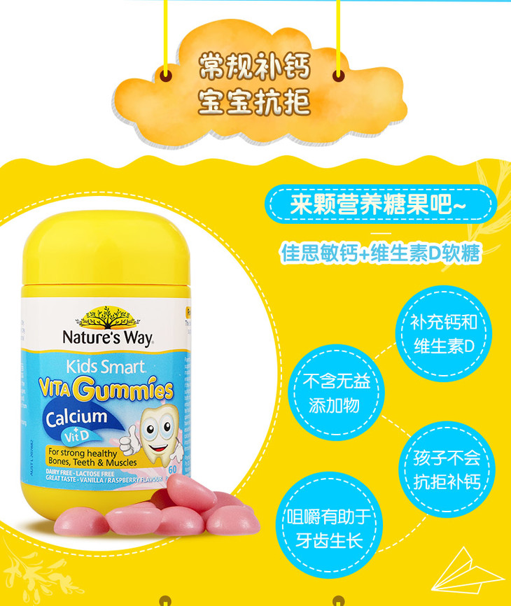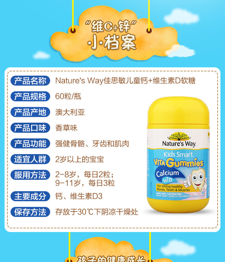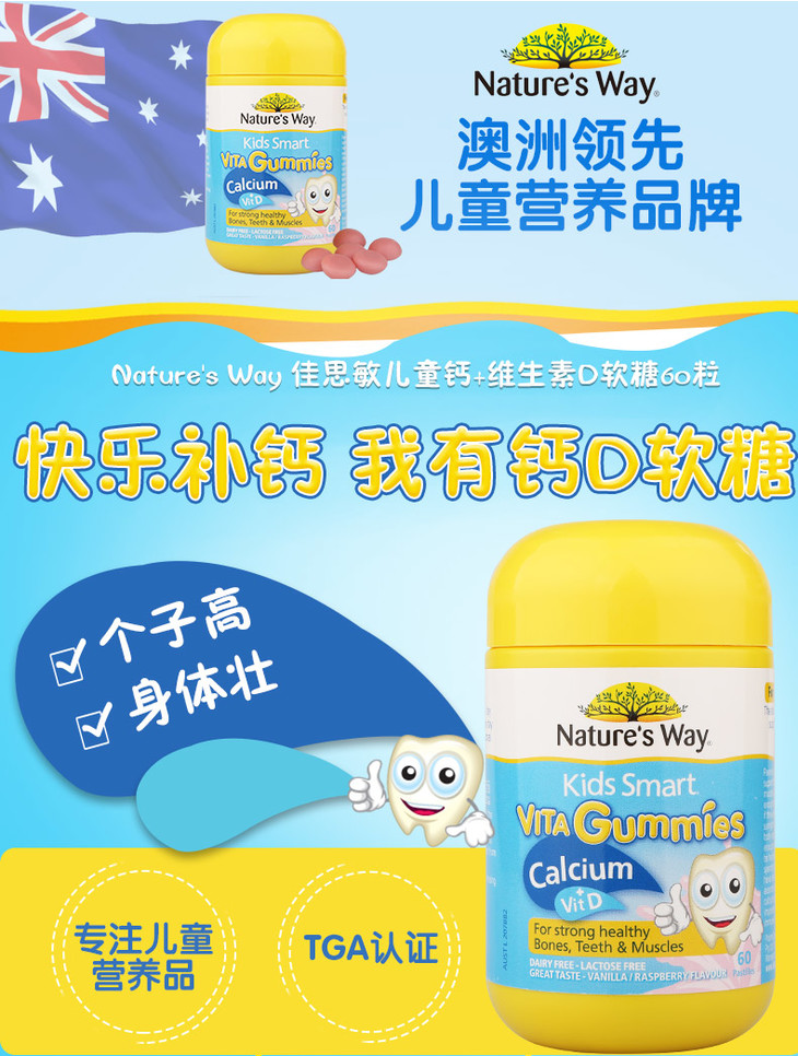 【保税区包邮直发】澳洲 佳思敏 儿童维生素D+钙 60粒 促进钙吸收