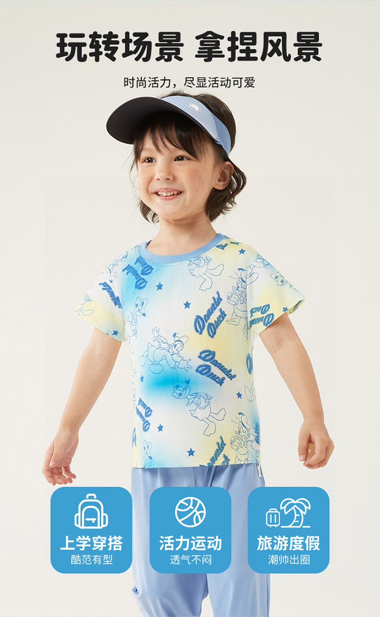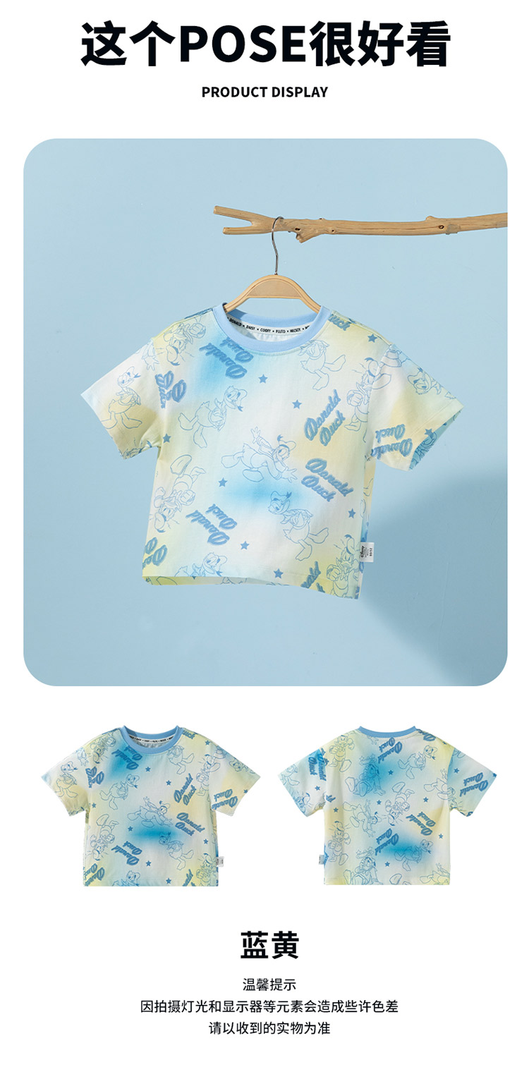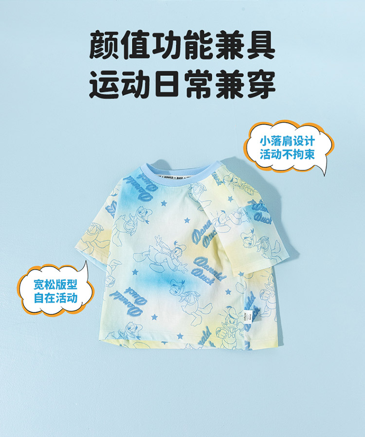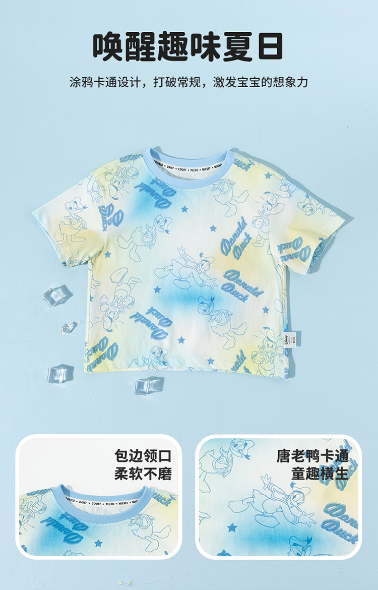 【唐老鸭满印扎染凉感T恤】迪士尼25夏季新款男童装冰感短袖T恤休闲*