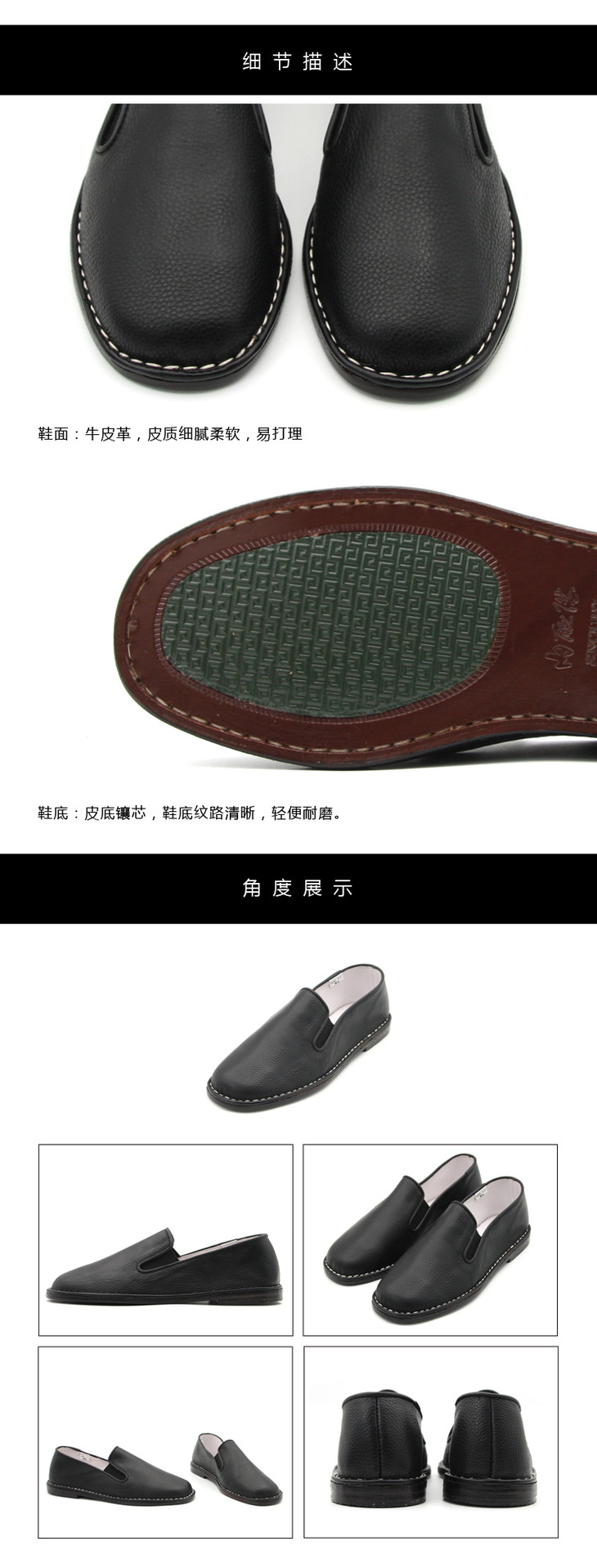 内联升男鞋手工单鞋镶芯皮底春秋单鞋防滑小元口皮便鞋7112A
