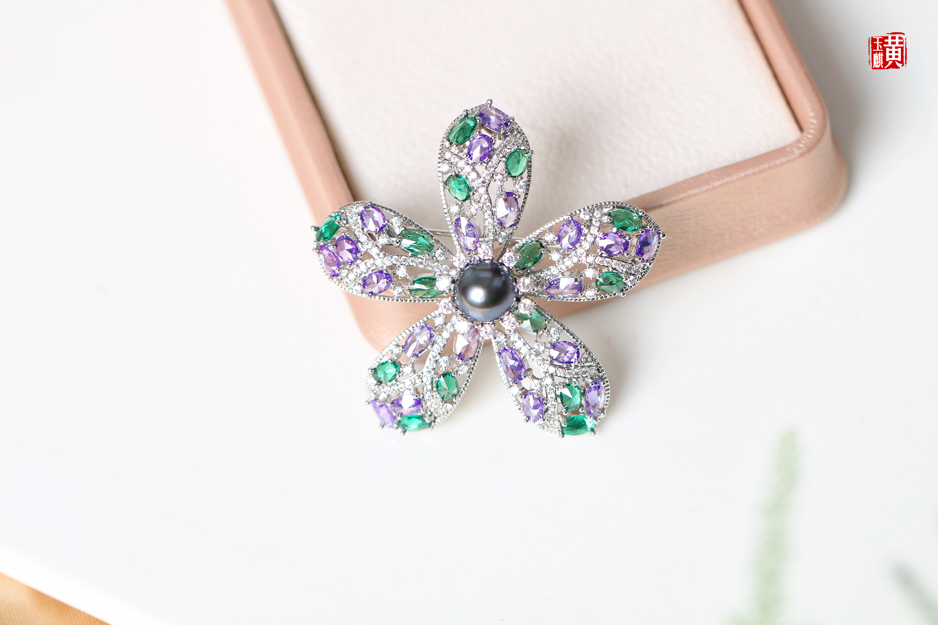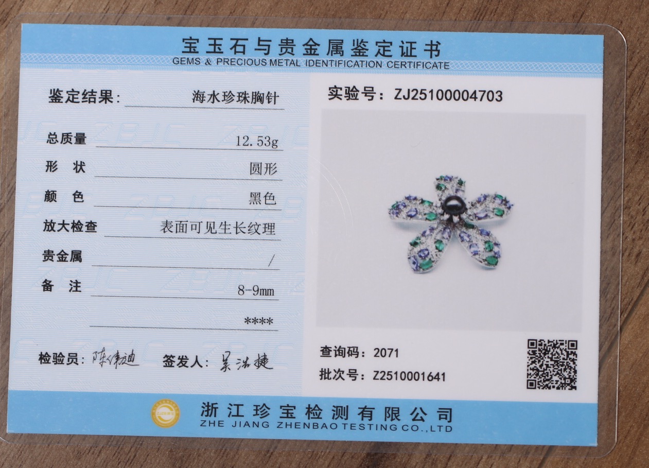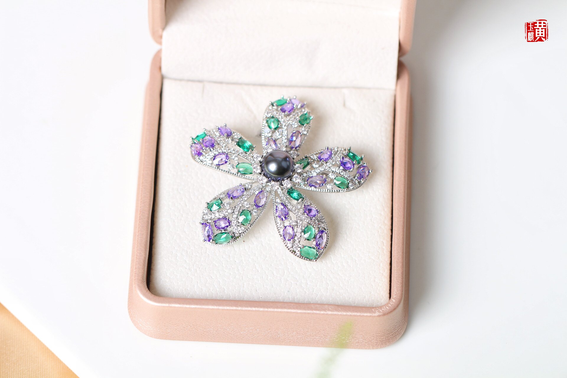 【紫荆花】大溪地海水珍珠胸针