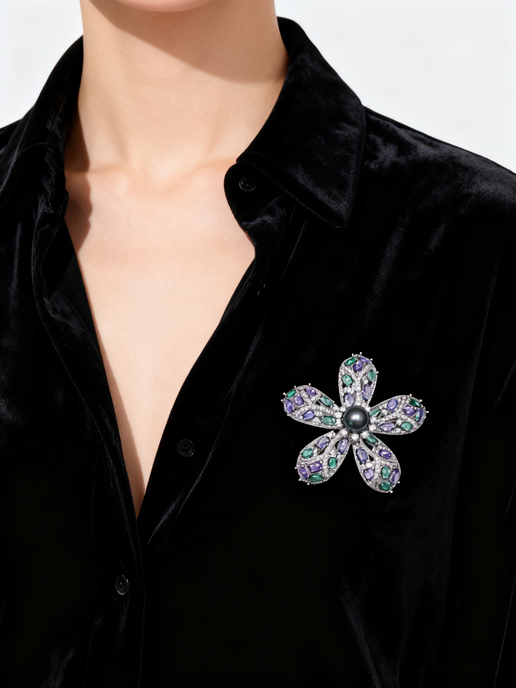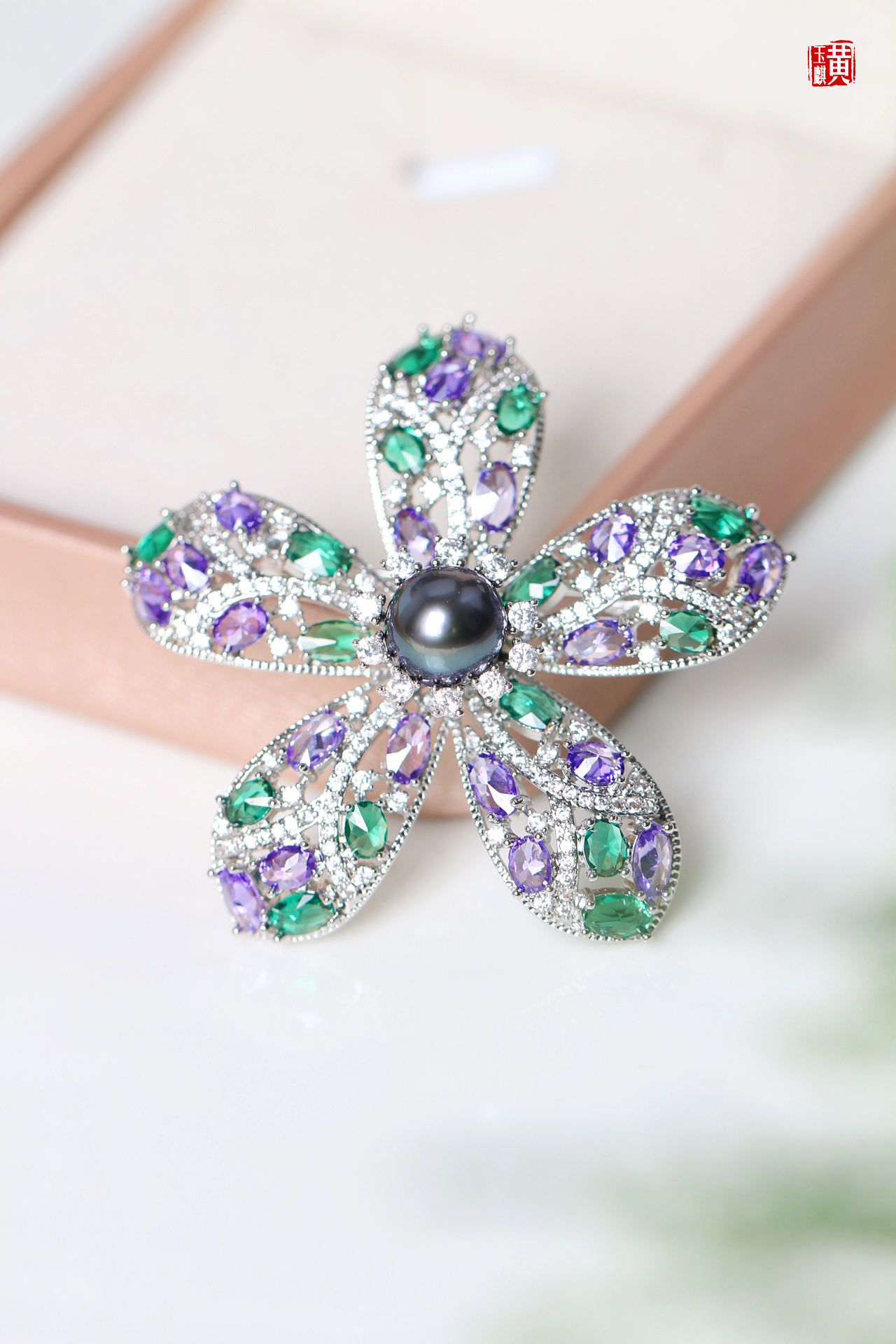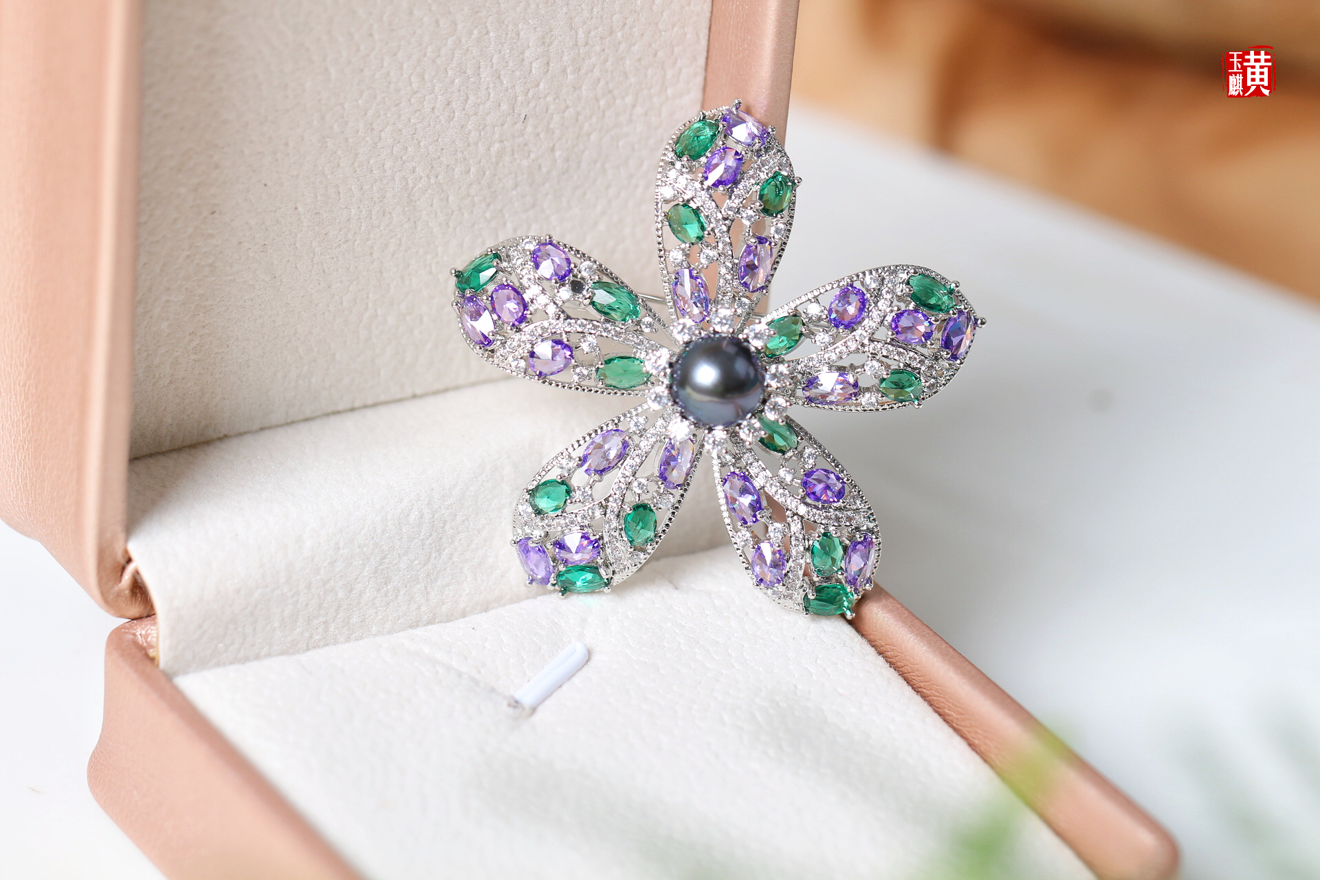 【紫荆花】大溪地海水珍珠胸针
