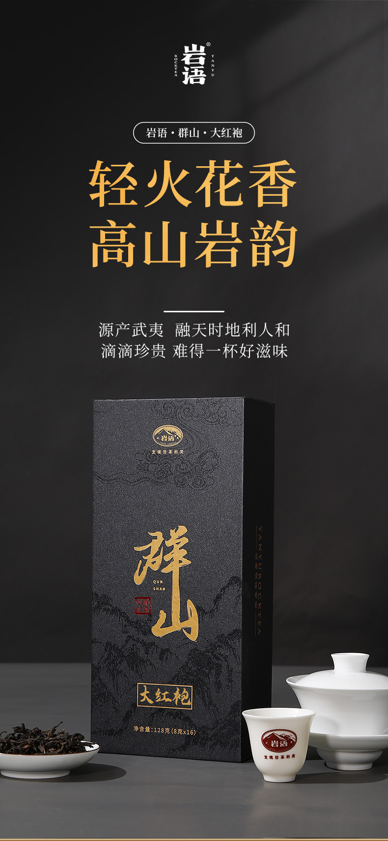 岩语 群山大红袍 武夷岩茶特级乌龙茶轻火花香茶叶盒装128g