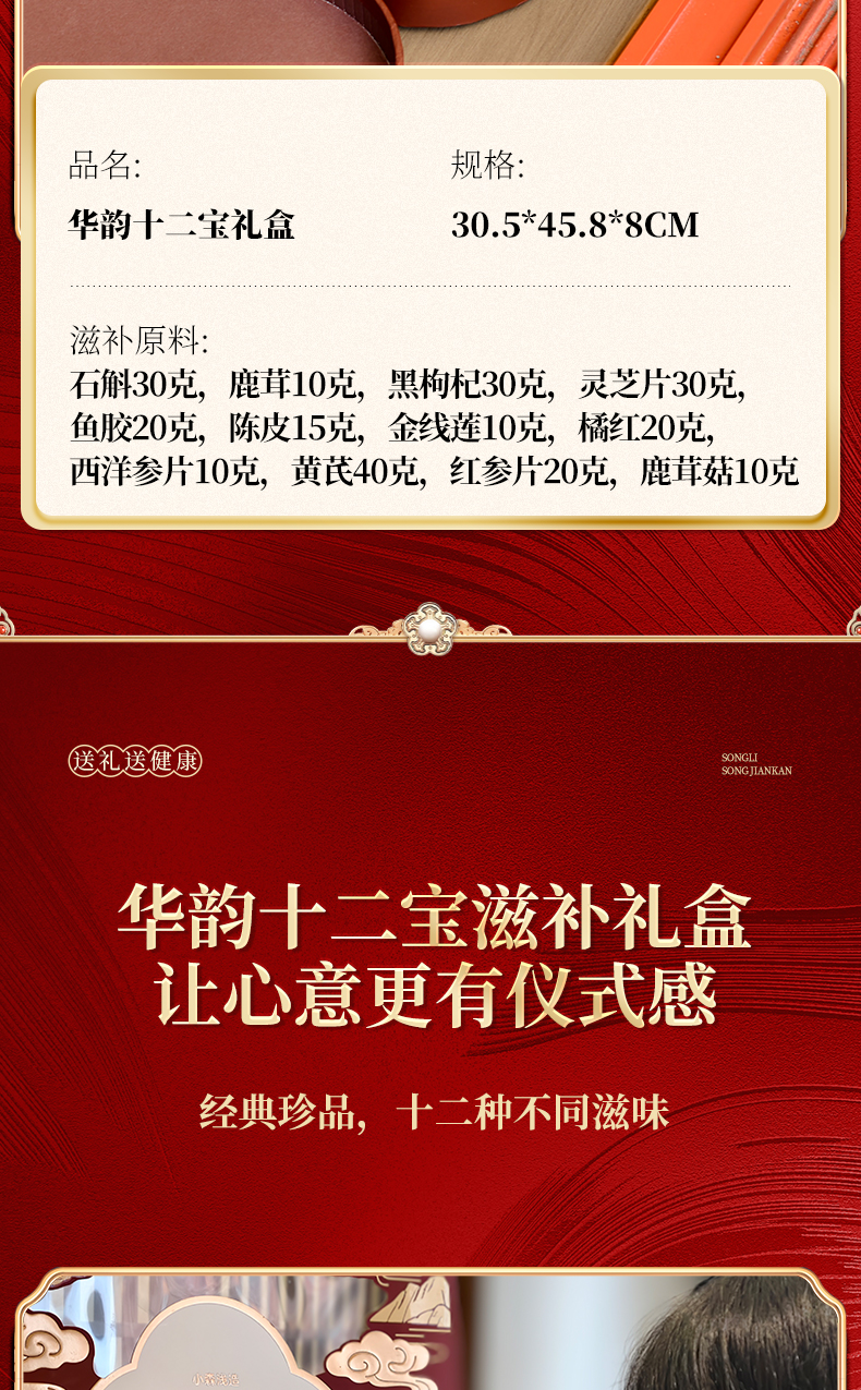 华韵十二宝 十二珍品送礼倍有面 高端双层滋补礼盒(245g)