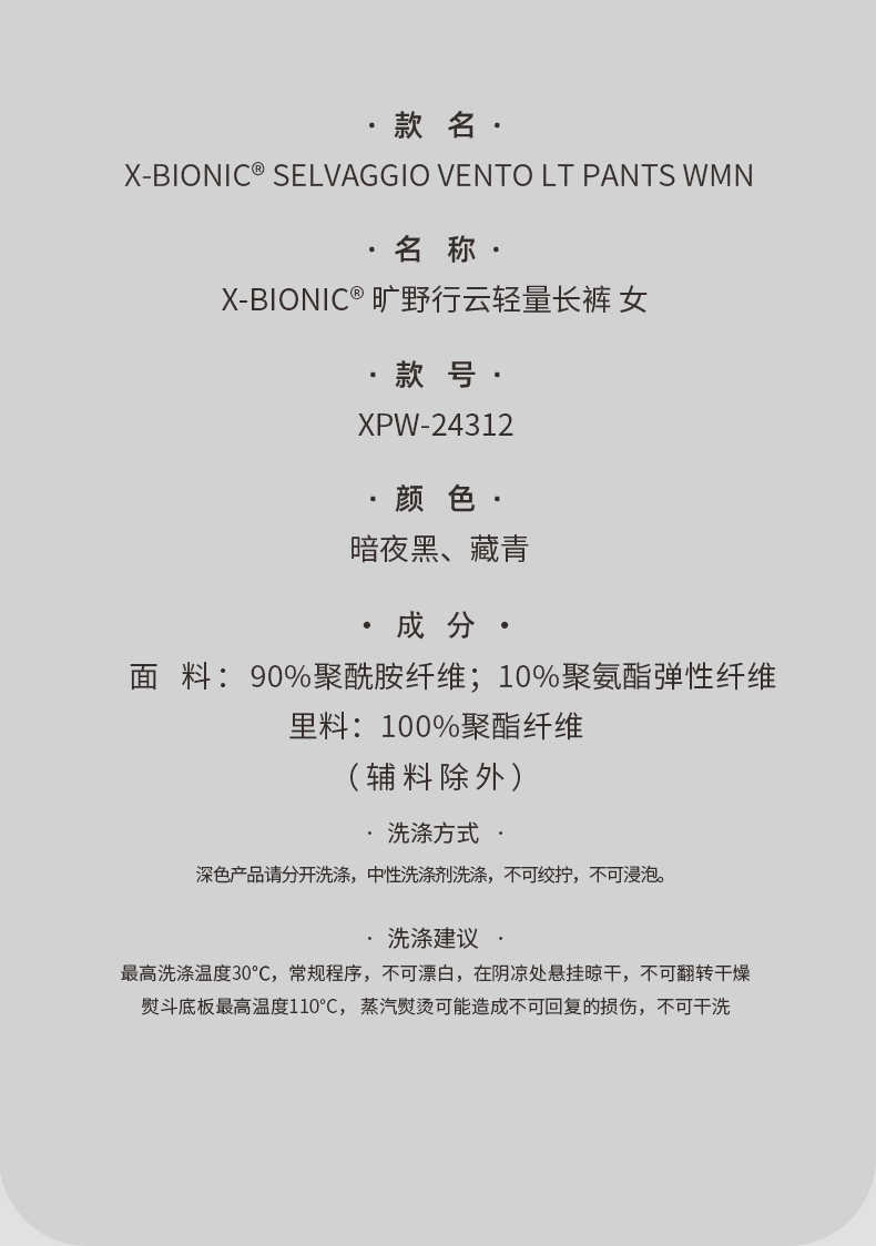 XBIONIC旷野行云轻量长裤女防泼水透气快干运动休闲裤24312