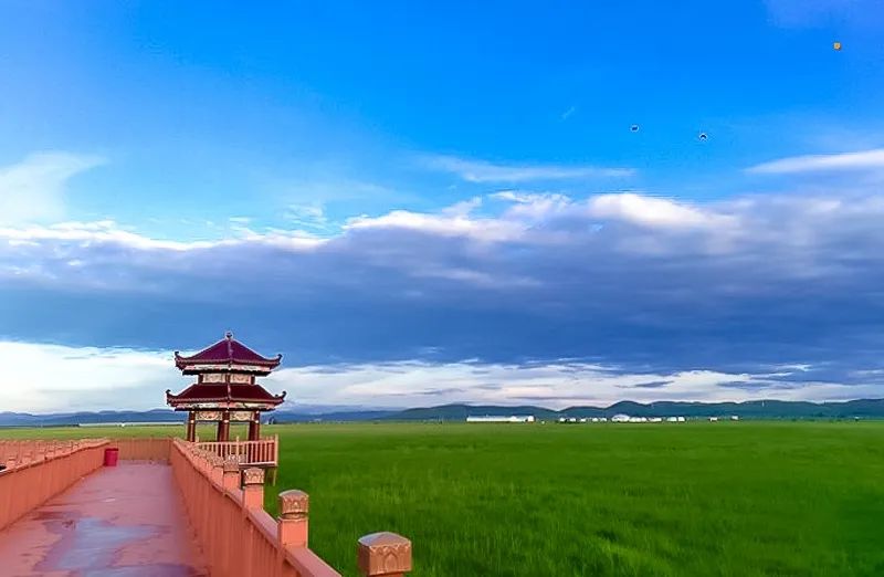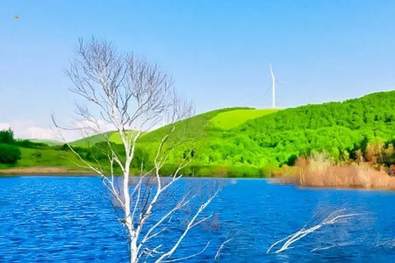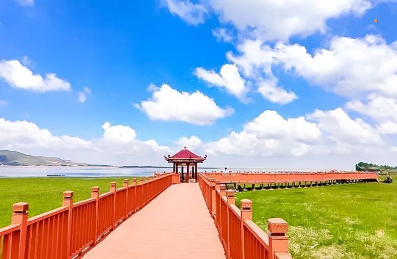 是滦河上游最大的湖,因入湖前的河流为闪电河而得名。在高处俯视,湖的形状也极像一道闪电。湖边万顷草滩,风景如画,置身于草青云淡、繁花遍野的茫茫碧野中,似有天穹压落、云欲擦肩之感。