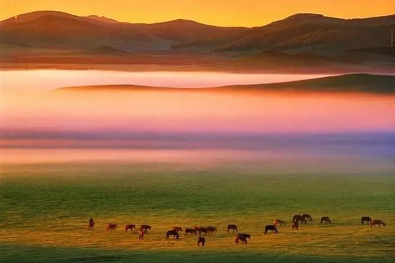 - 清晨|自愿早起观草原日出。