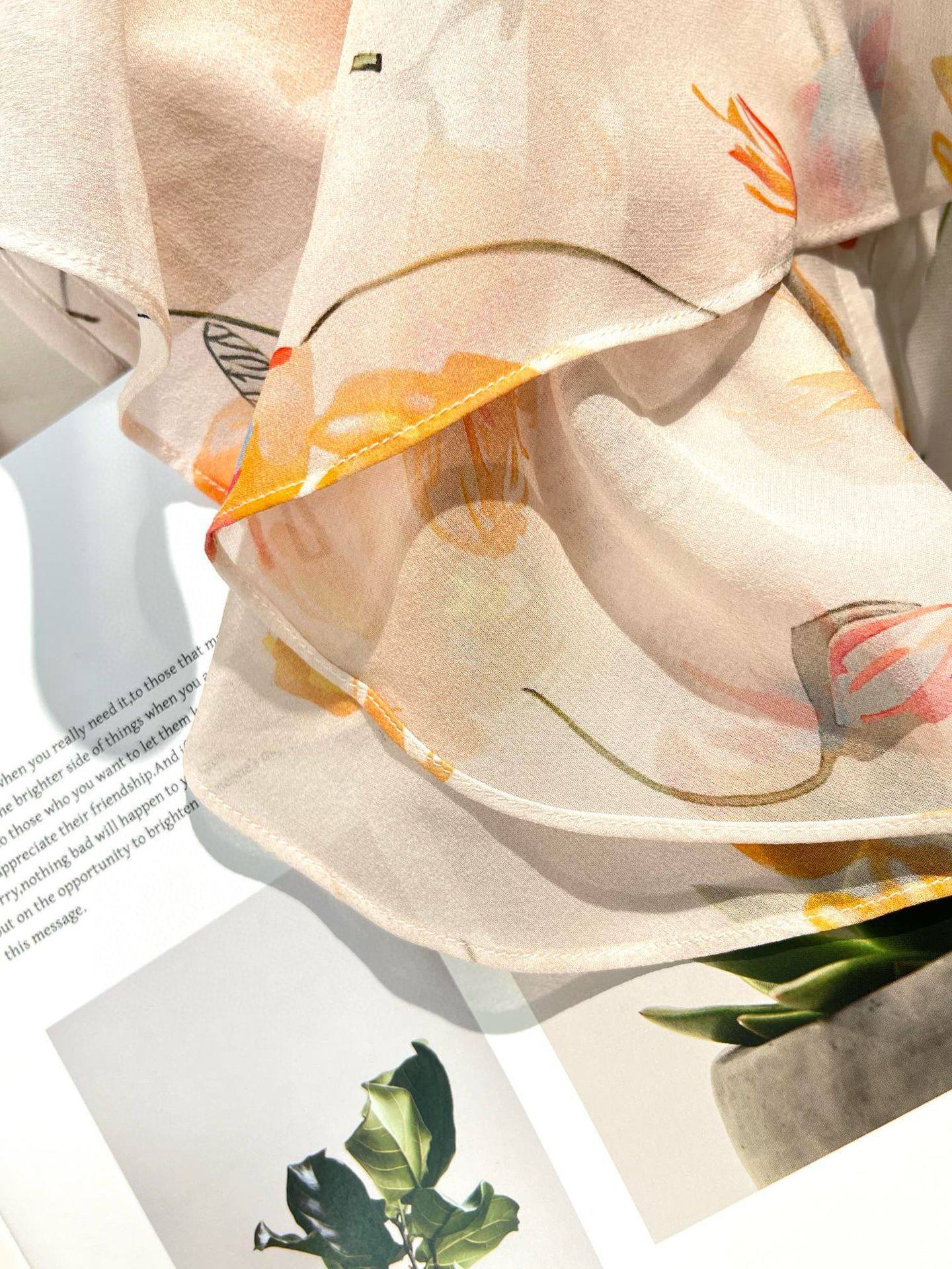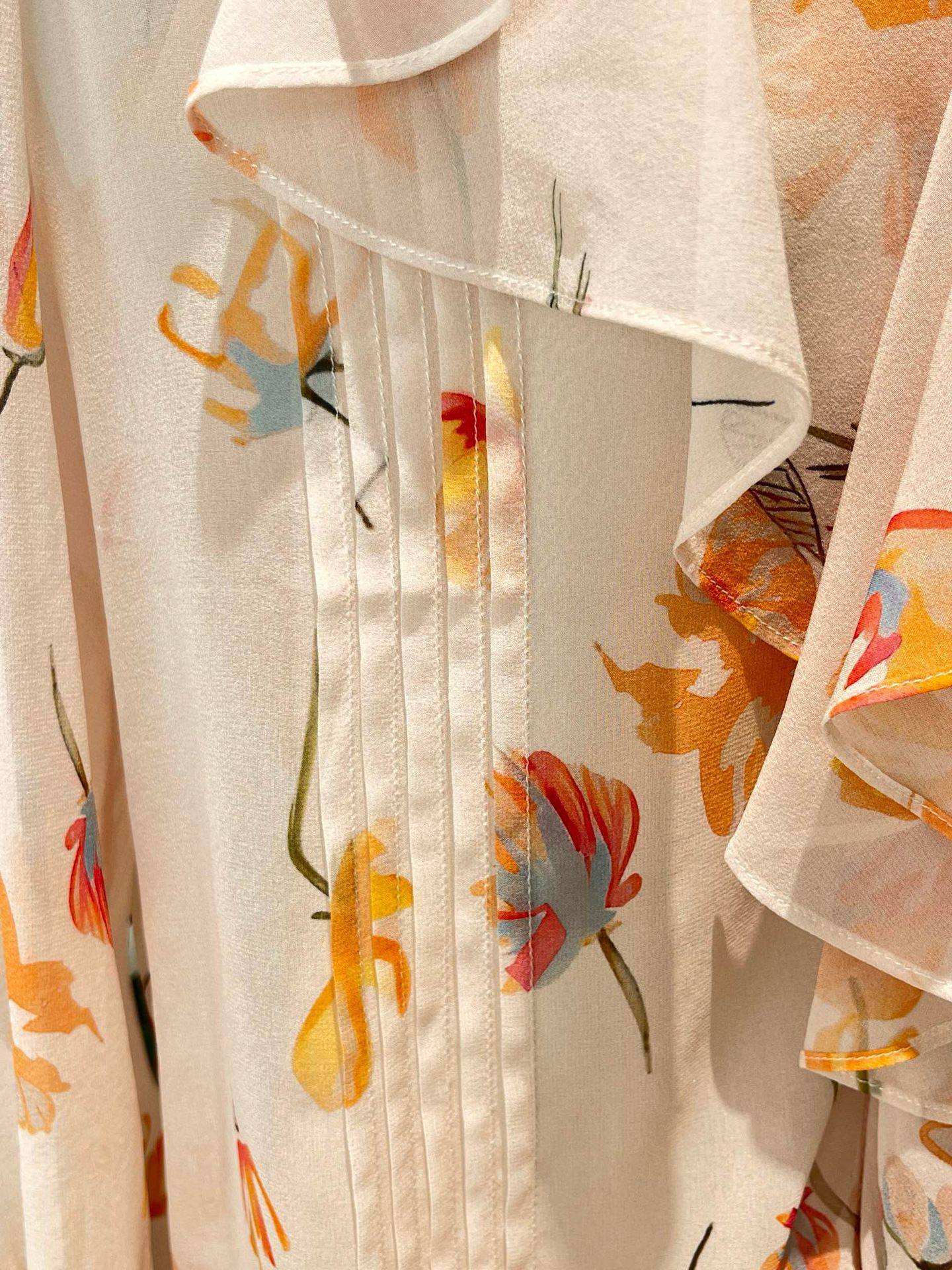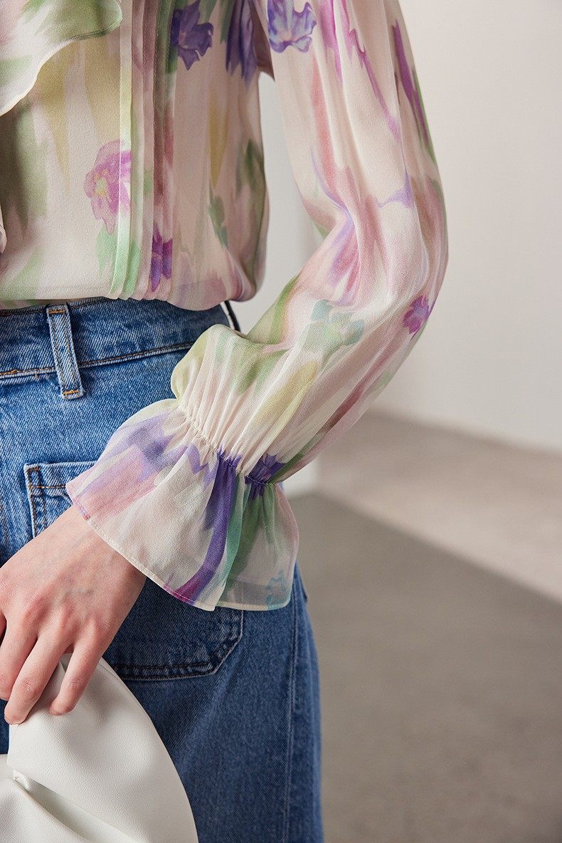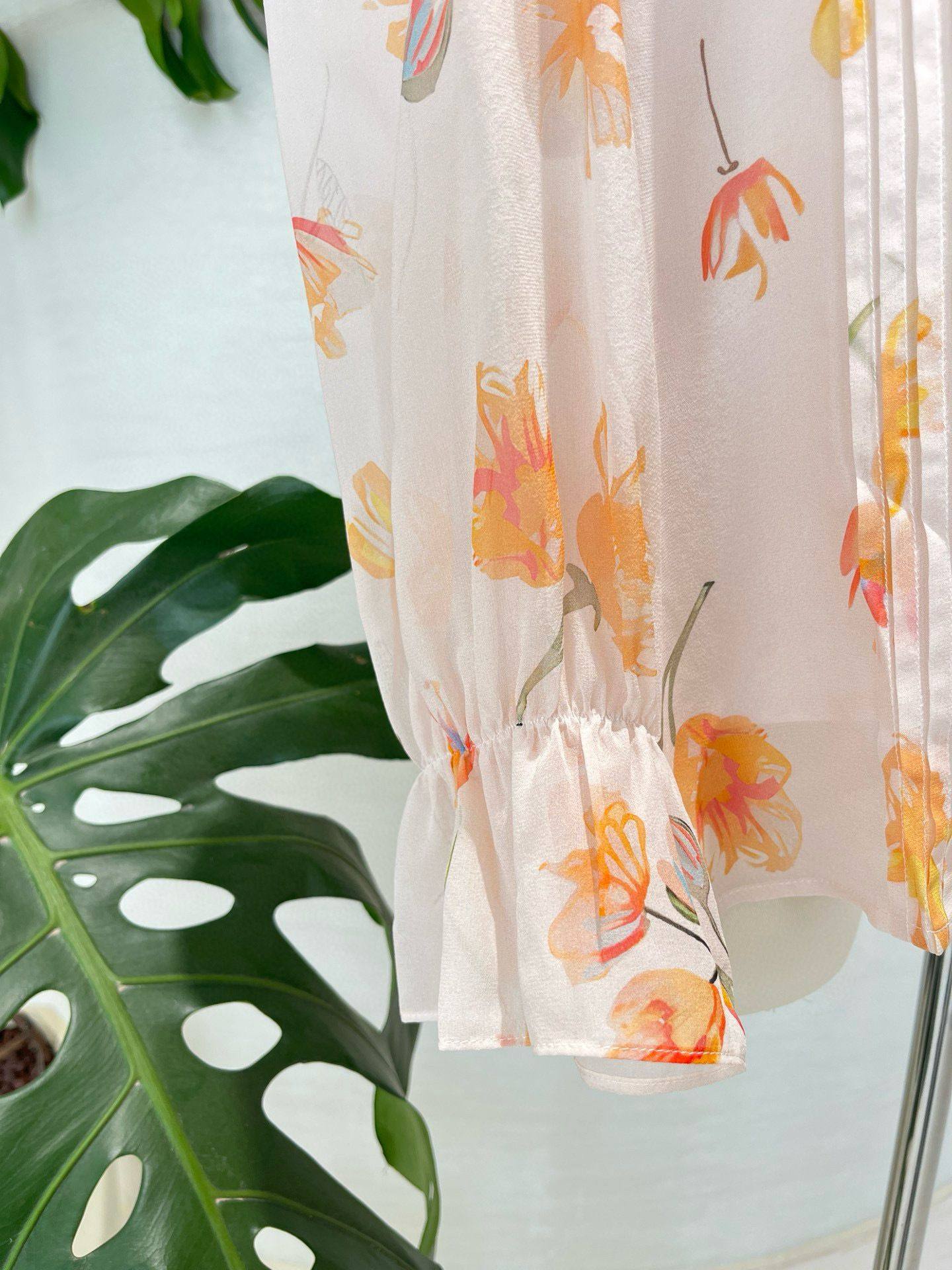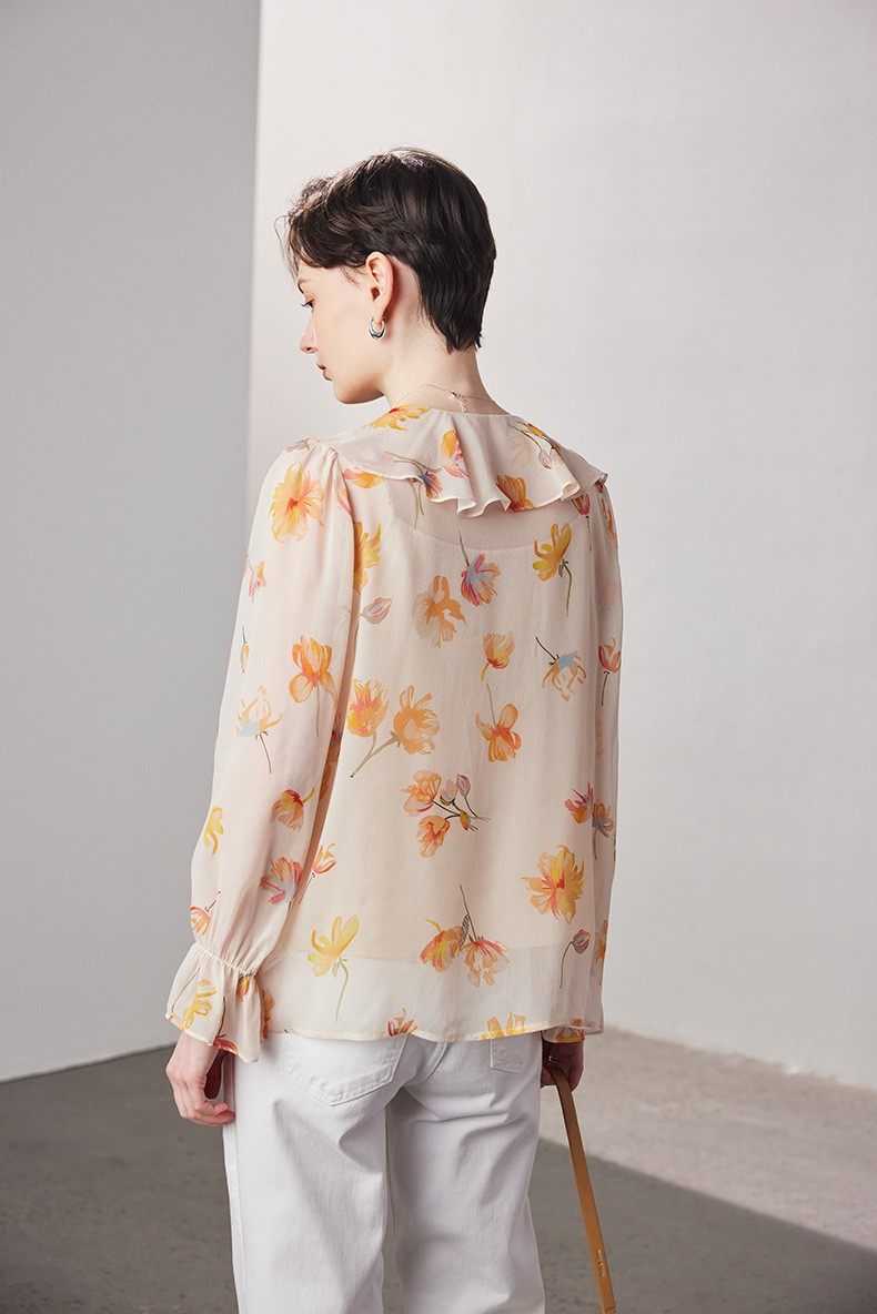 真丝衬衫女2025春夏新款乔其印花两件套荷叶边领100%桑蚕丝上衣